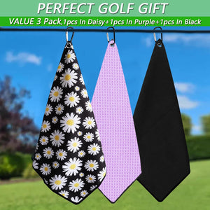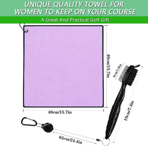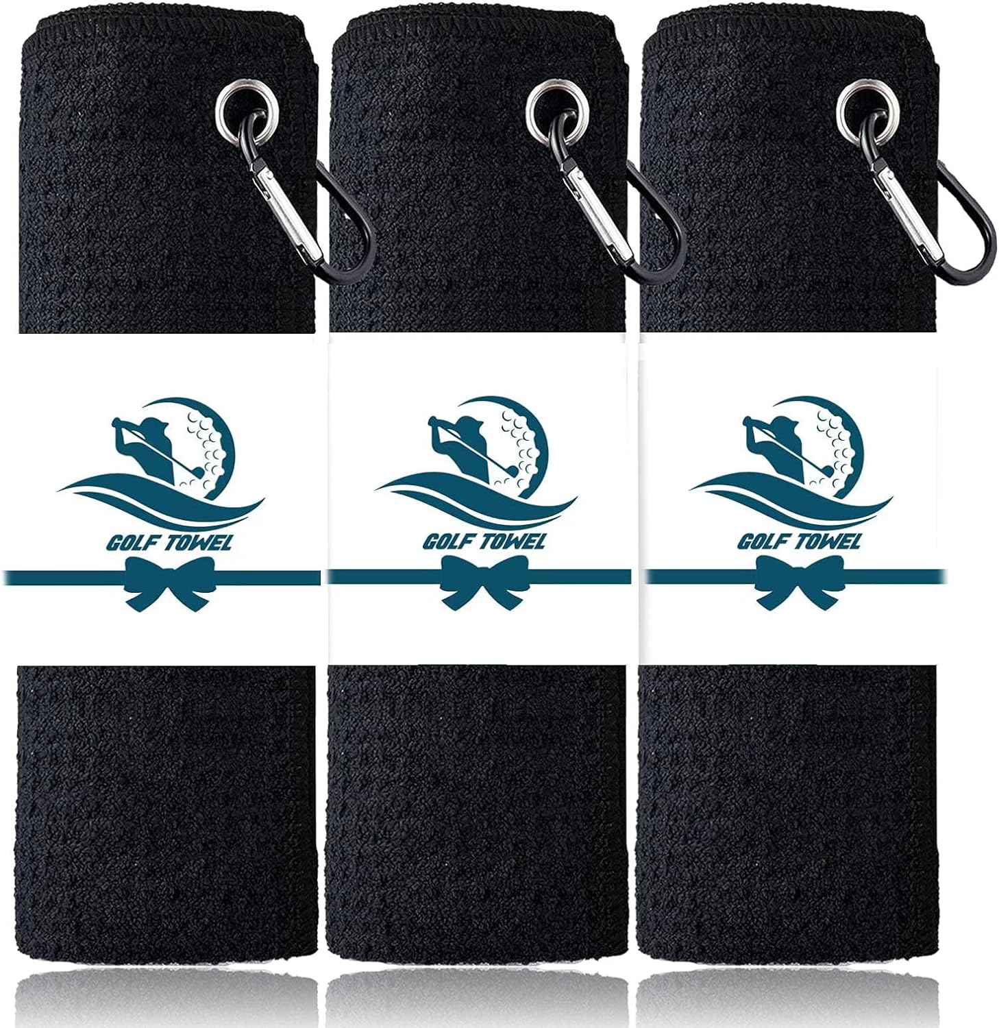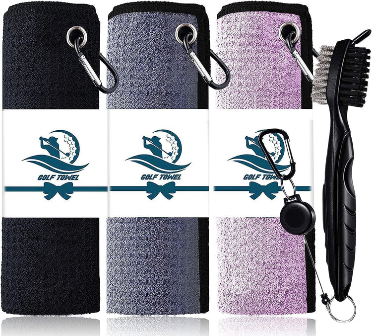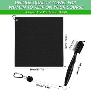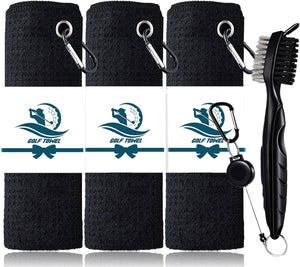 FINGER TEN Golf Towel Microfiber Waffle Towels for Golf Bags for Men Women with Clip and Brush 15.7’’X15.7’’ Set in Black (Black-3 Pcs+Brush, 15.7''X15.7'')