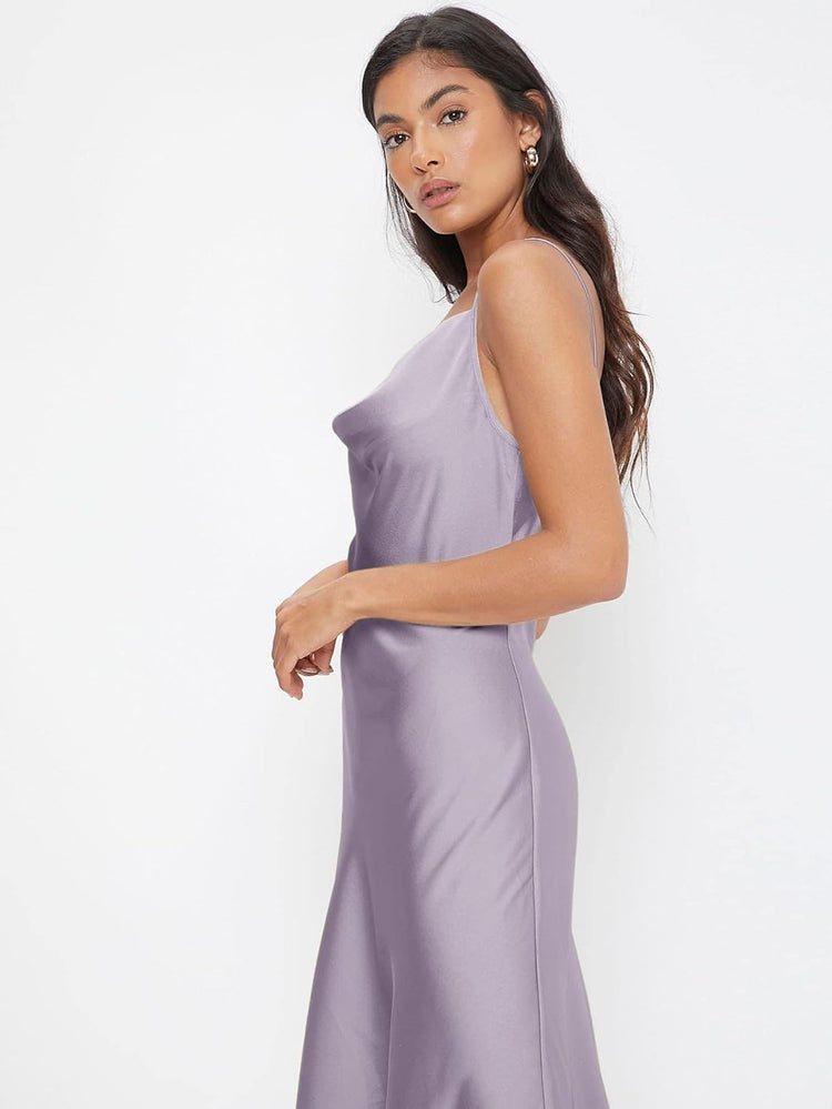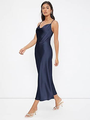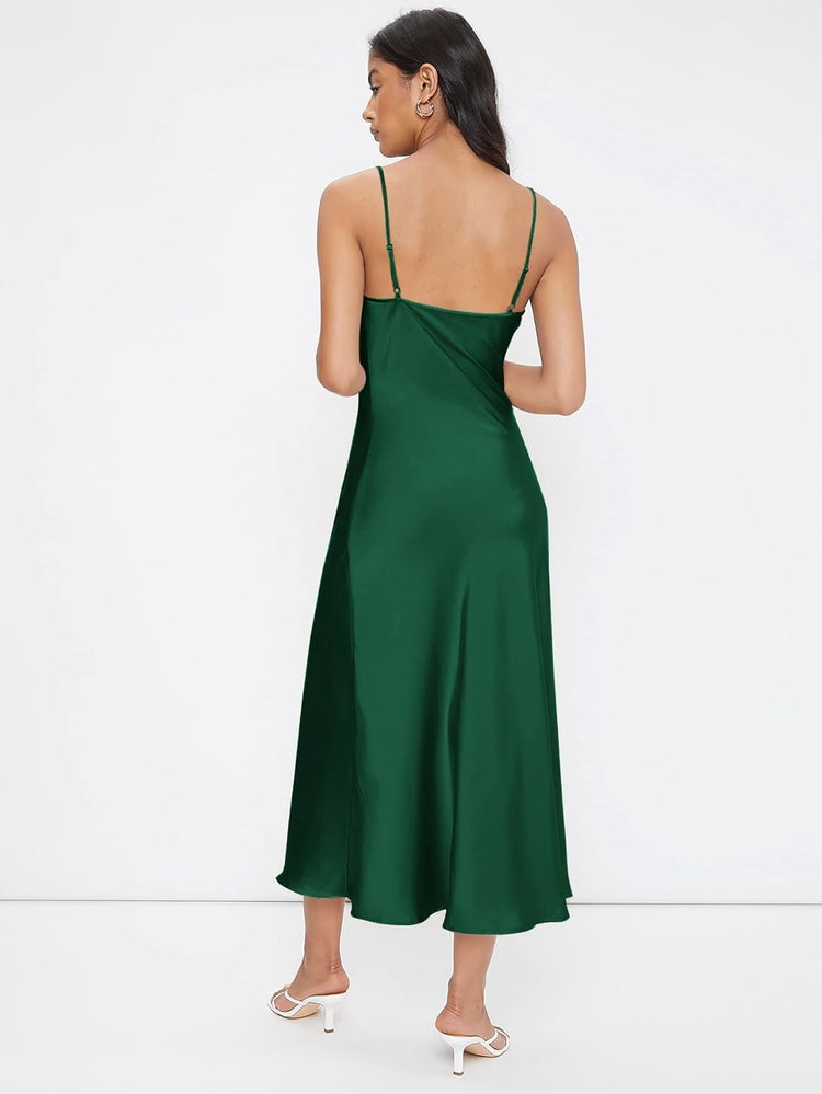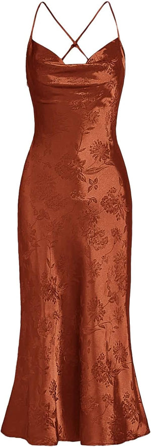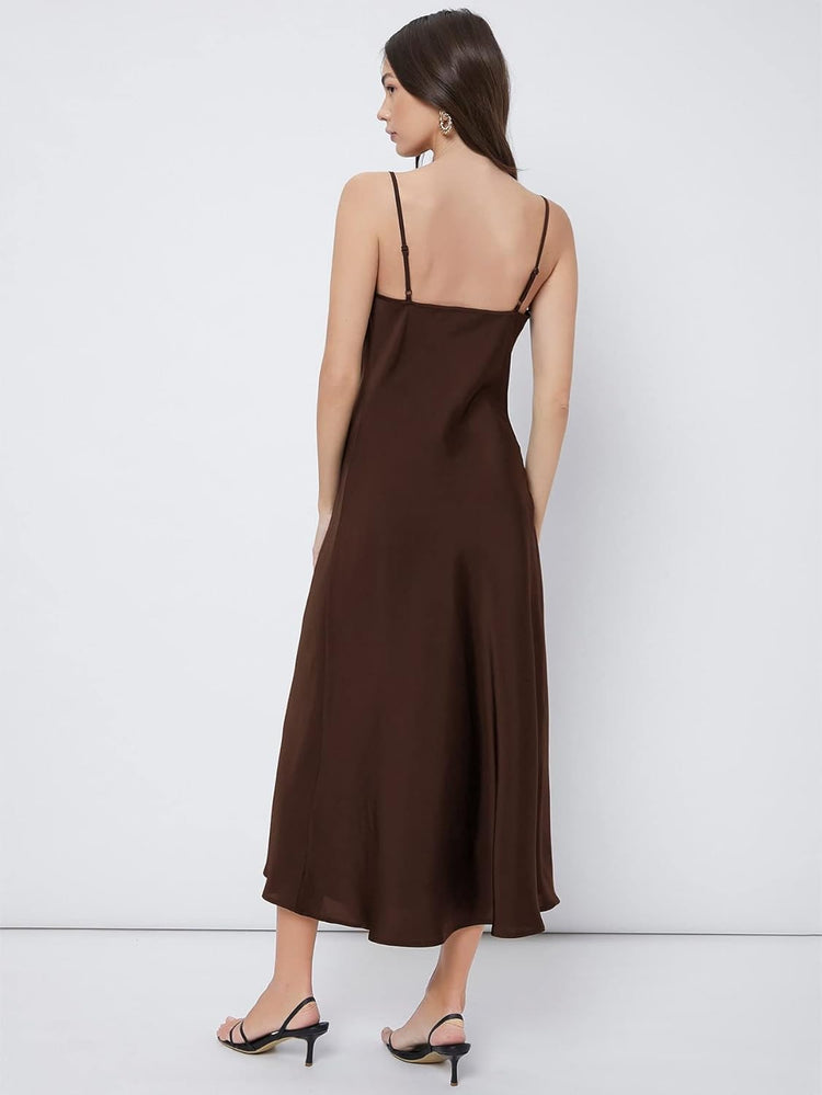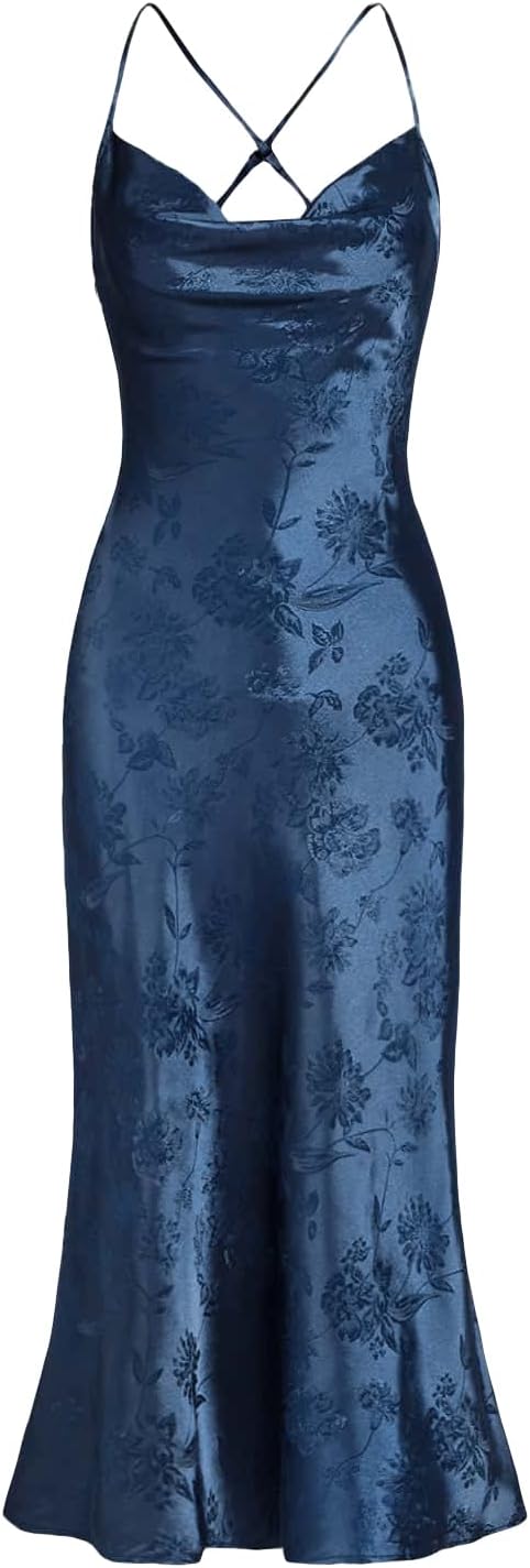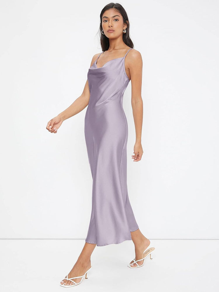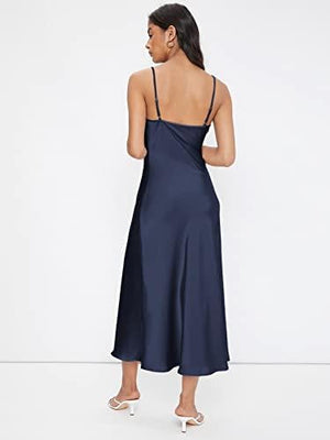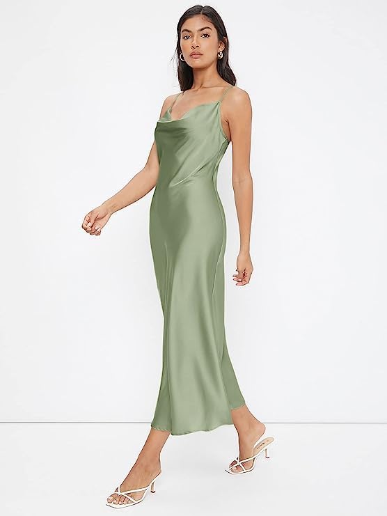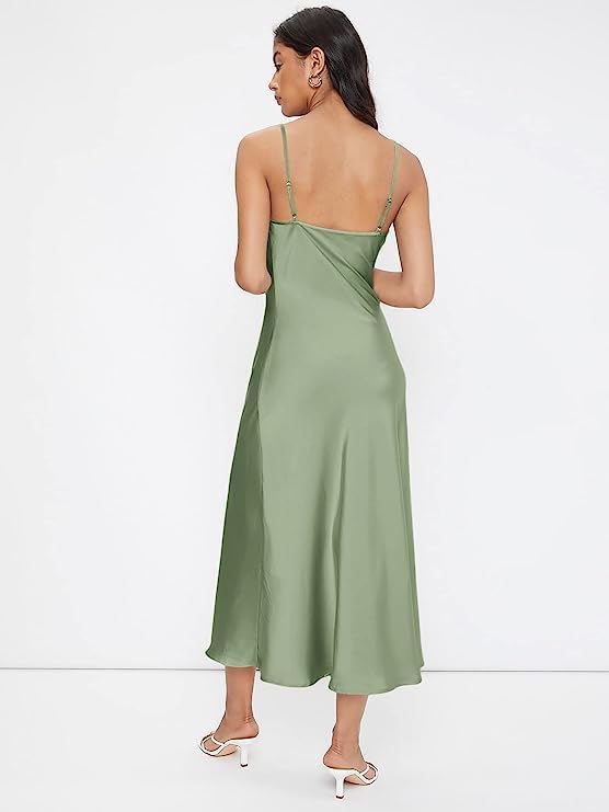 Floerns Women's Spaghetti Strap Cowl Neck Long Slip Satin Silk Midi Dress