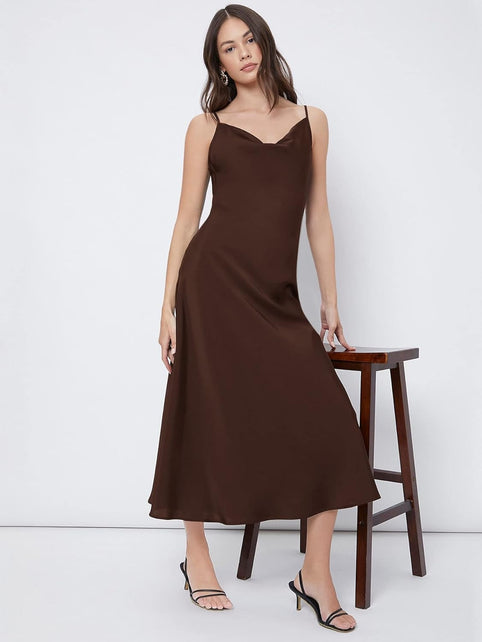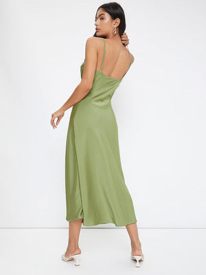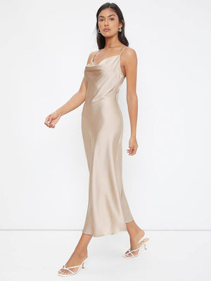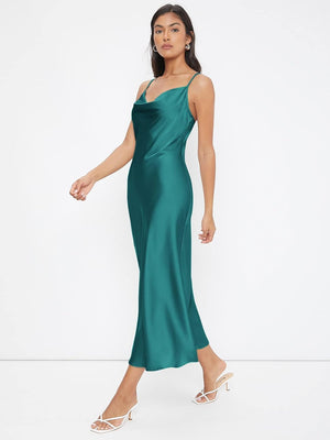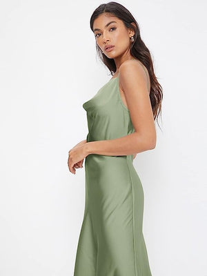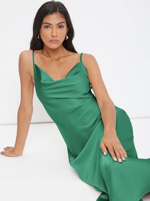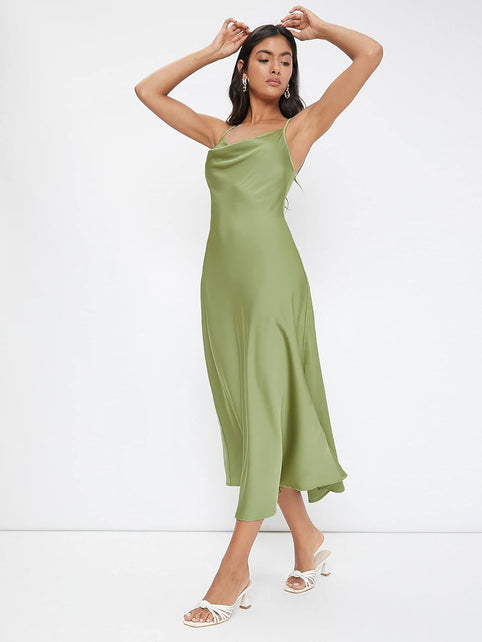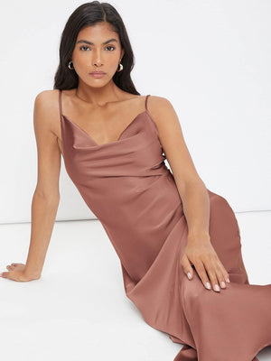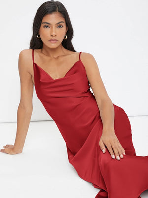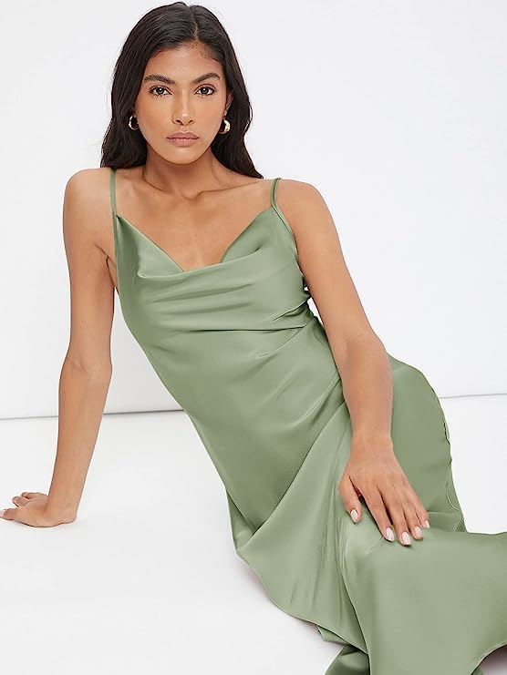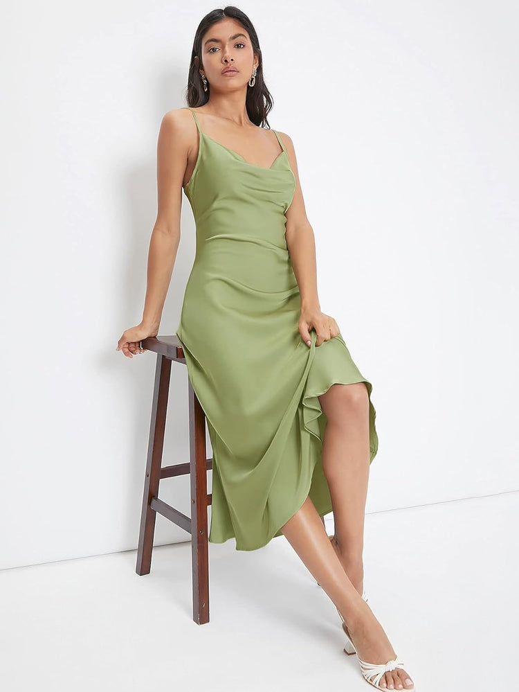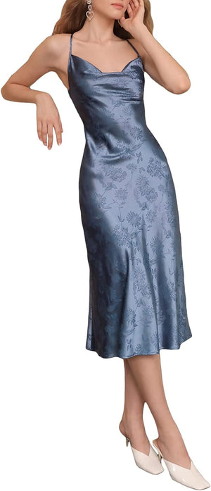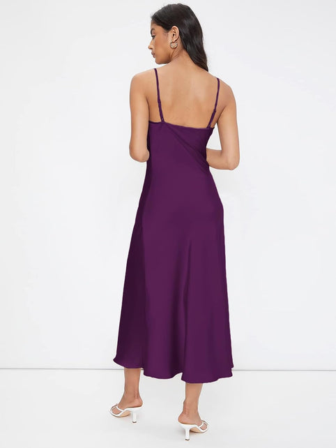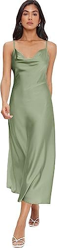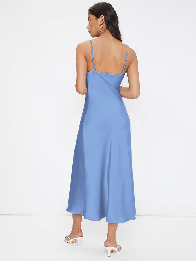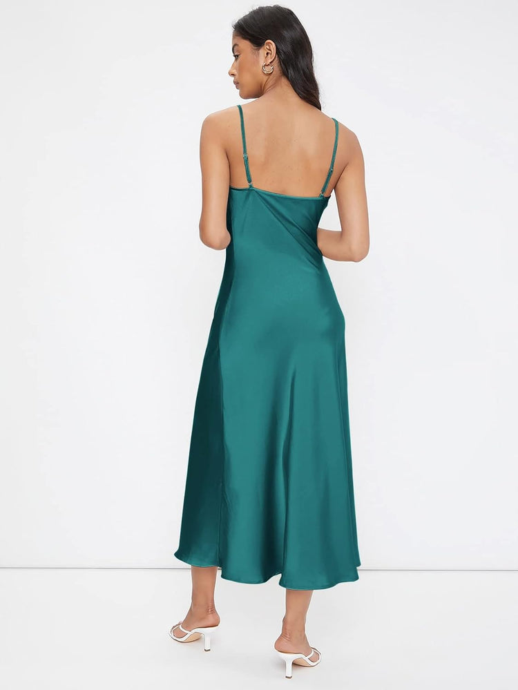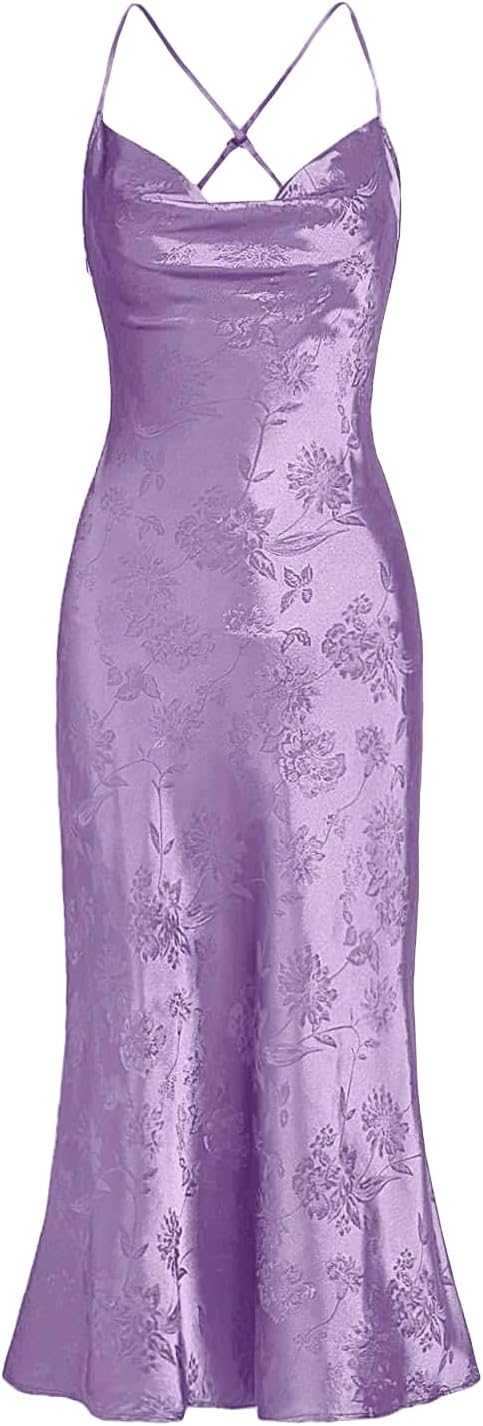 Floerns Women's Spaghetti Strap Cowl Neck Long Slip Satin Silk Midi Dress