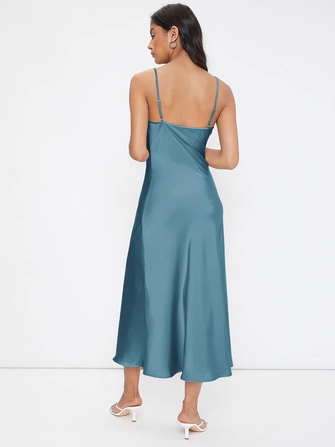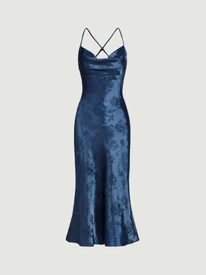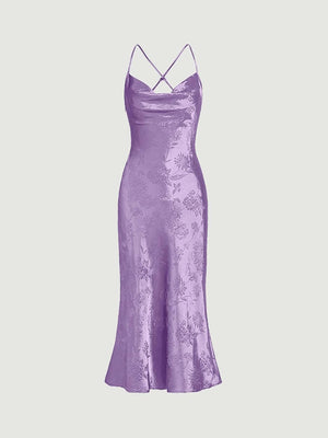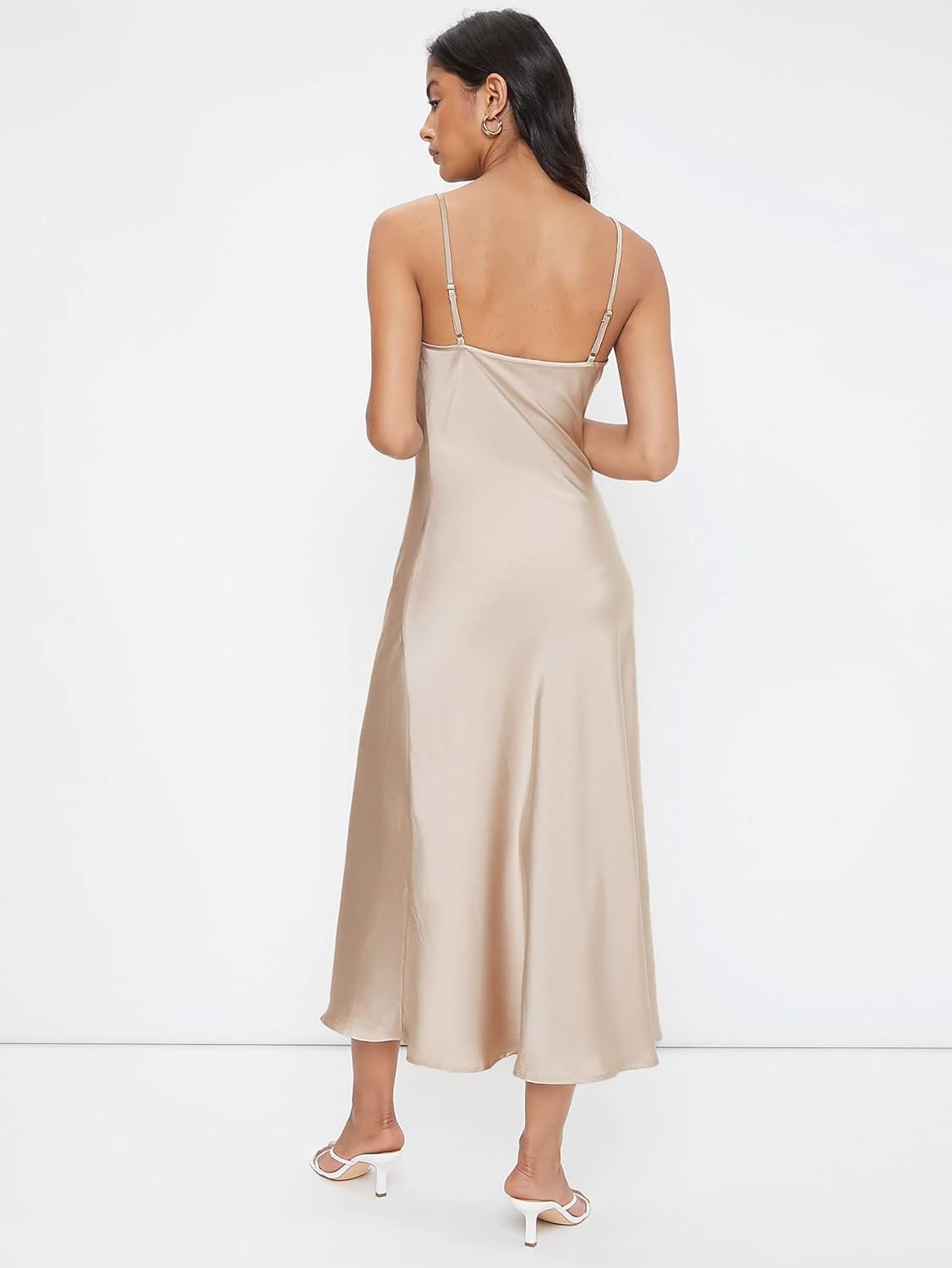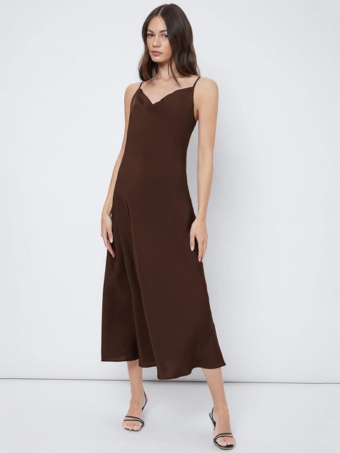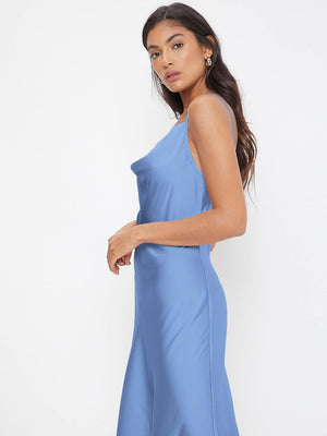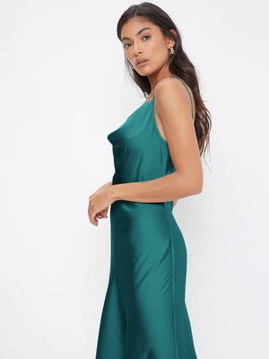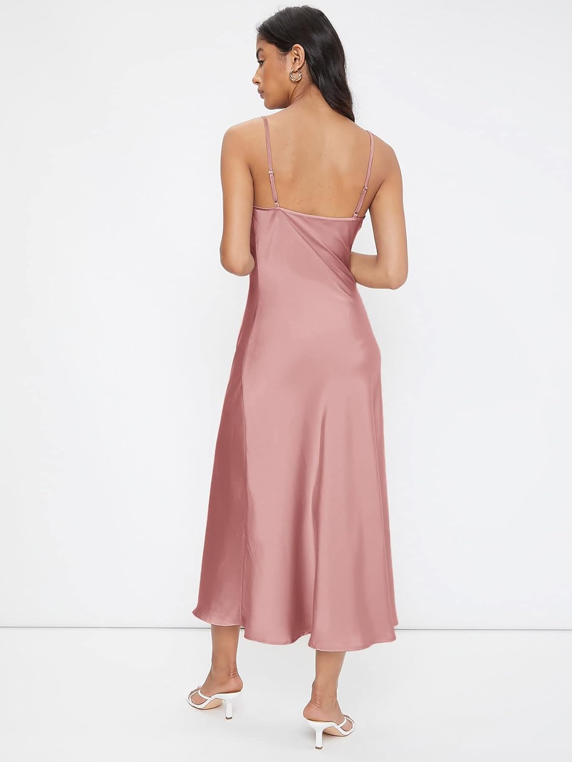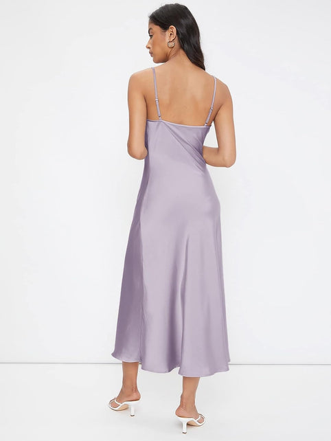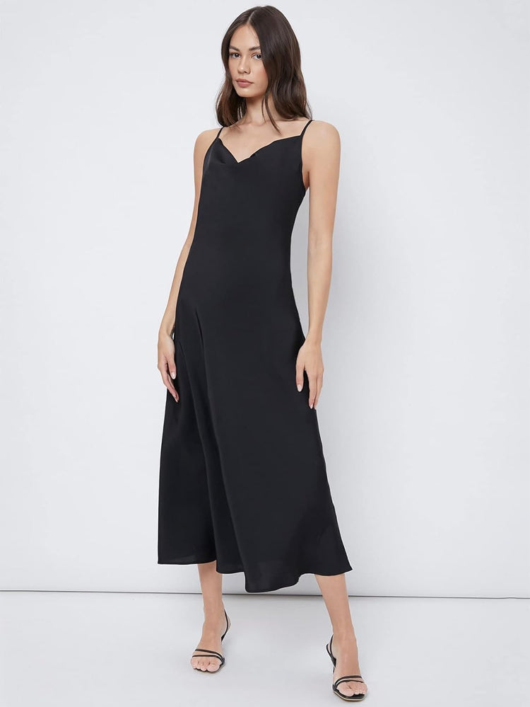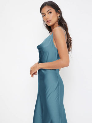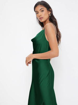 Floerns Women's Spaghetti Strap Cowl Neck Long Slip Satin Silk Midi Dress