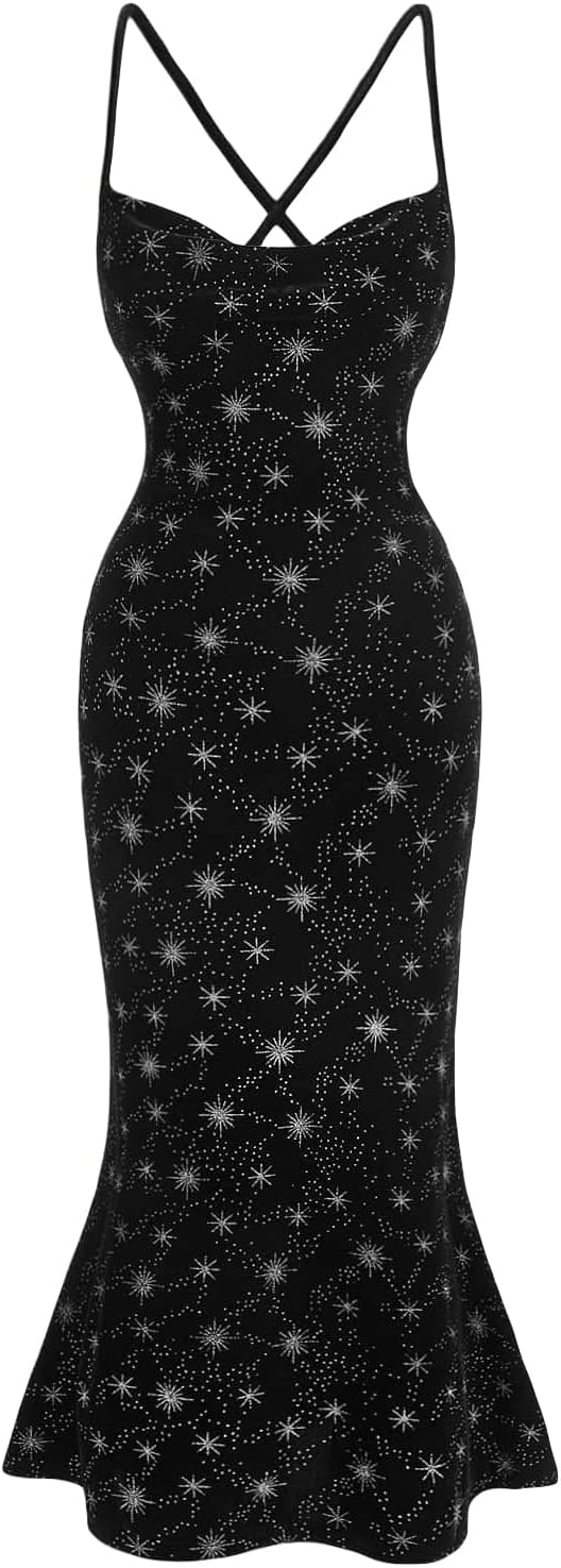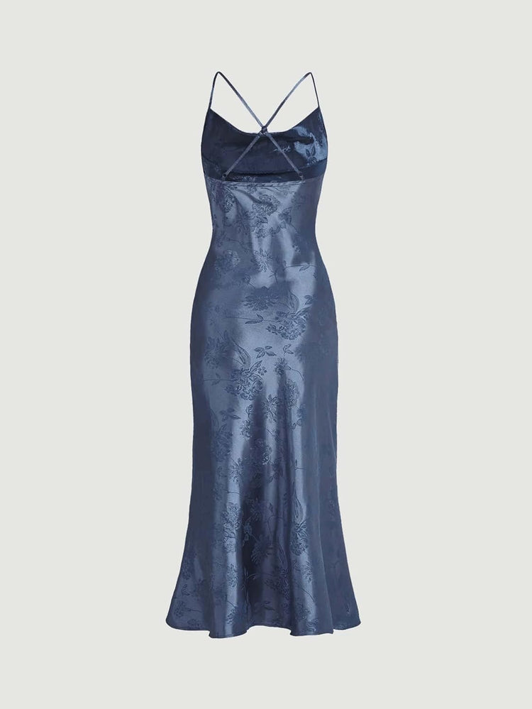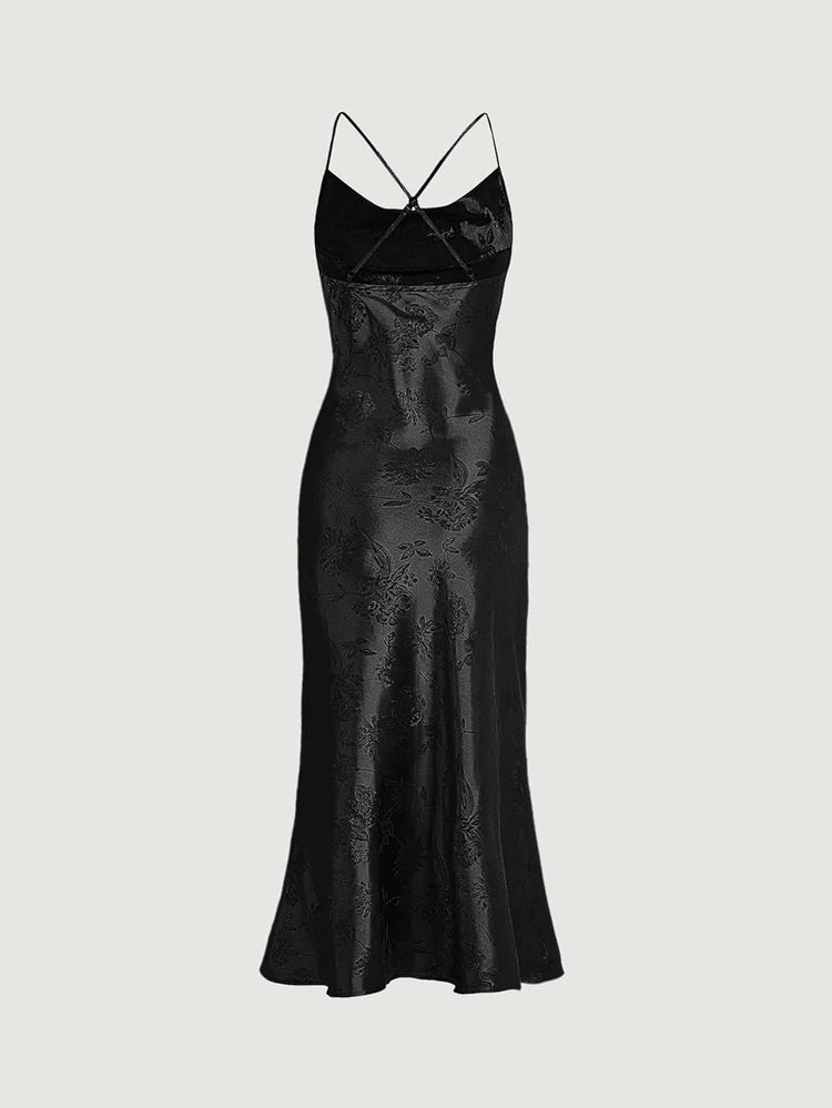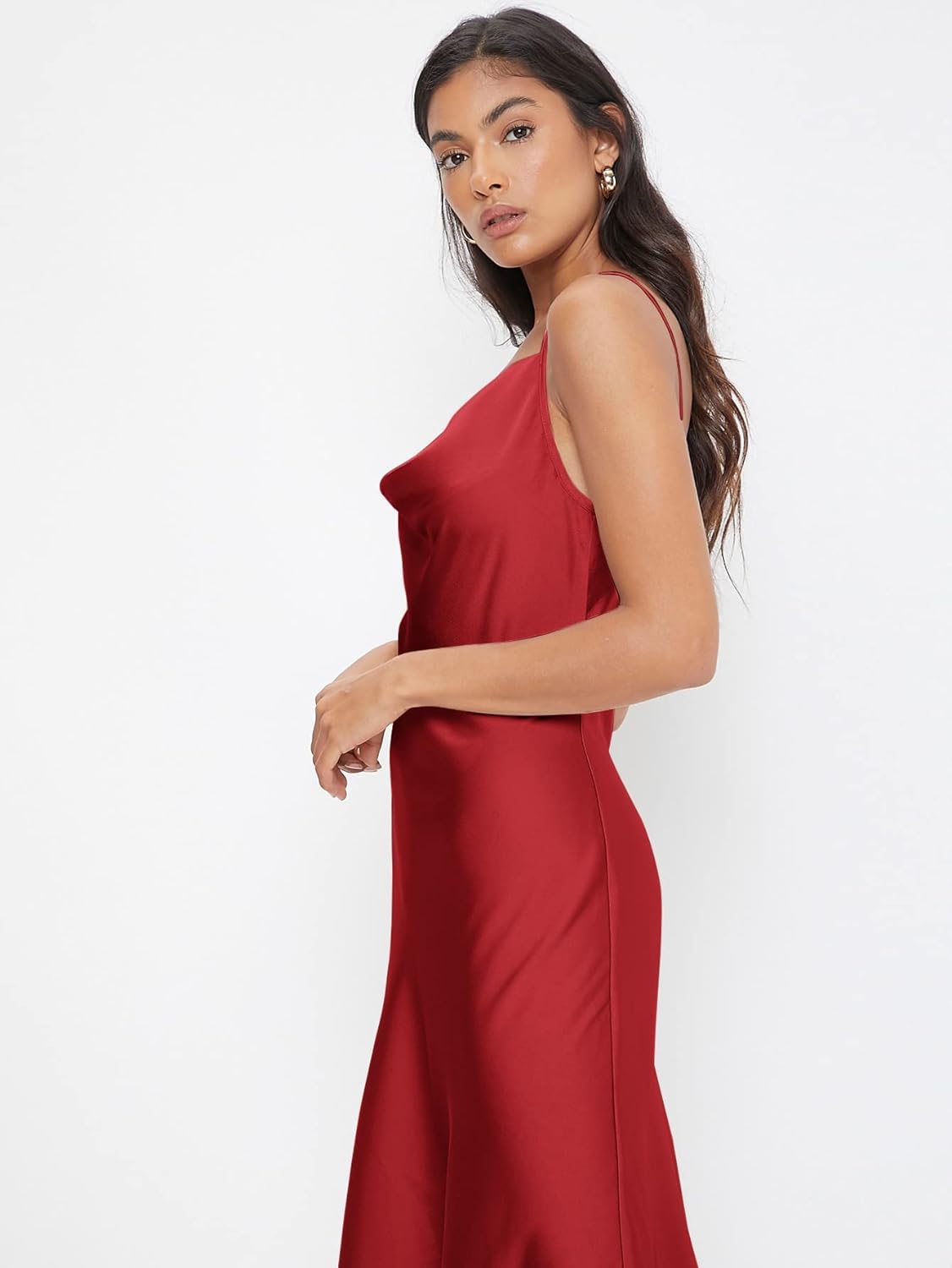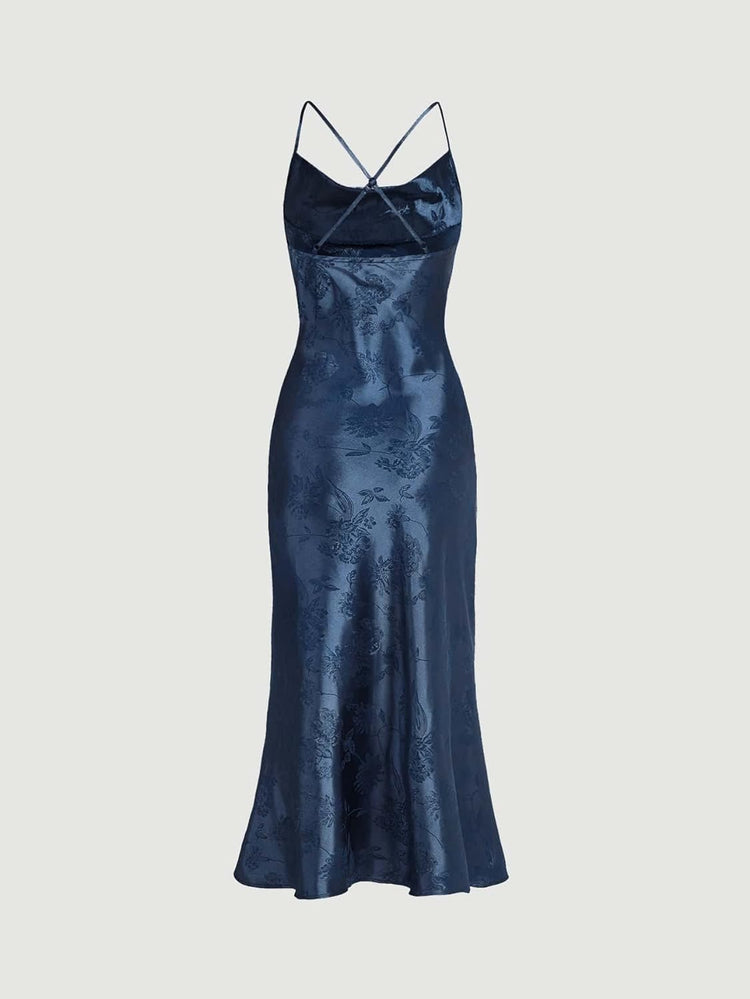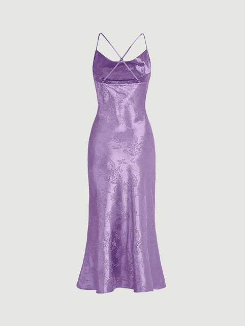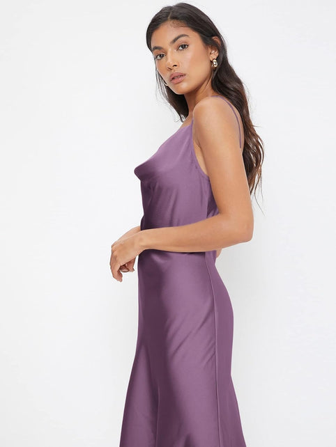 Floerns Women's Spaghetti Strap Cowl Neck Long Slip Satin Silk Midi Dress