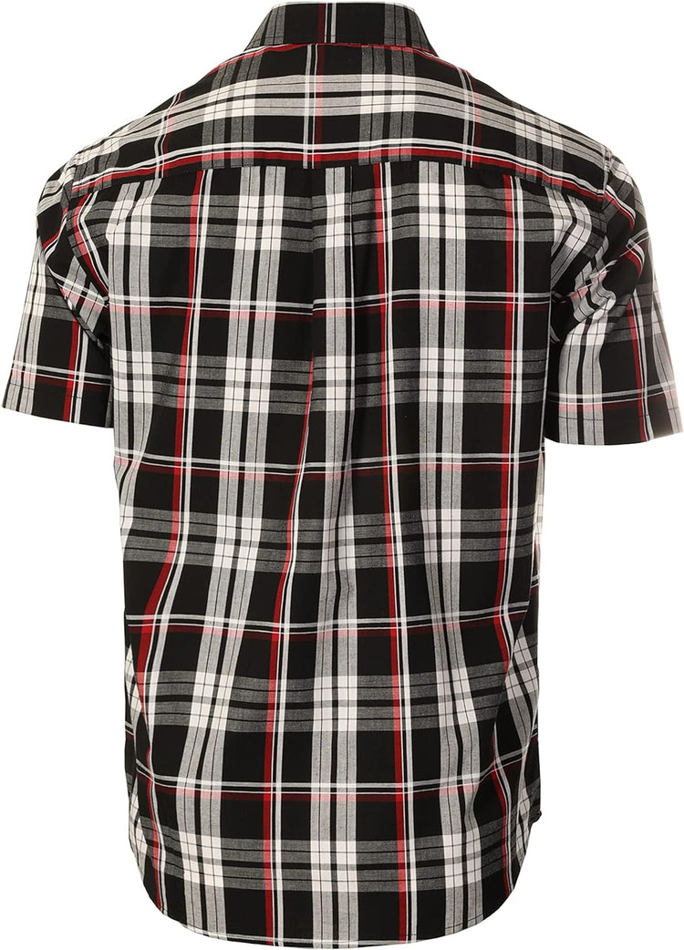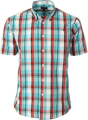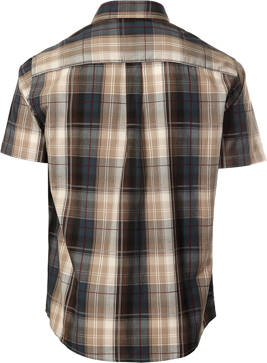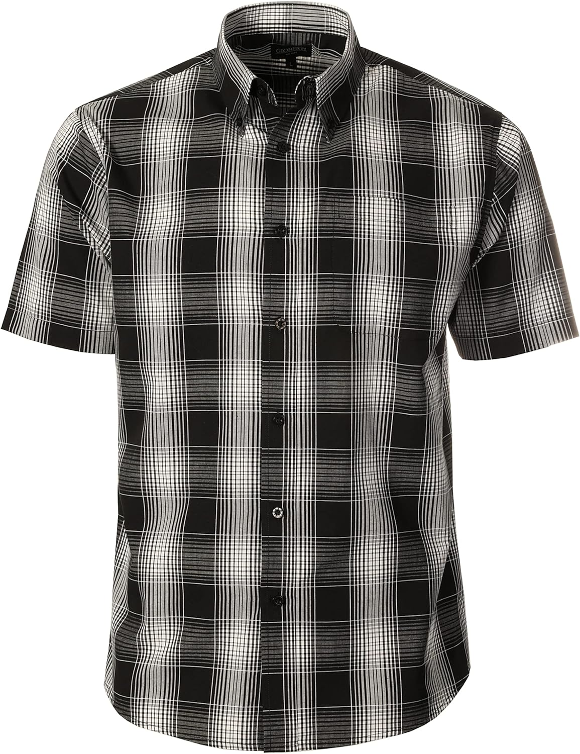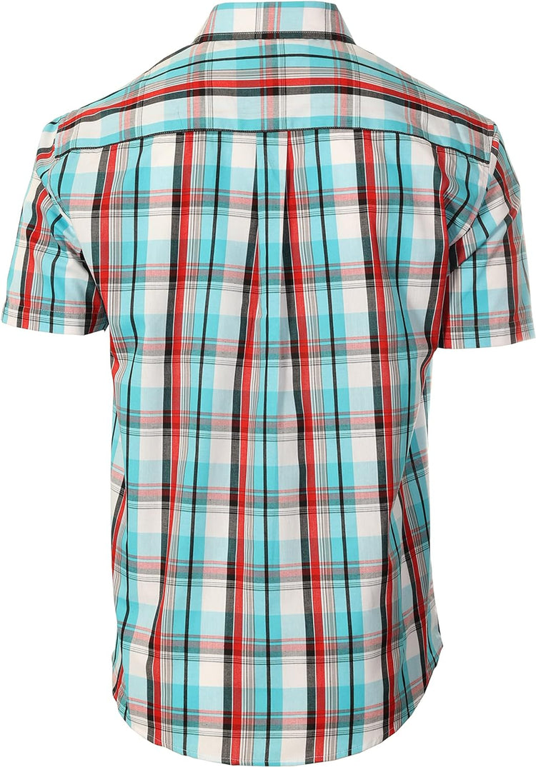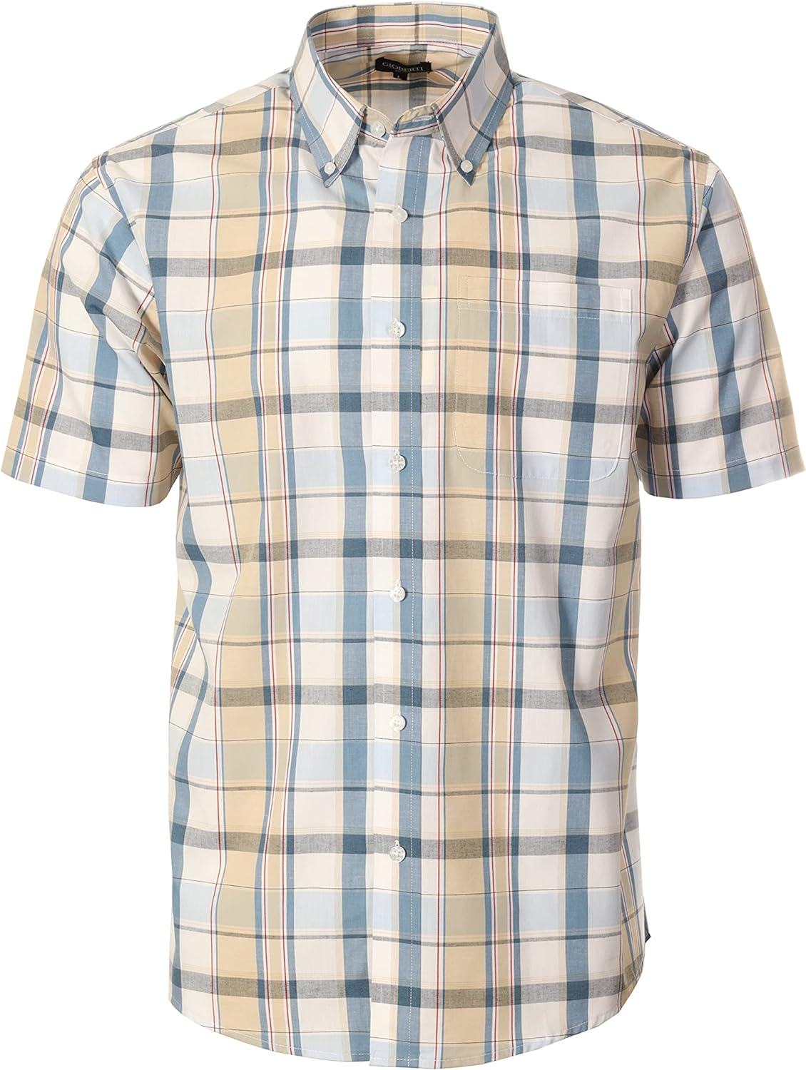 Mens Casual Button Down Dress Shirt, Short Sleeve, Plaid Checked