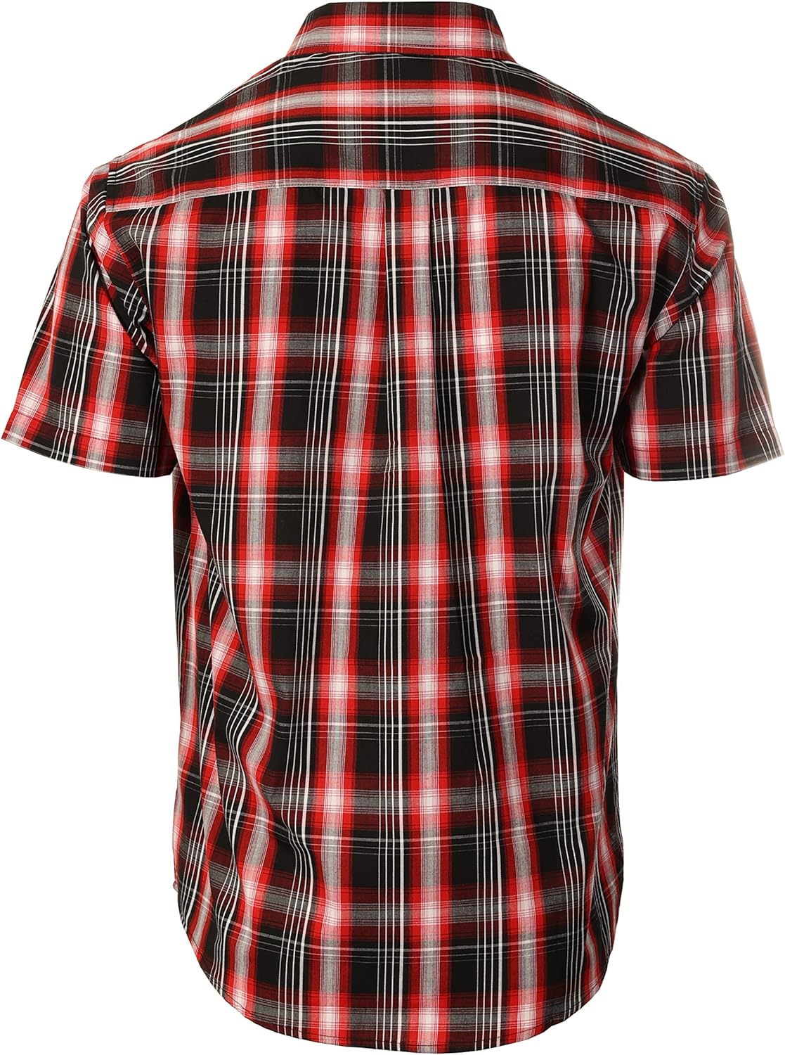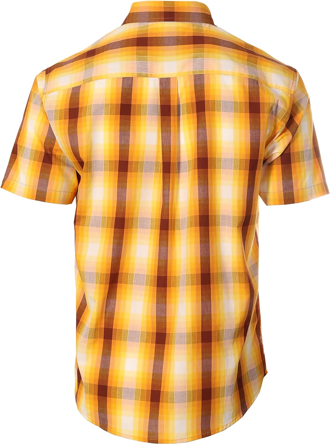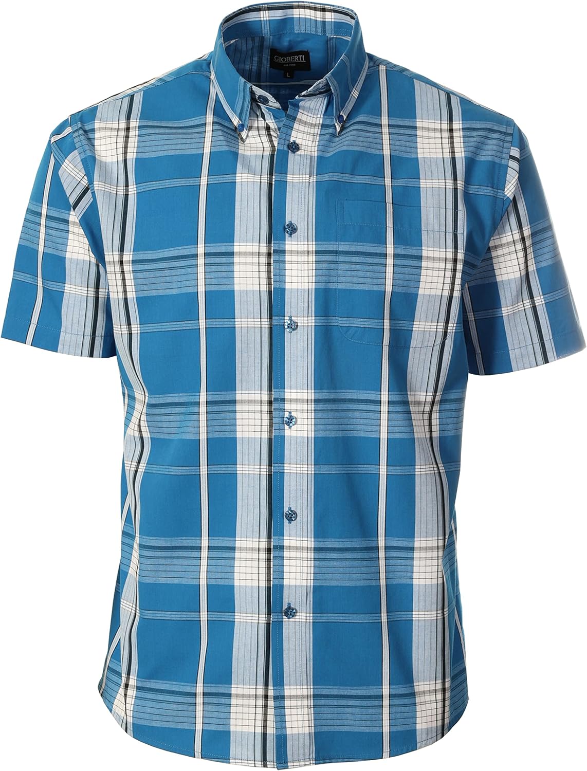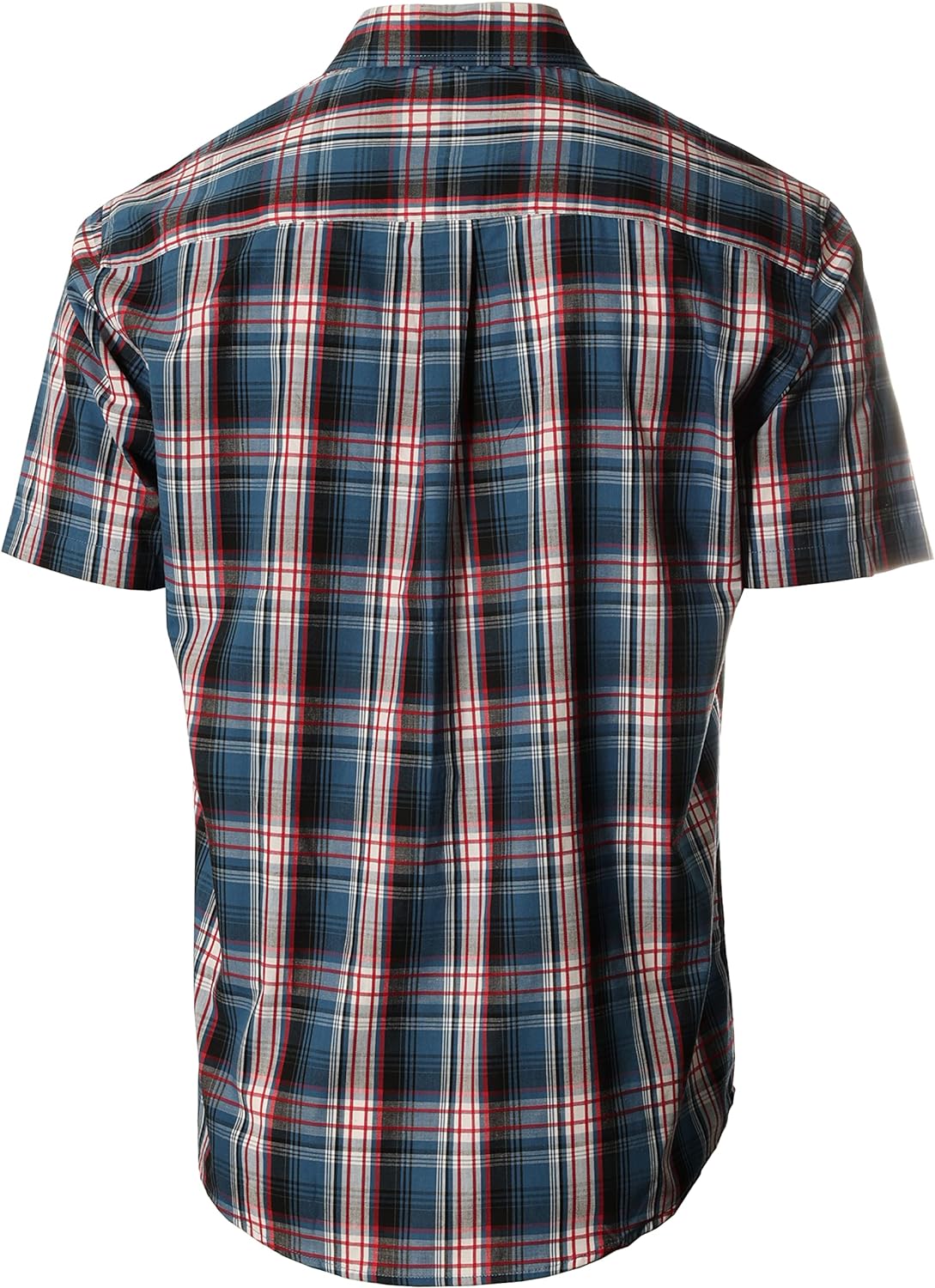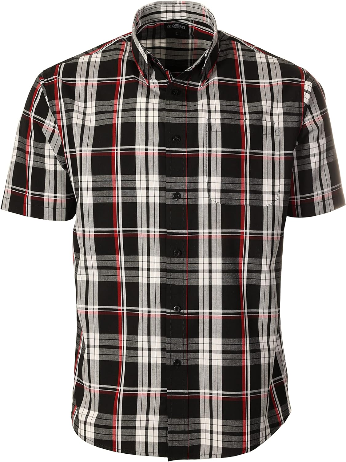 Mens Casual Button Down Dress Shirt, Short Sleeve, Plaid Checked