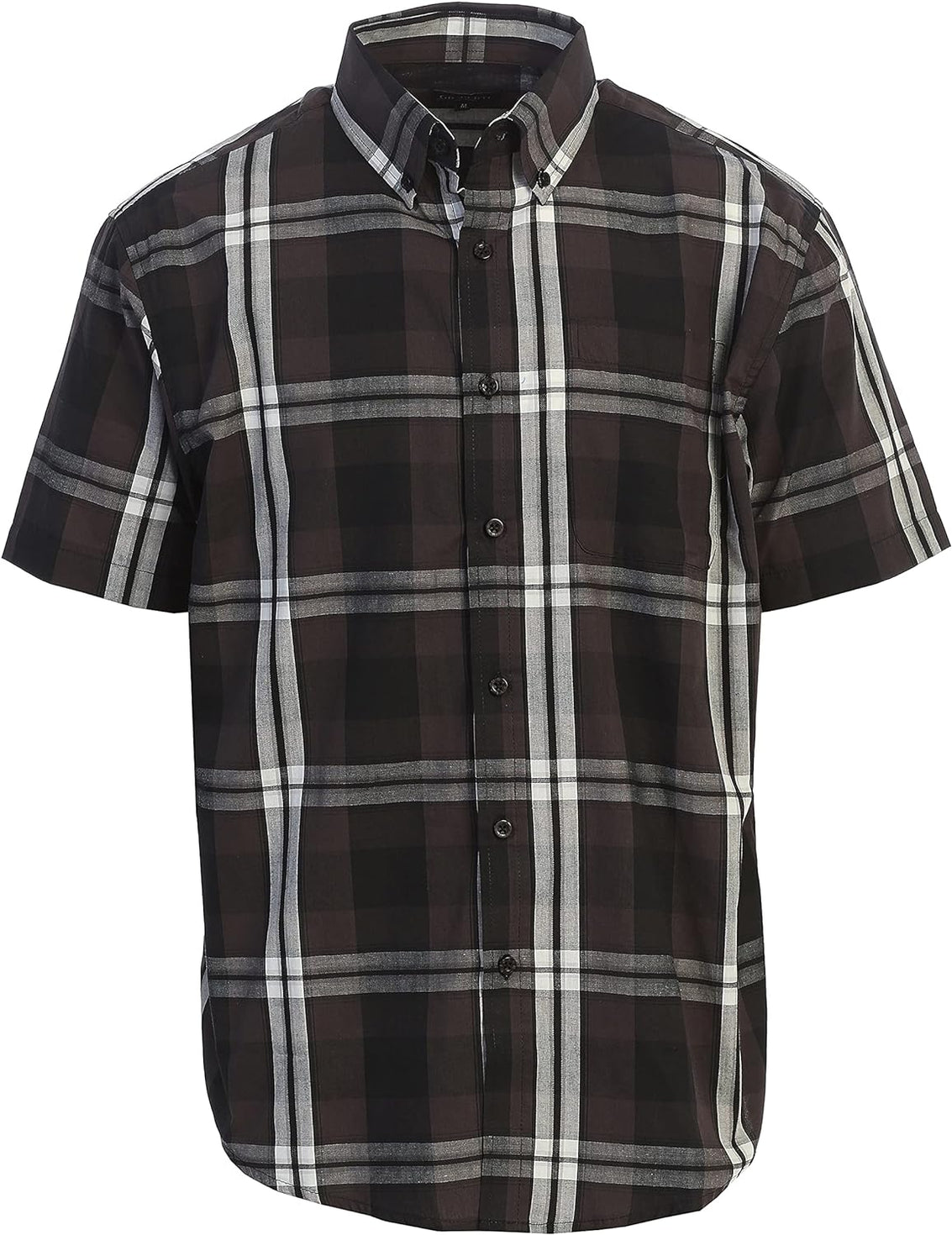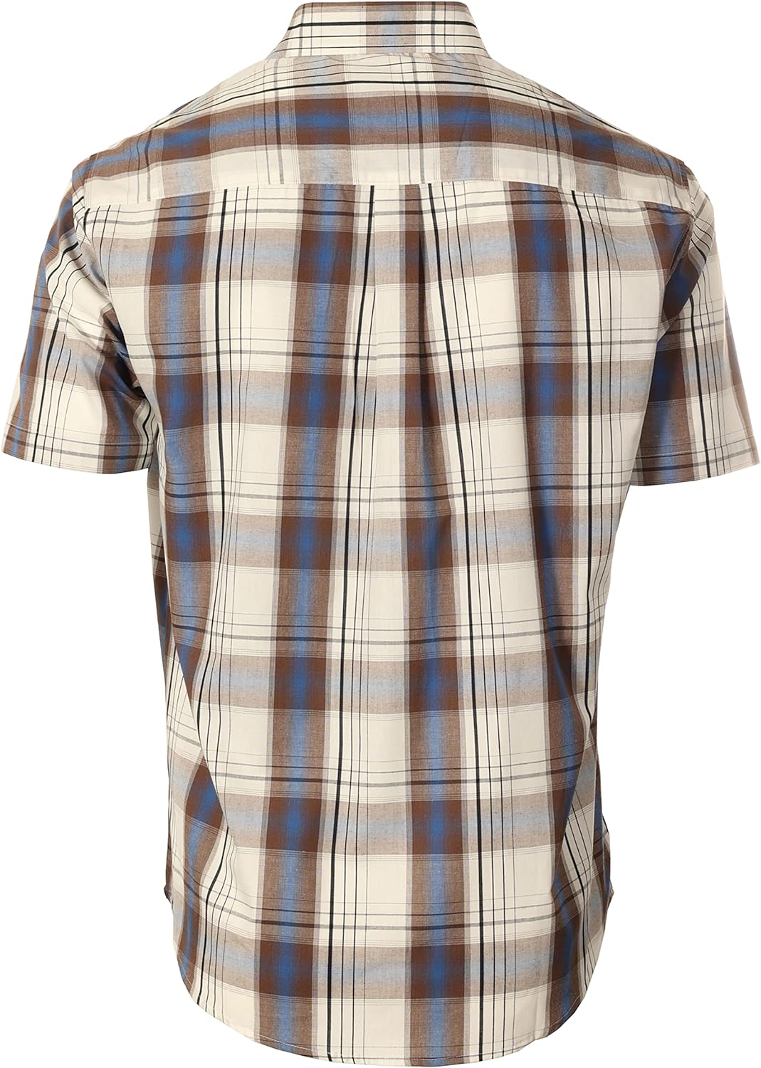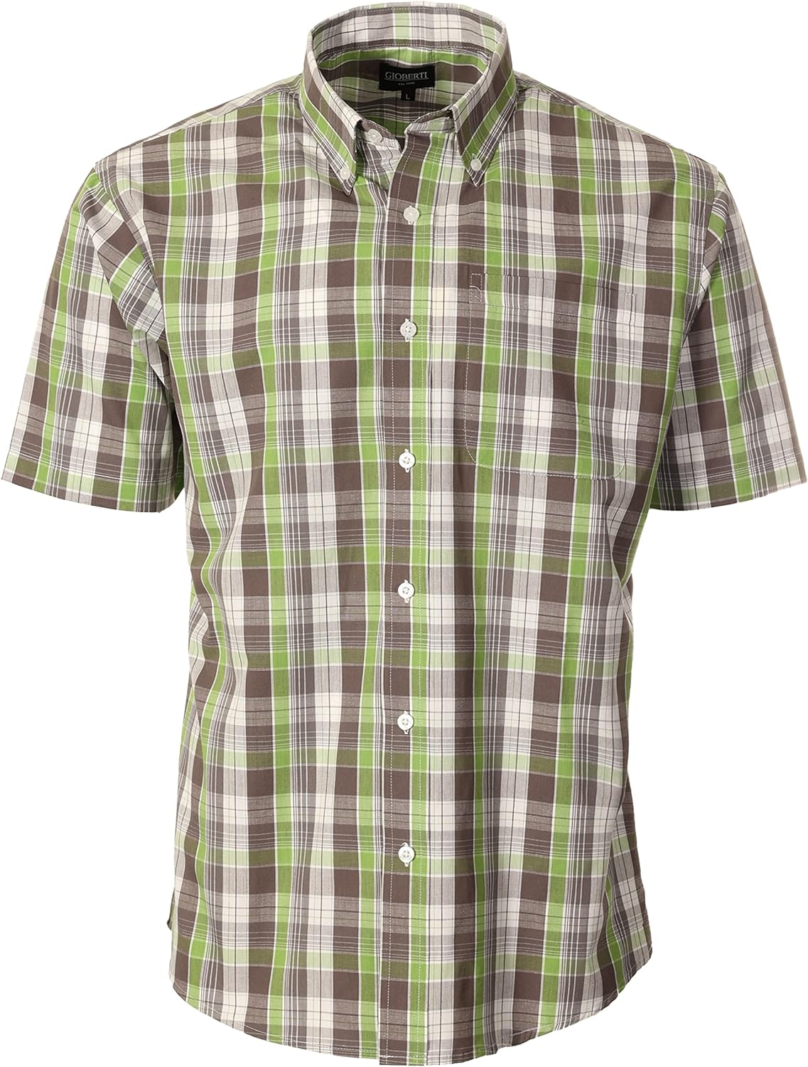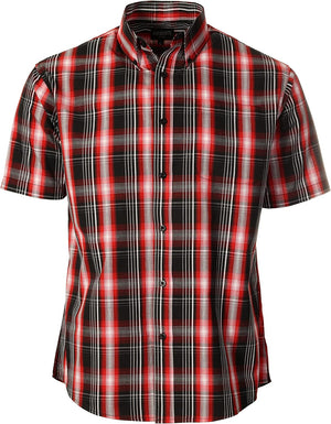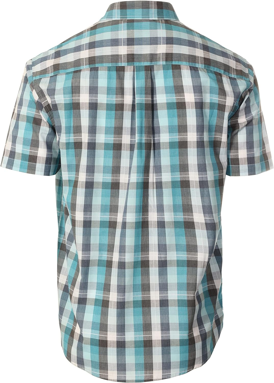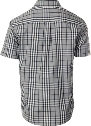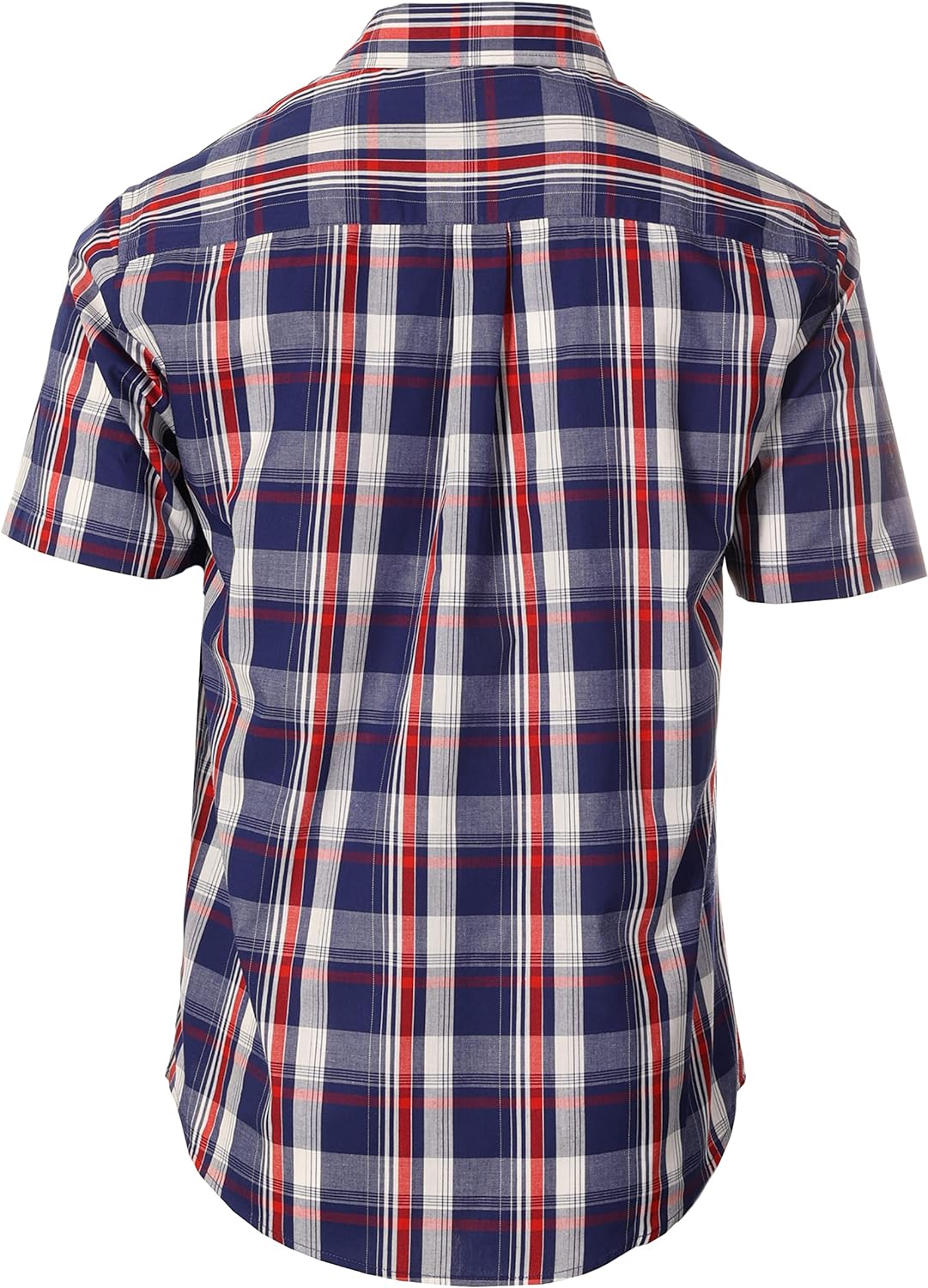 Mens Casual Button Down Dress Shirt, Short Sleeve, Plaid Checked