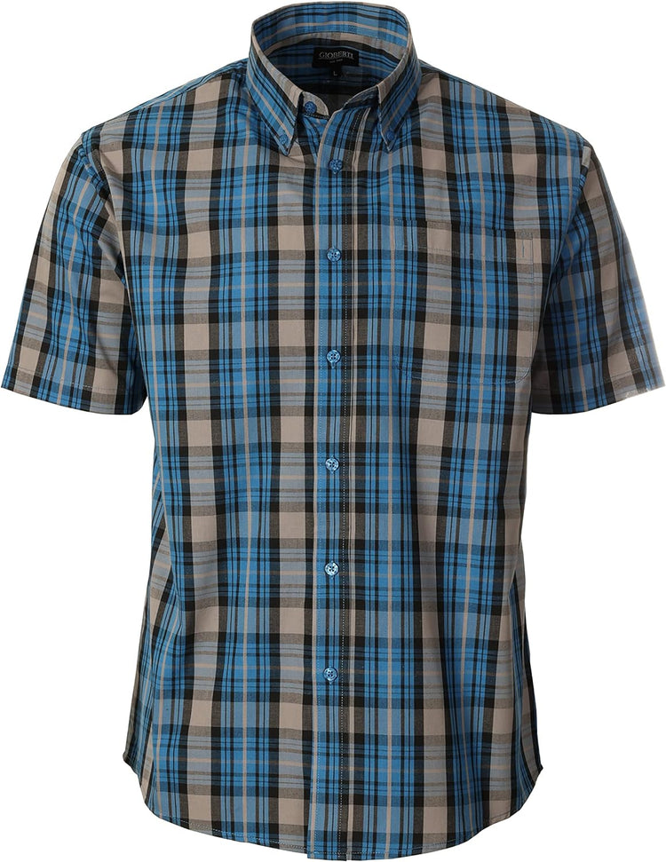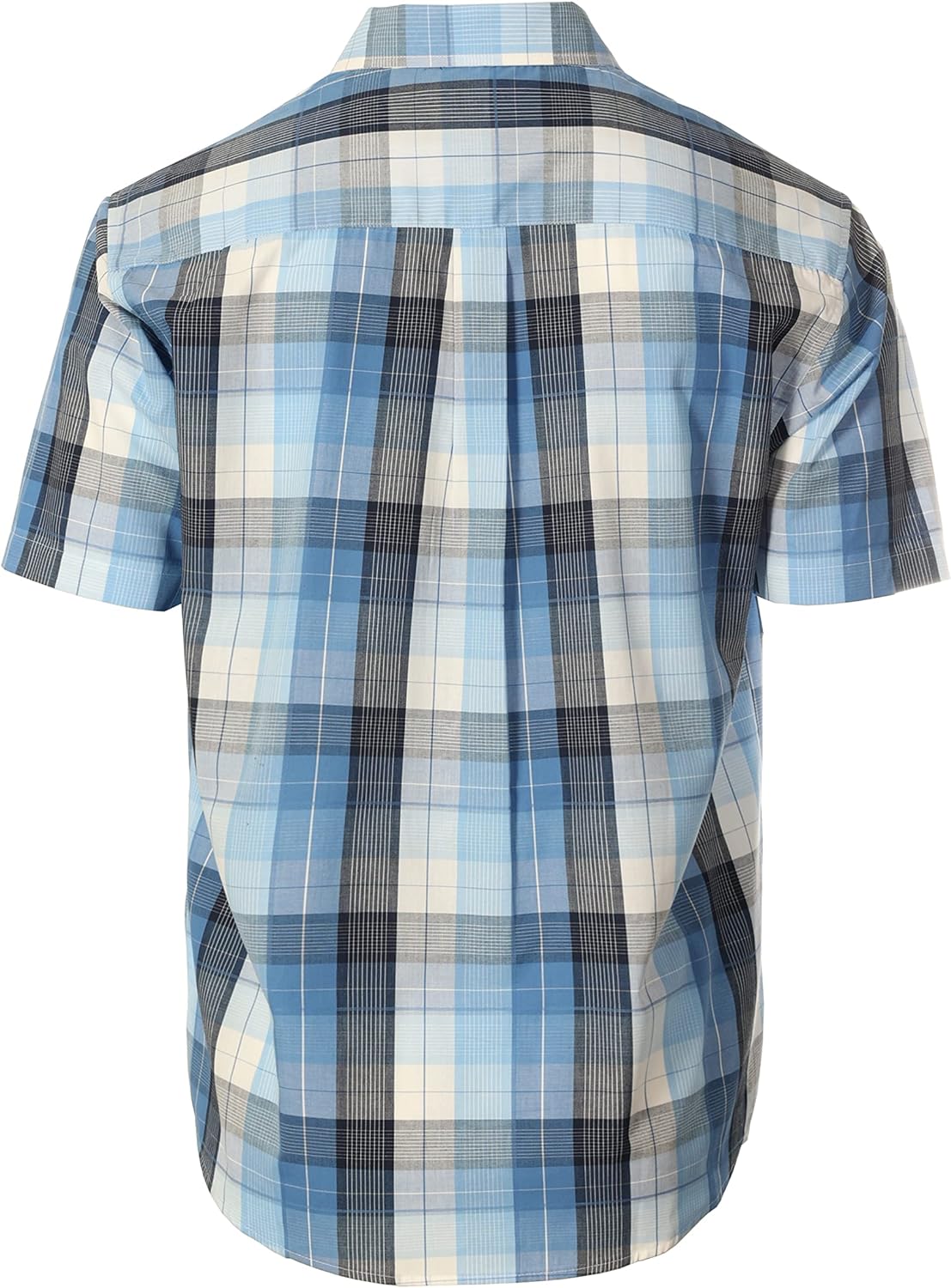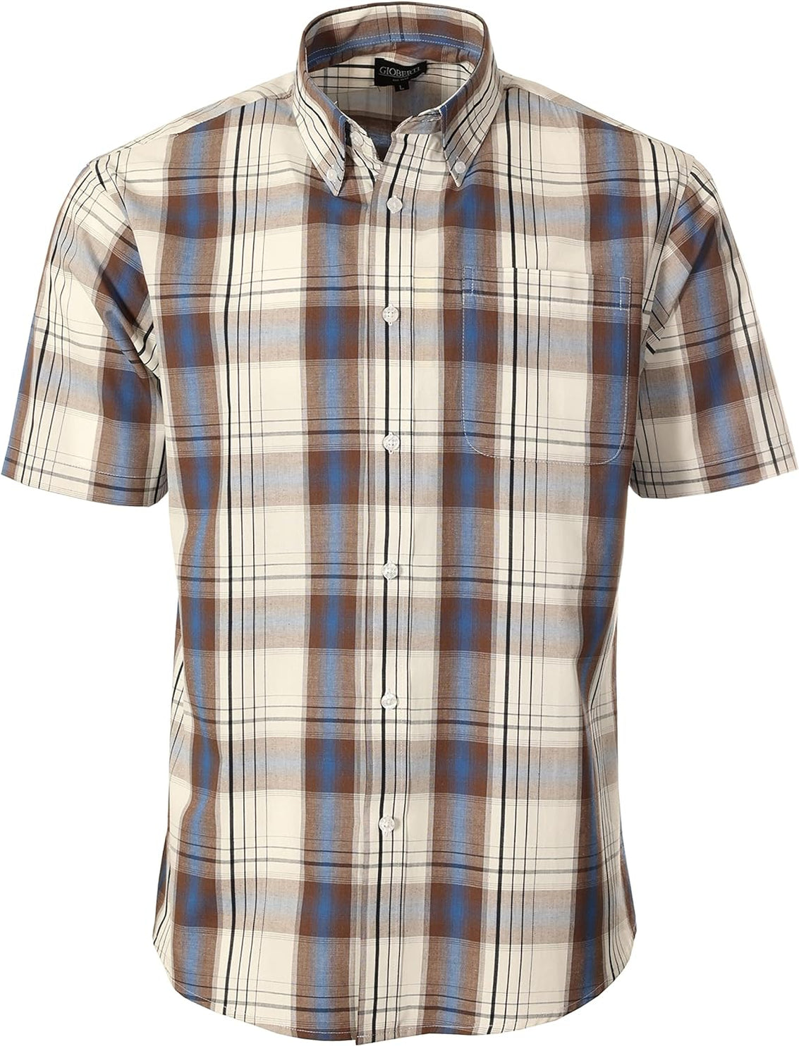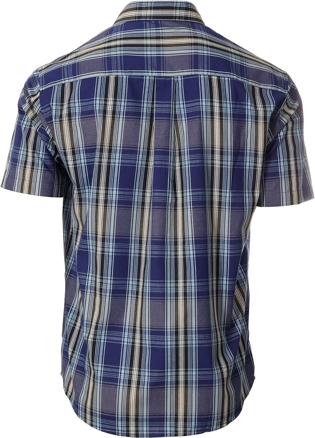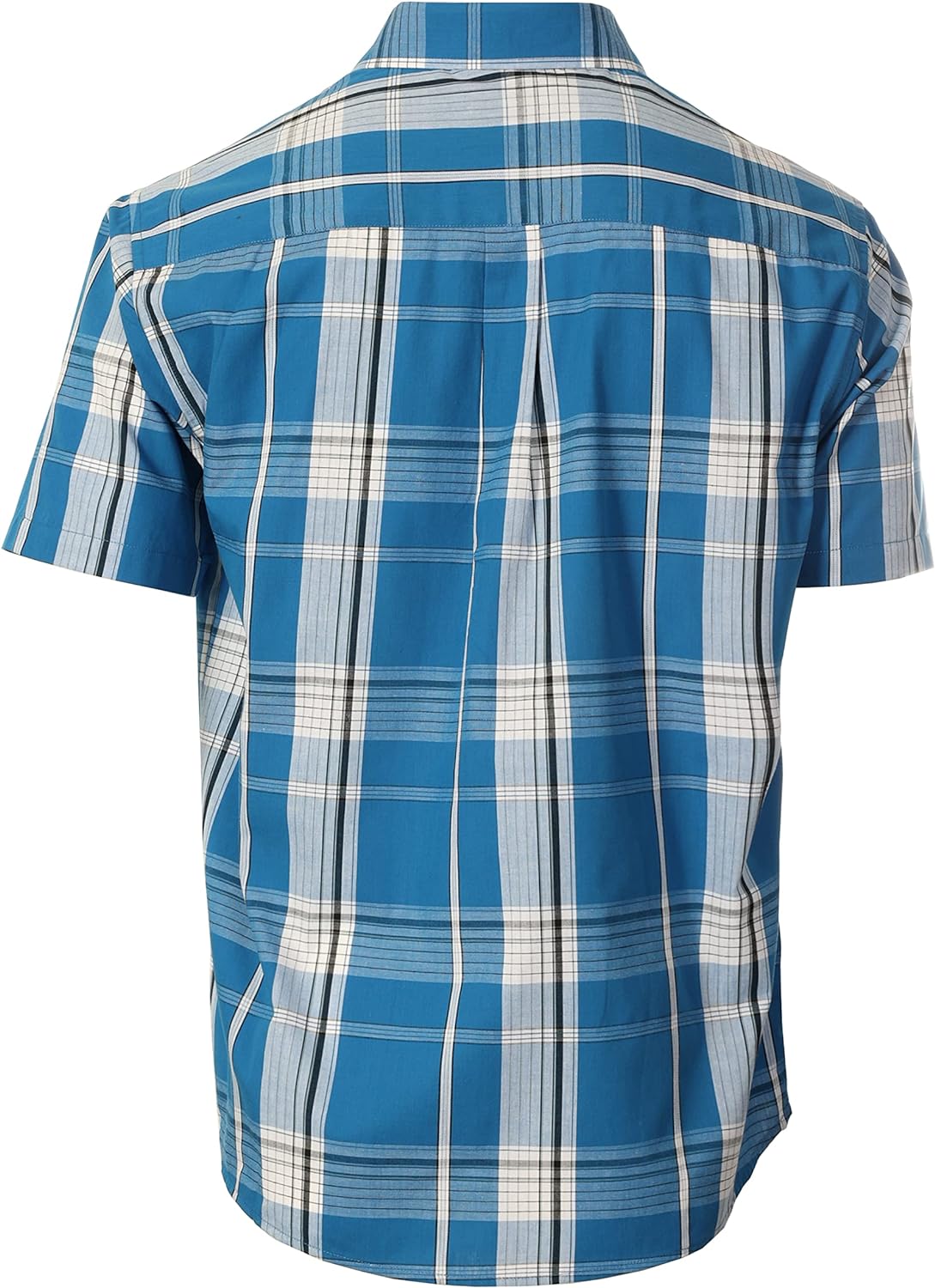 Mens Casual Button Down Dress Shirt, Short Sleeve, Plaid Checked