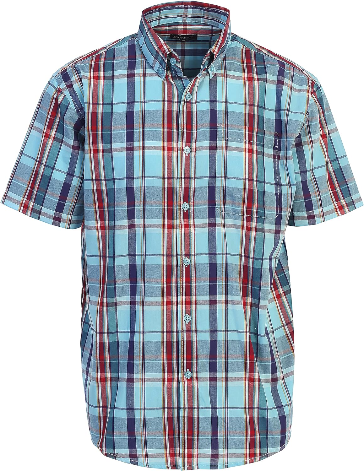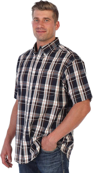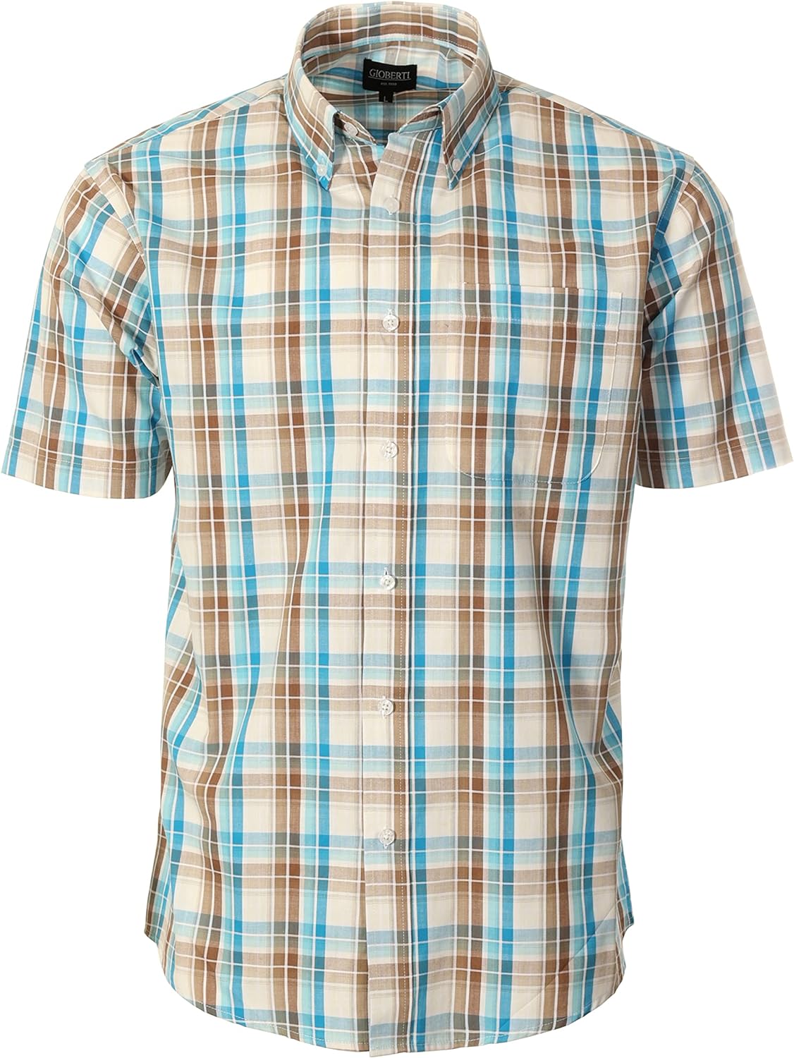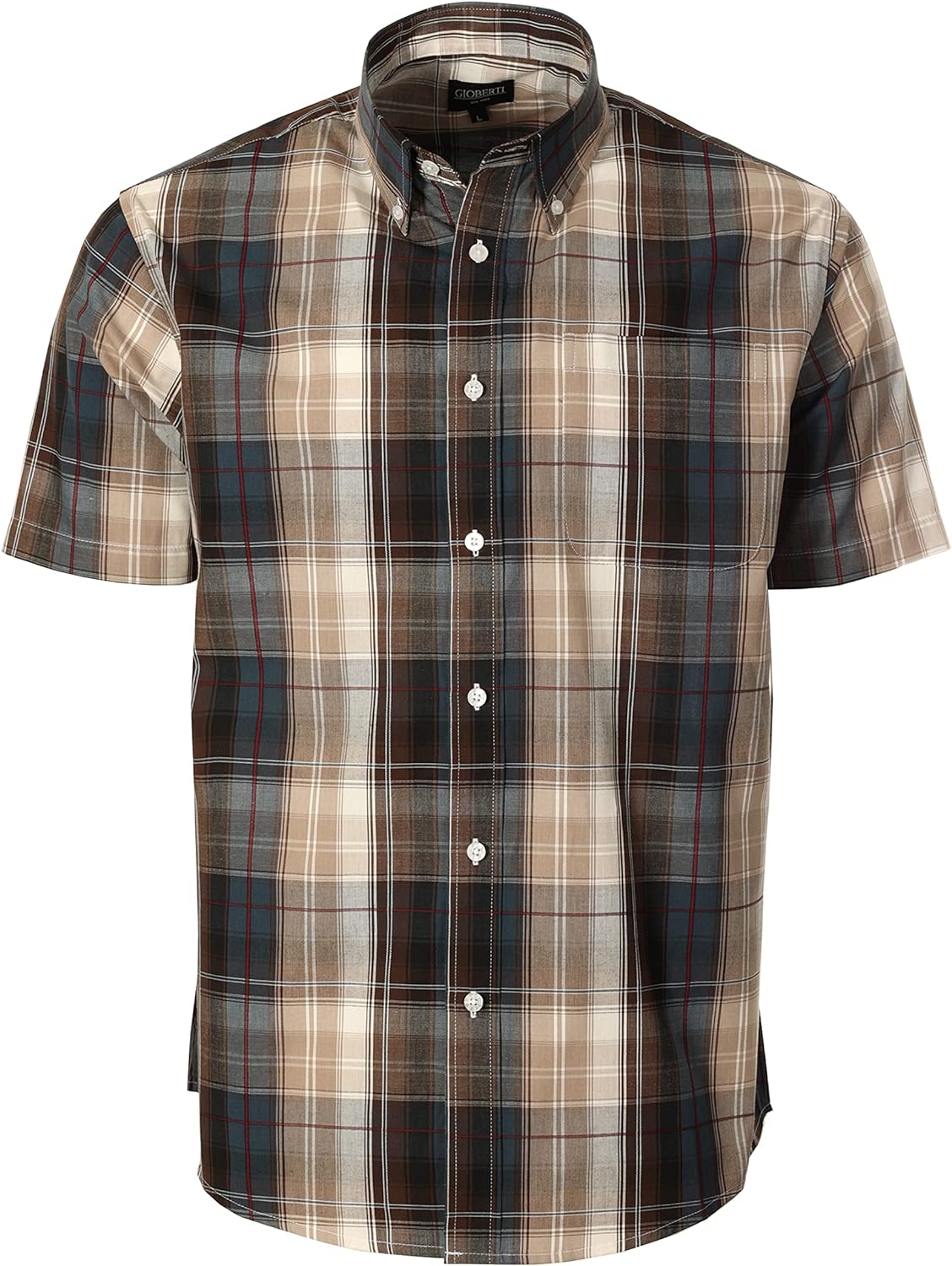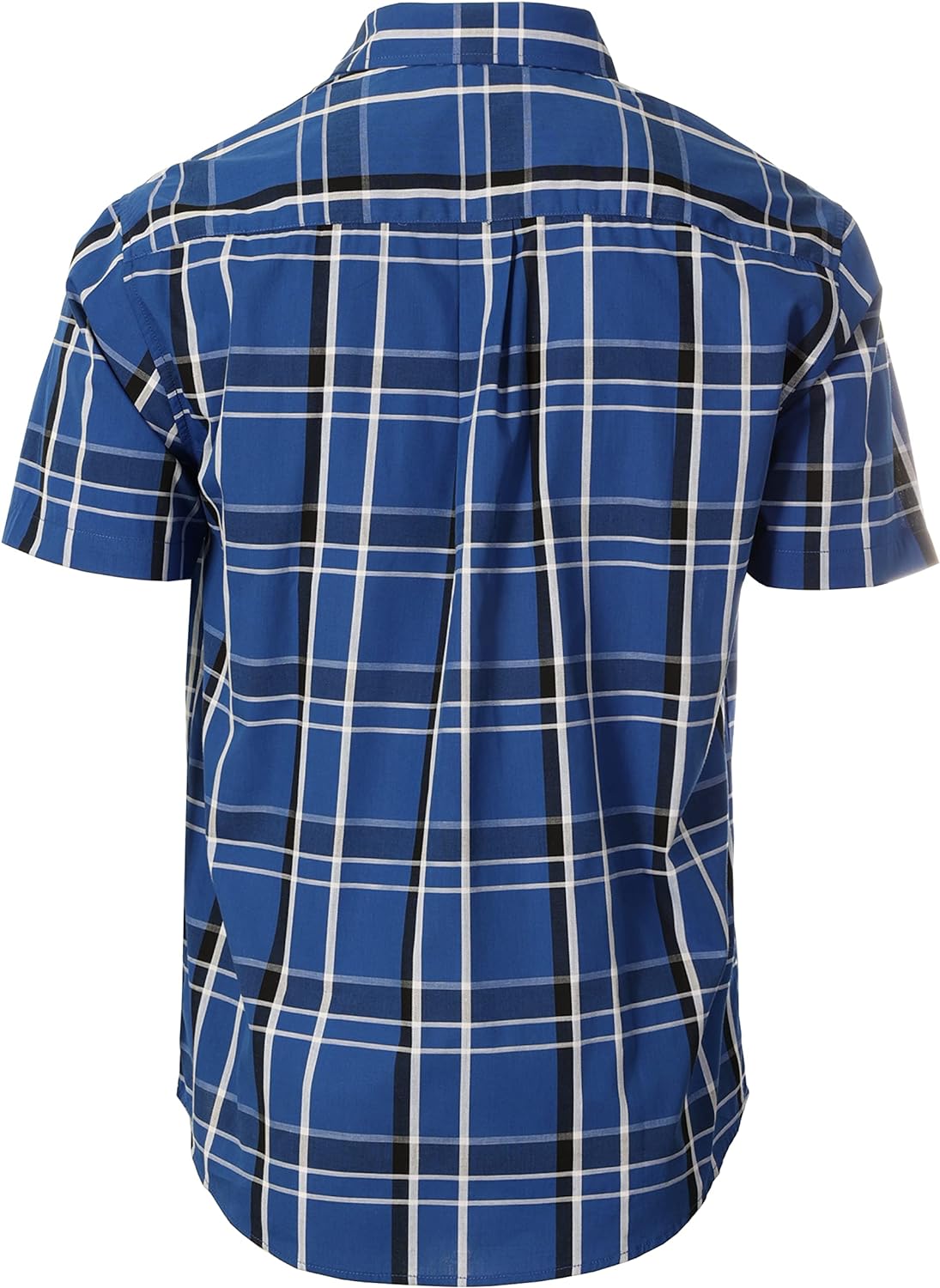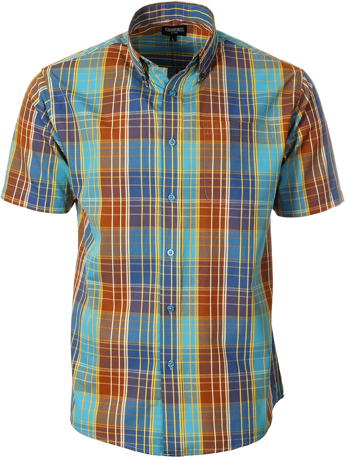 Mens Casual Button Down Dress Shirt, Short Sleeve, Plaid Checked