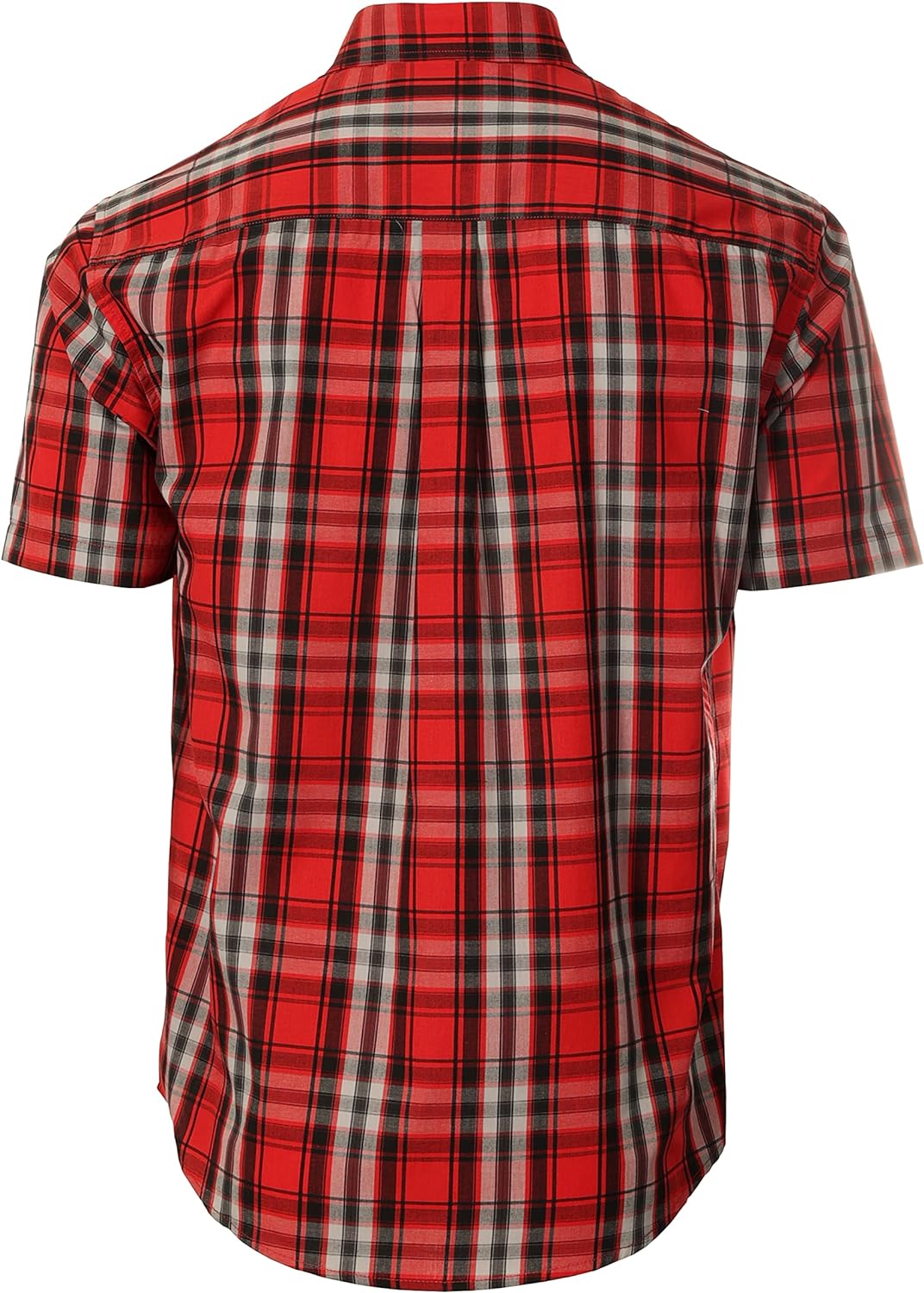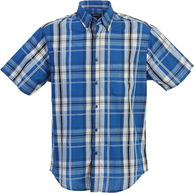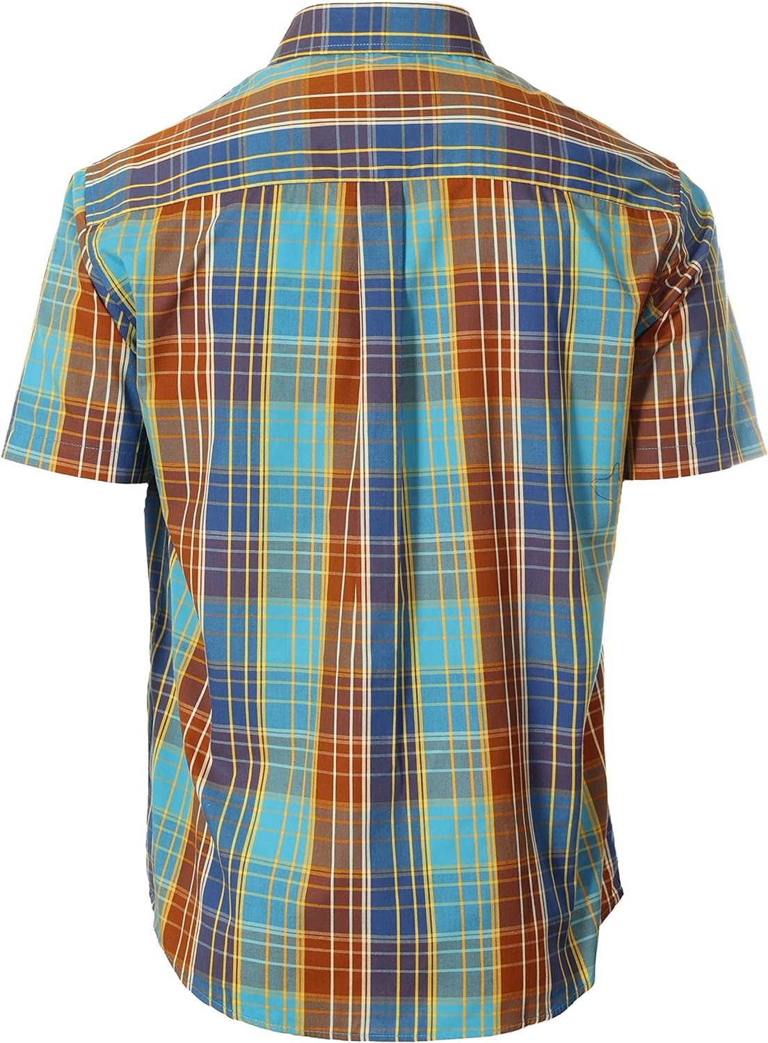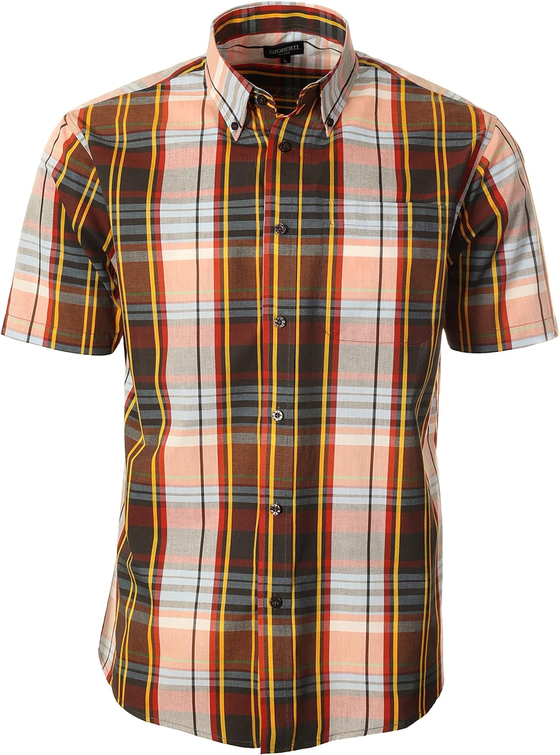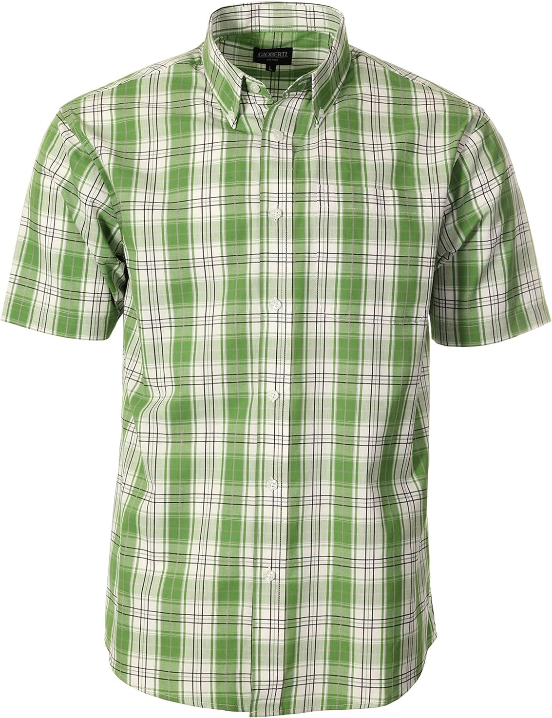 Mens Casual Button Down Dress Shirt, Short Sleeve, Plaid Checked