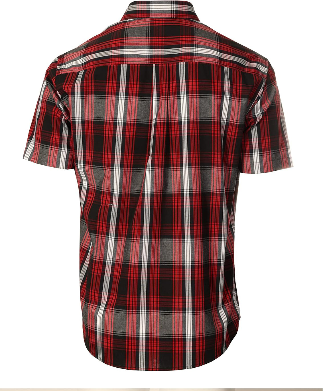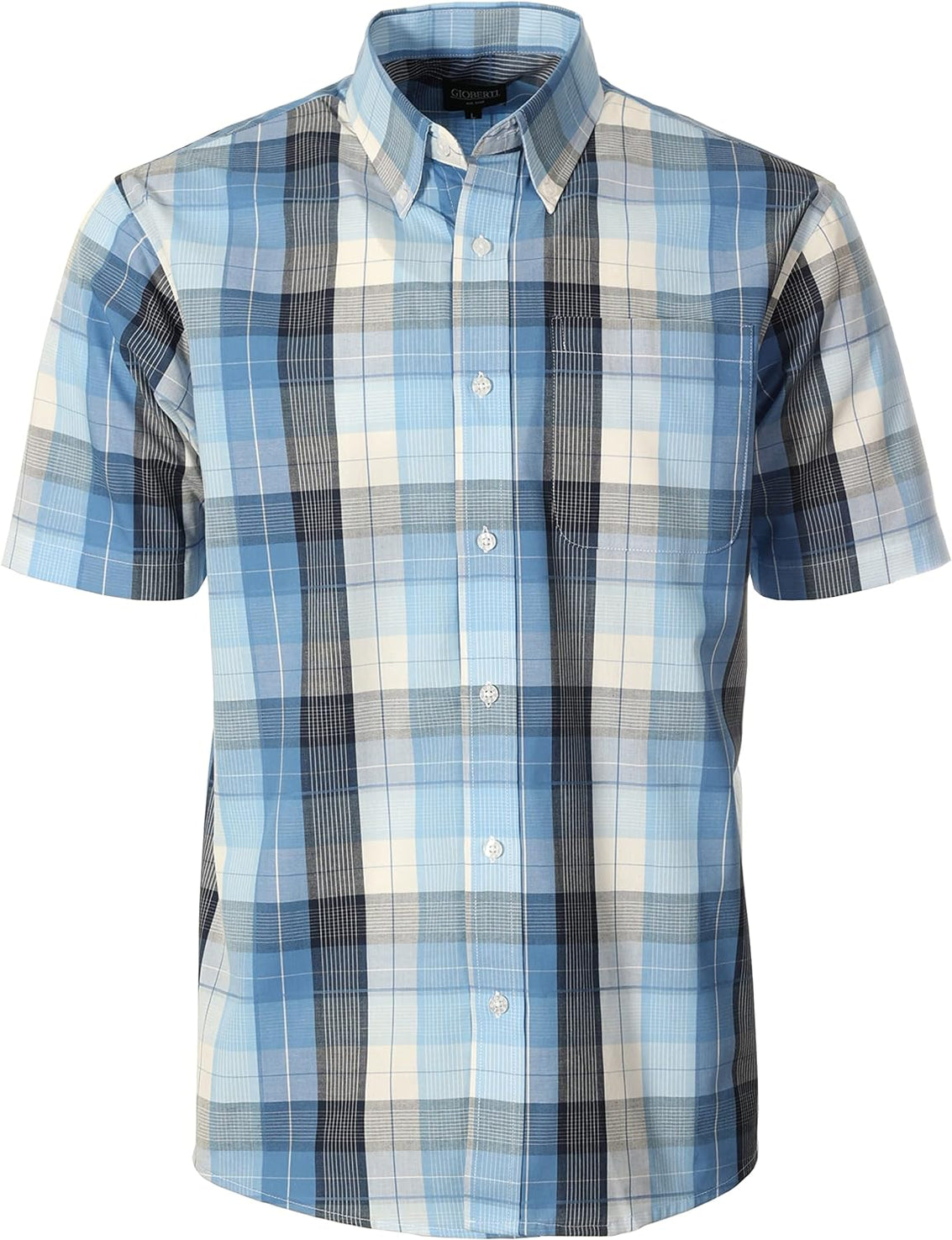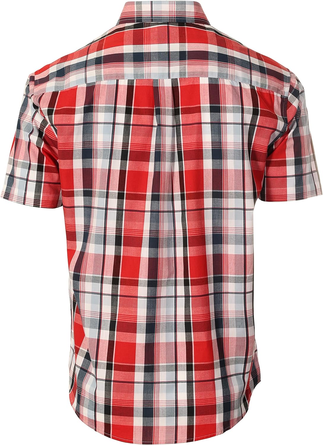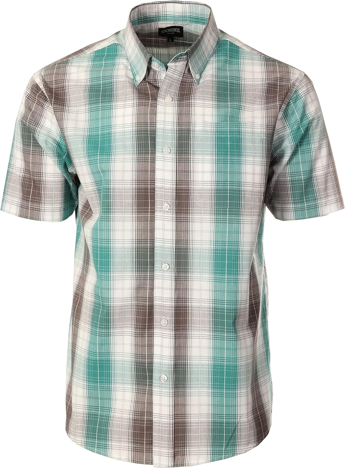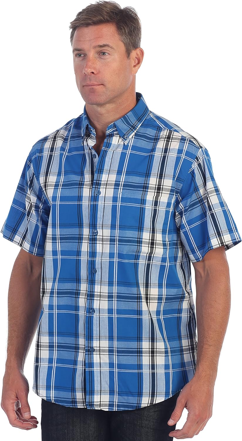 Mens Casual Button Down Dress Shirt, Short Sleeve, Plaid Checked