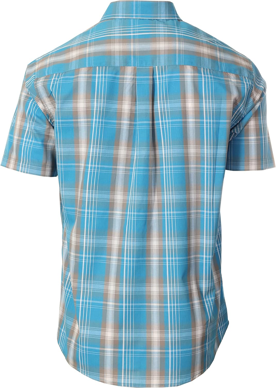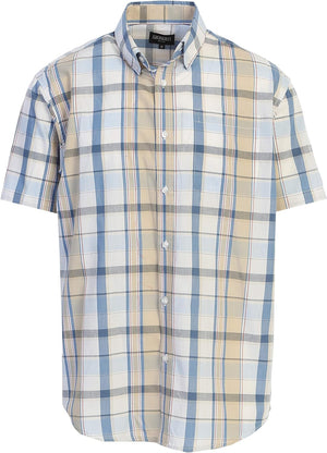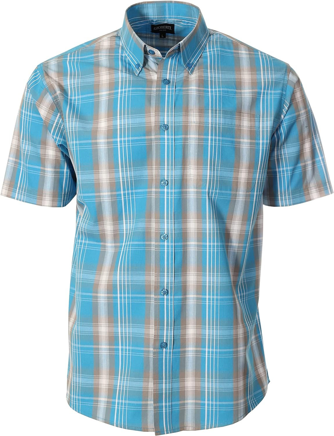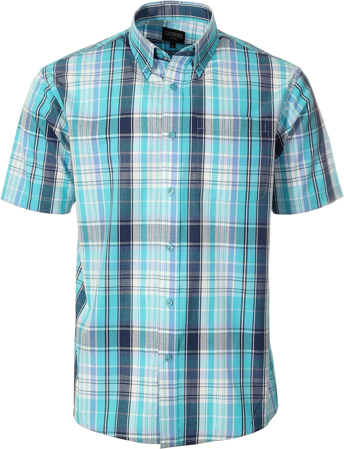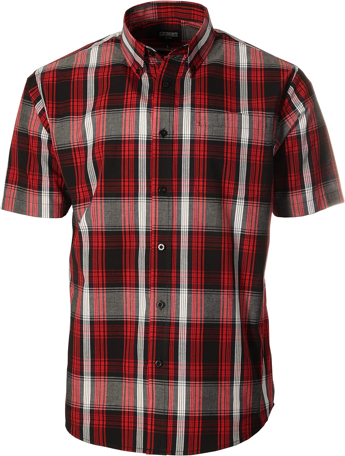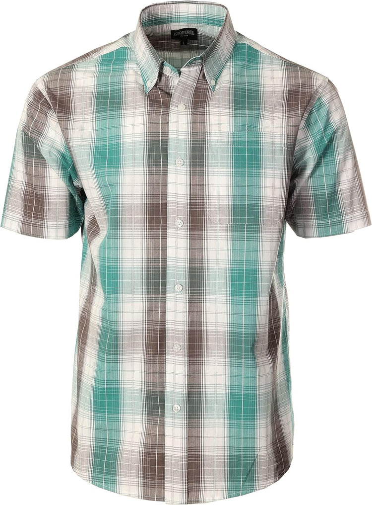 Mens Casual Button Down Dress Shirt, Short Sleeve, Plaid Checked
