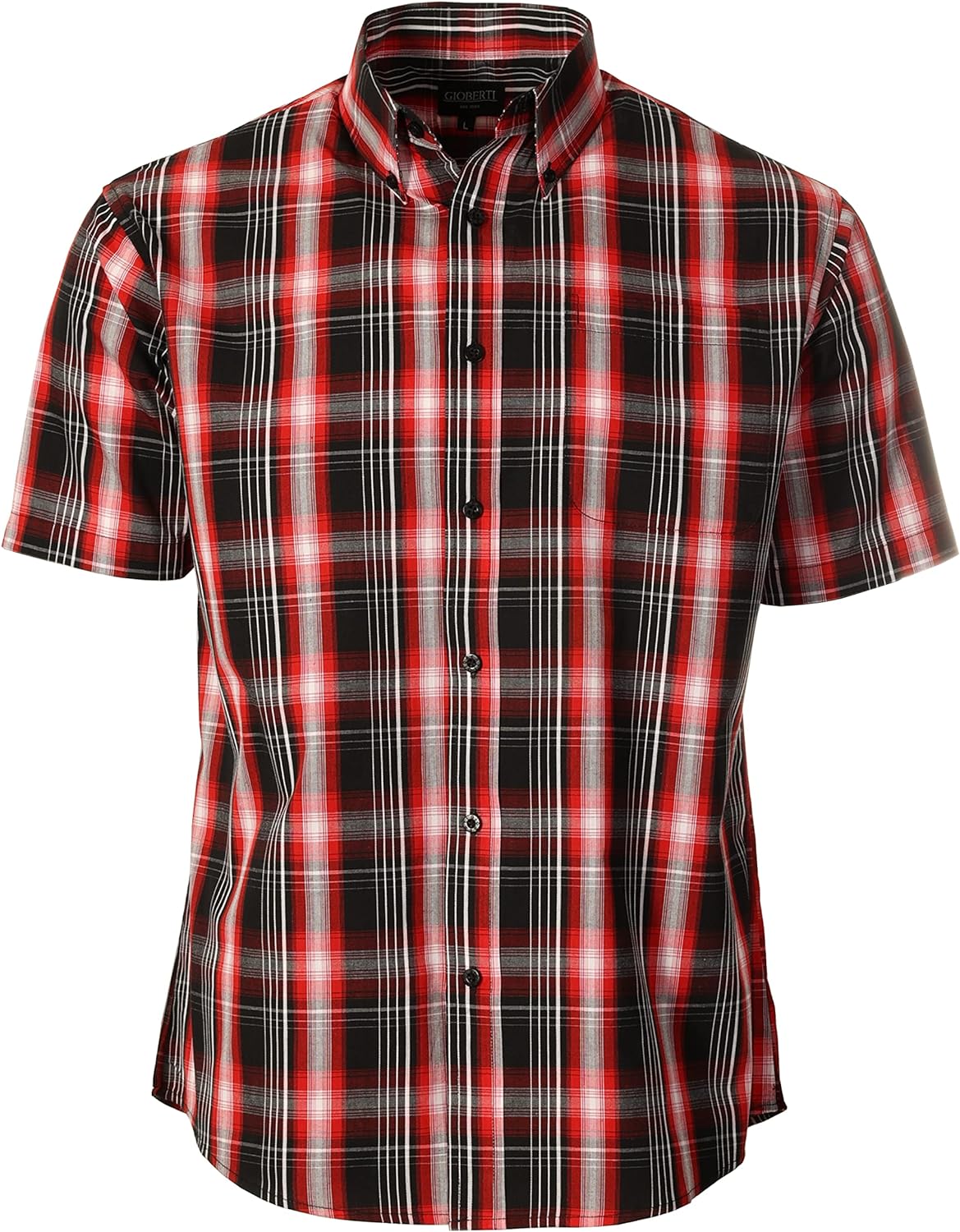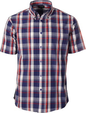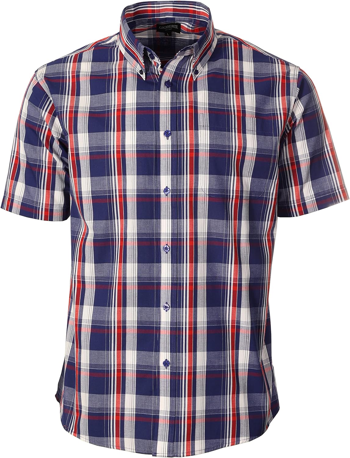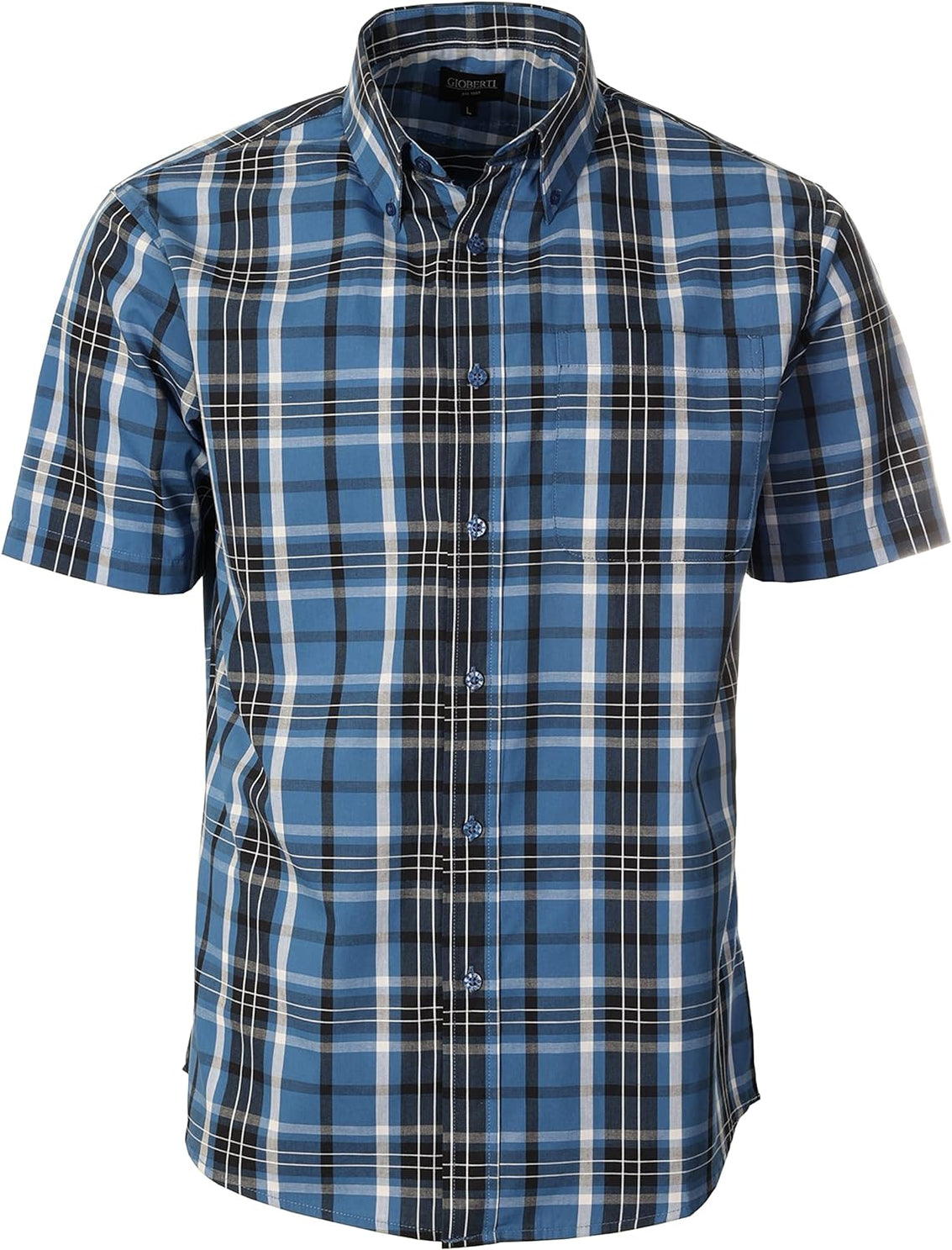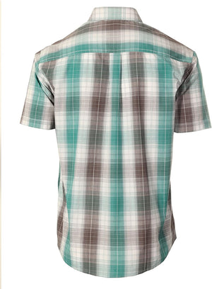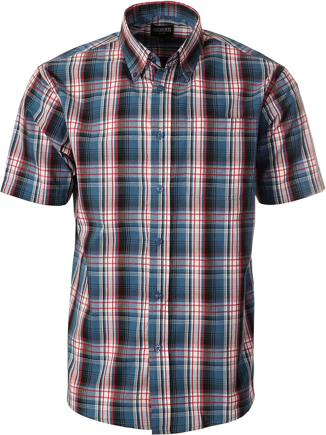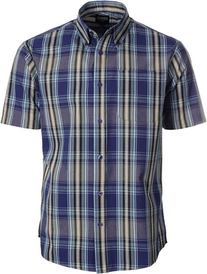Mens Casual Button Down Dress Shirt, Short Sleeve, Plaid Checked