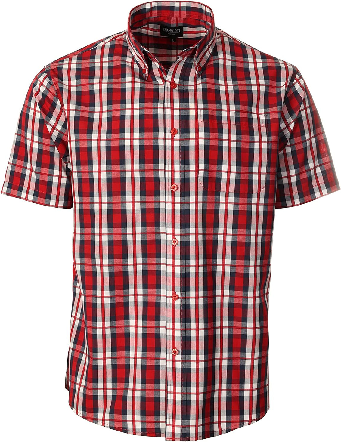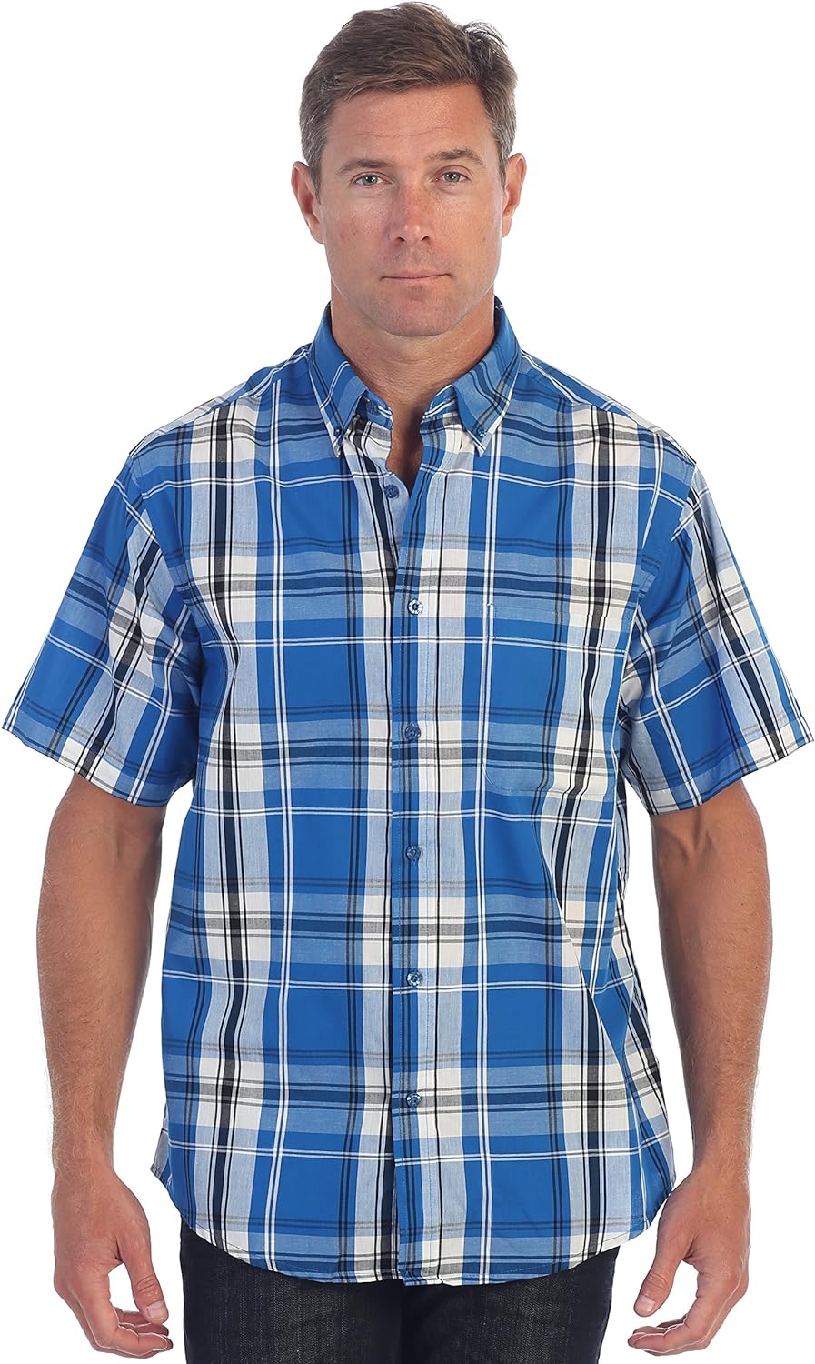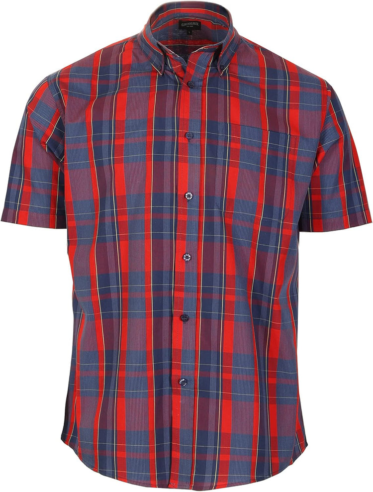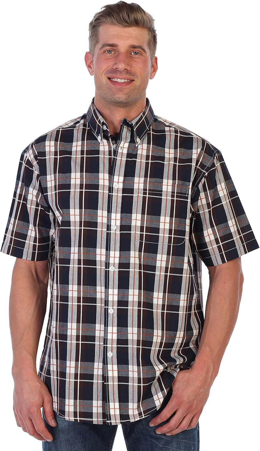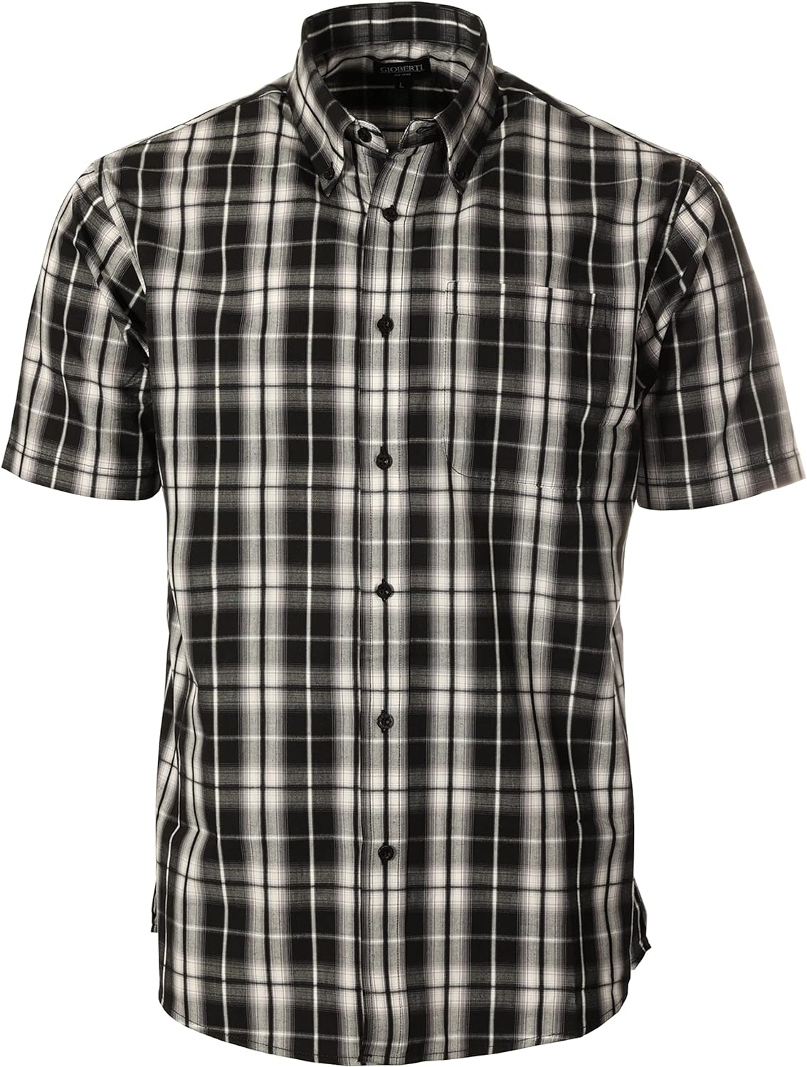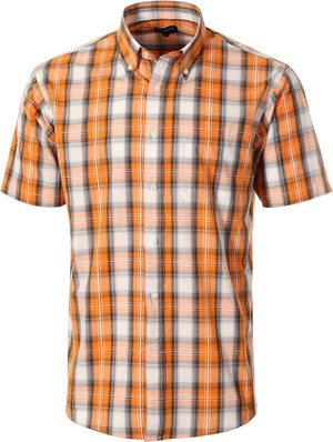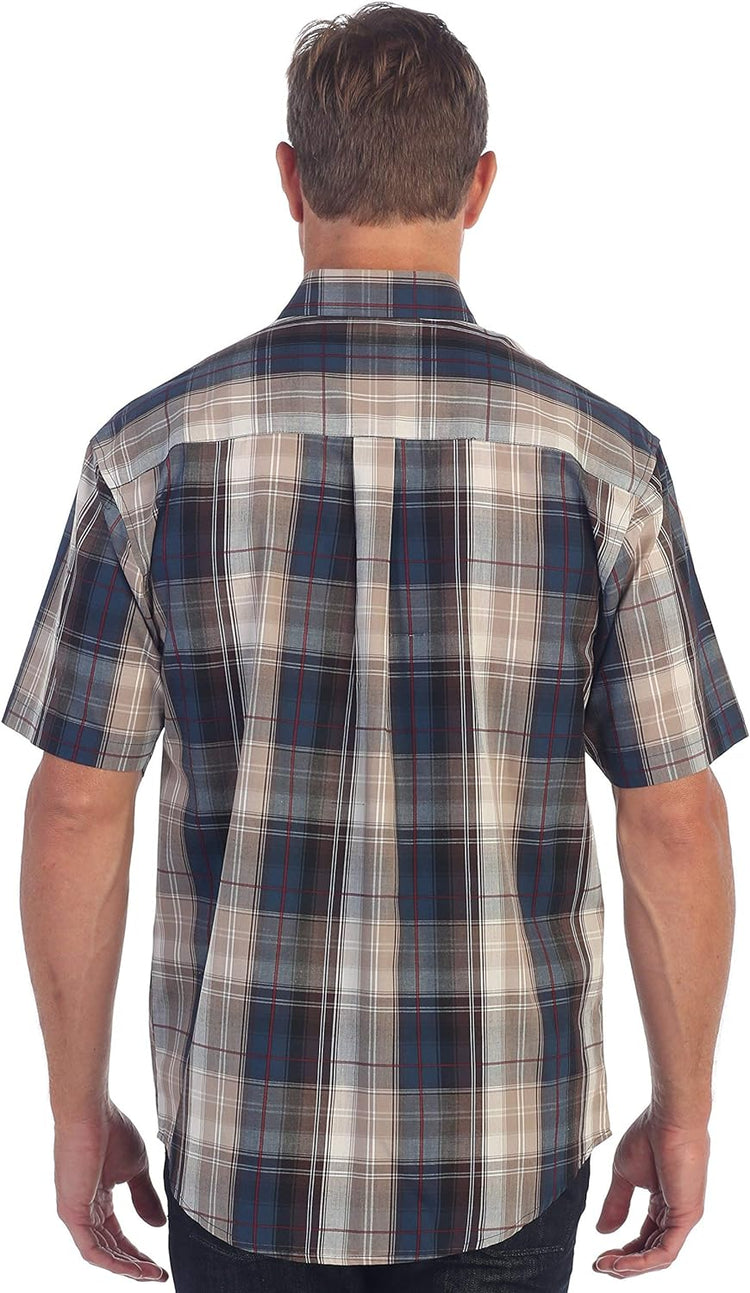 Mens Casual Button Down Dress Shirt, Short Sleeve, Plaid Checked
