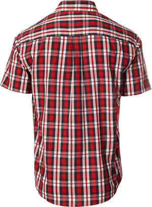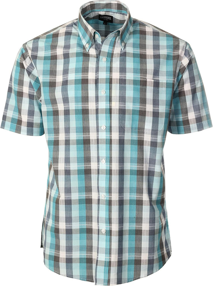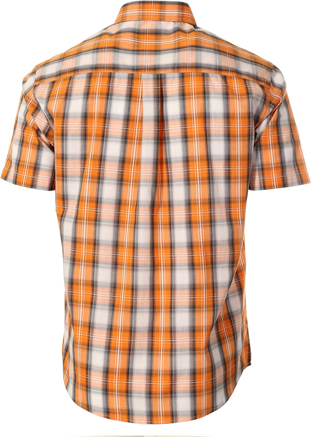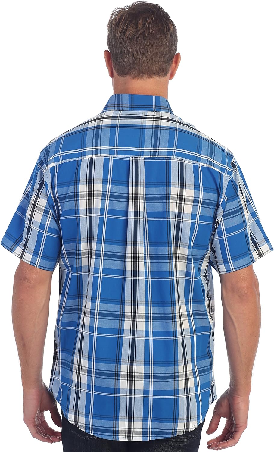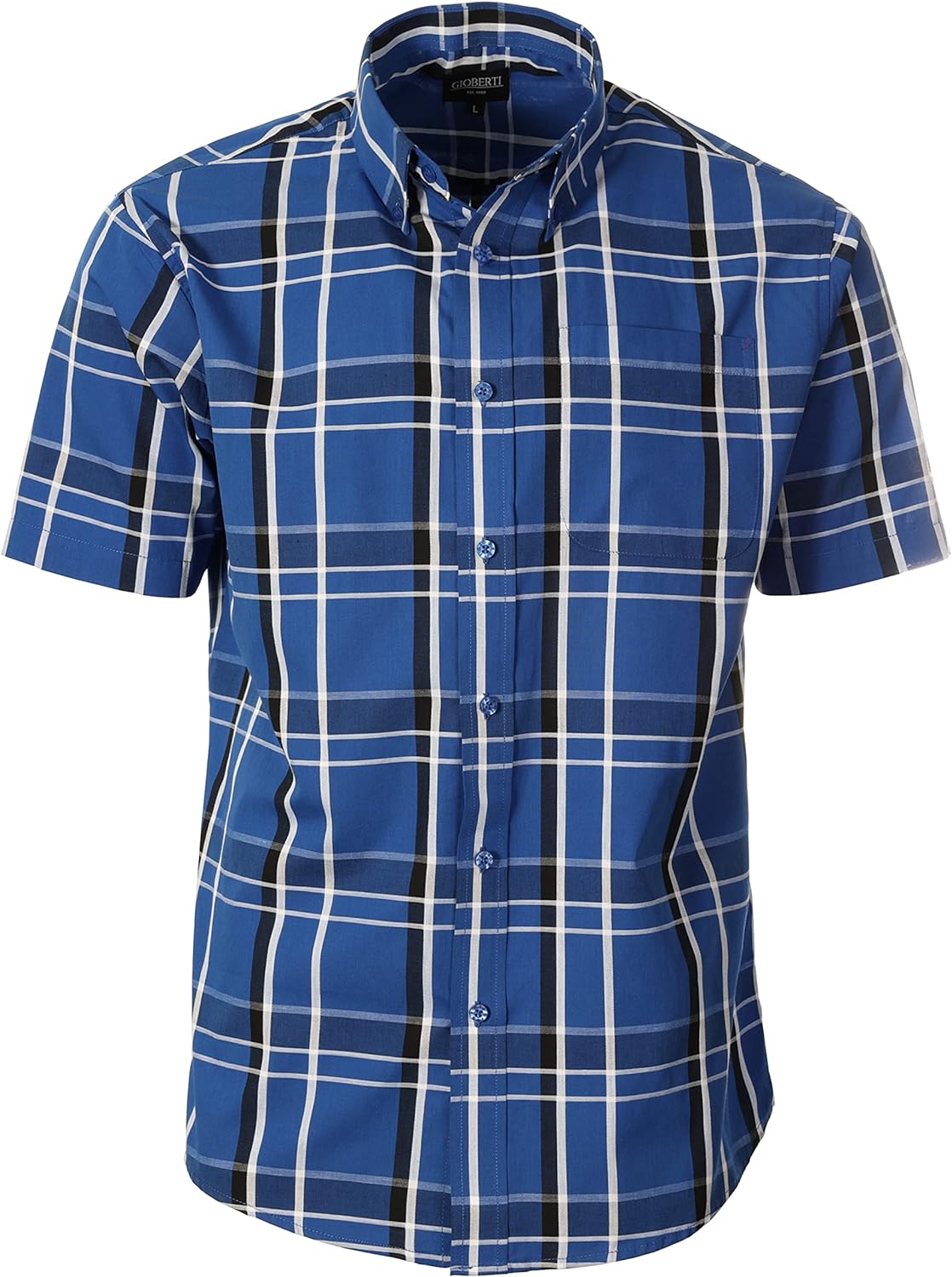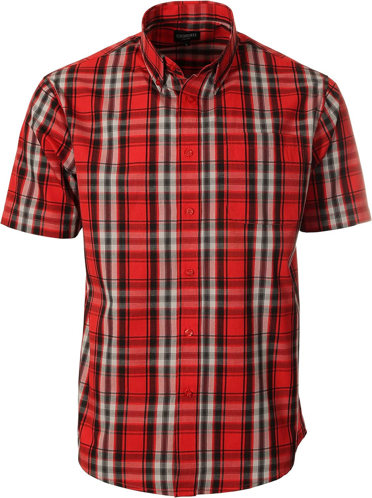 Mens Casual Button Down Dress Shirt, Short Sleeve, Plaid Checked