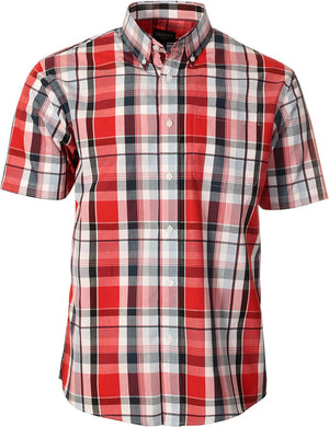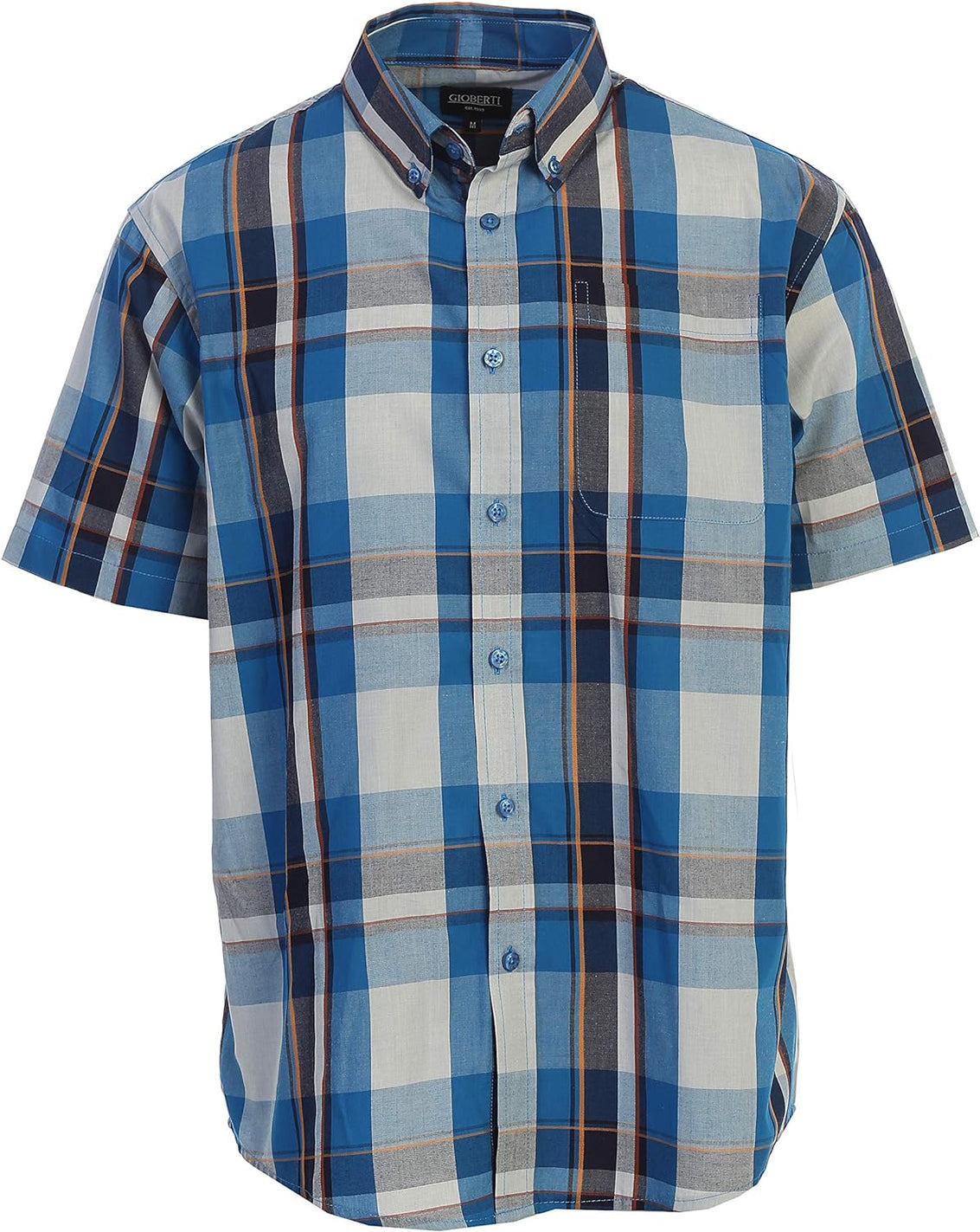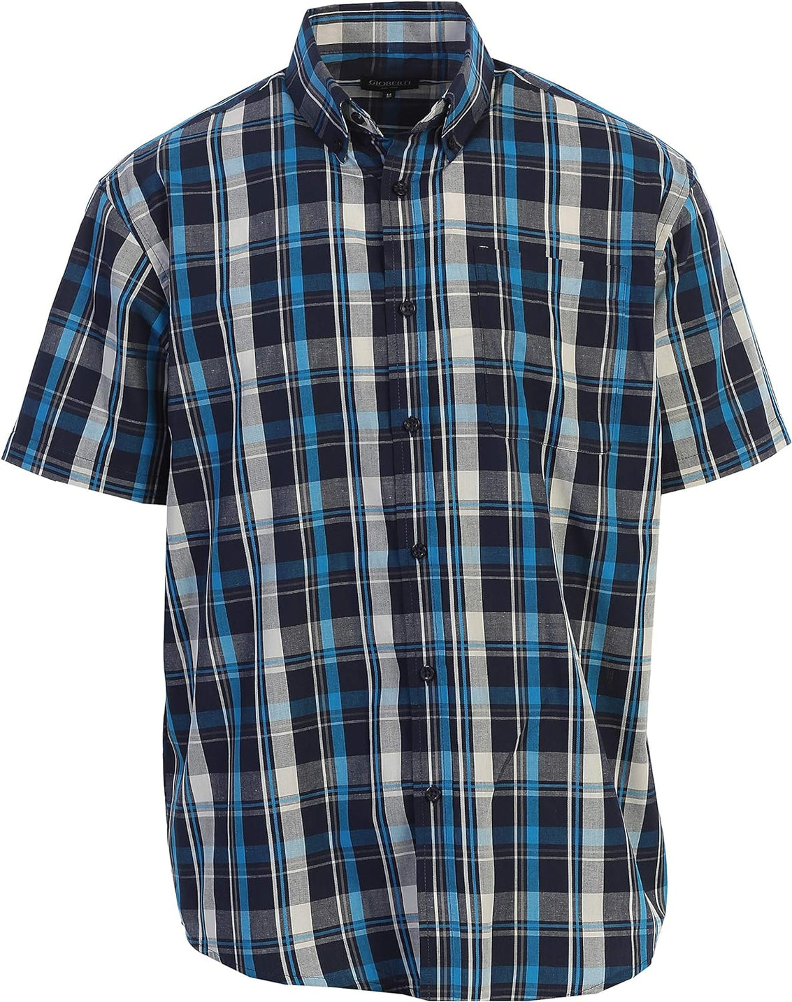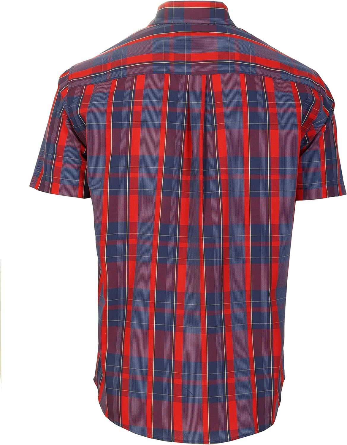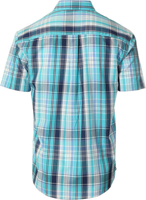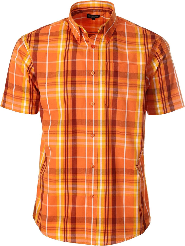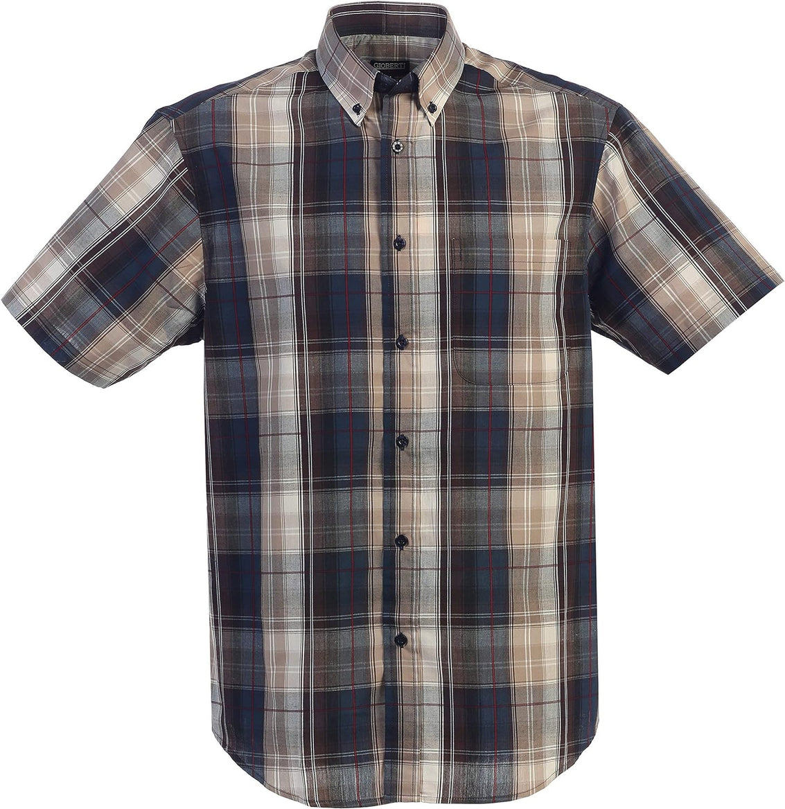 Mens Casual Button Down Dress Shirt, Short Sleeve, Plaid Checked