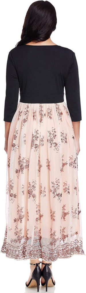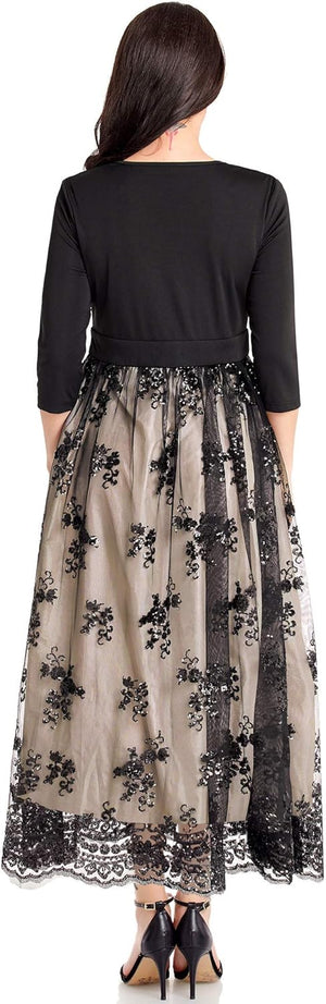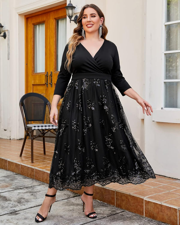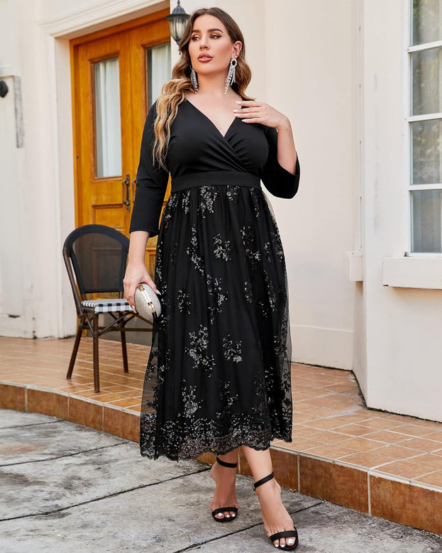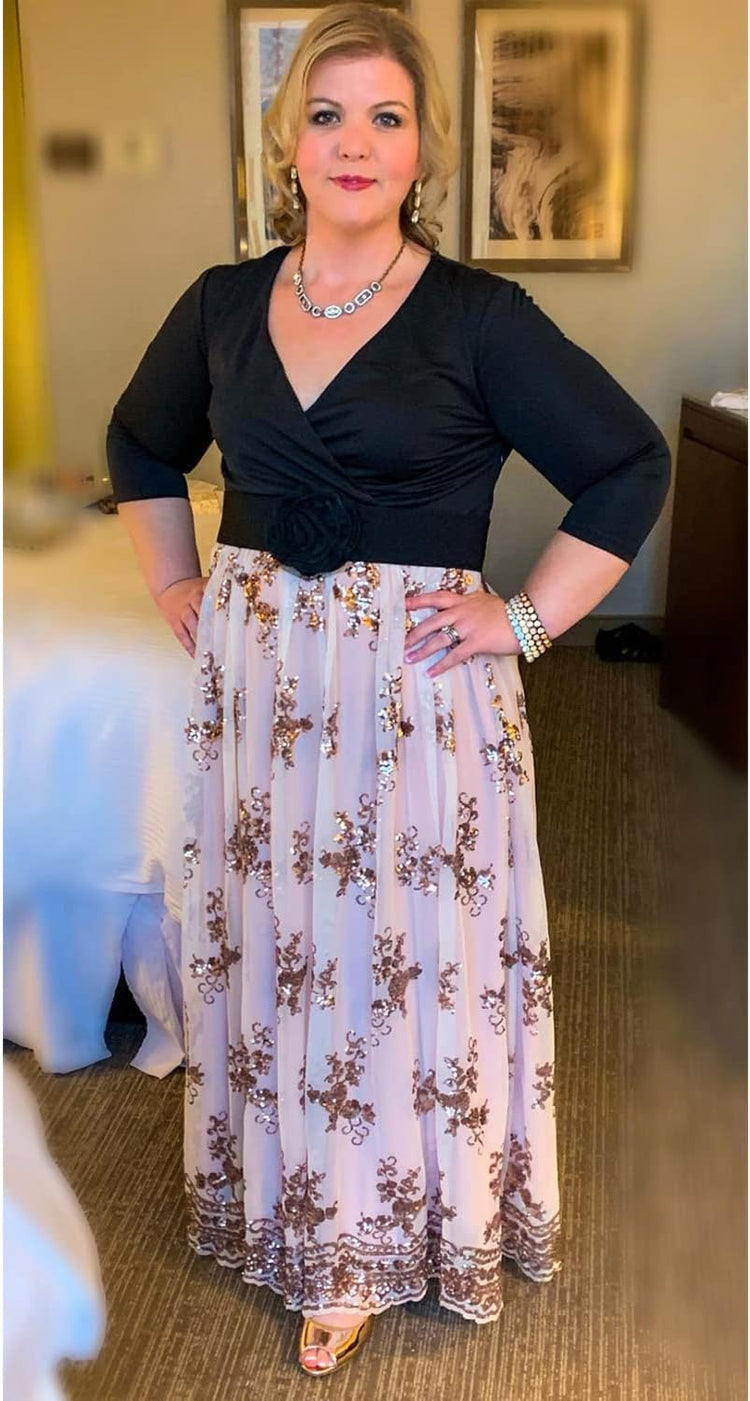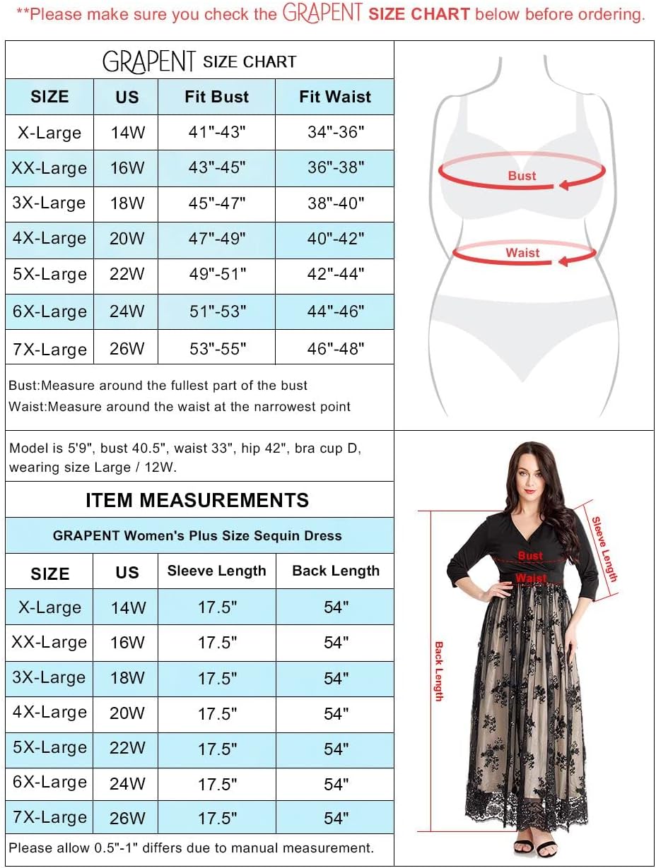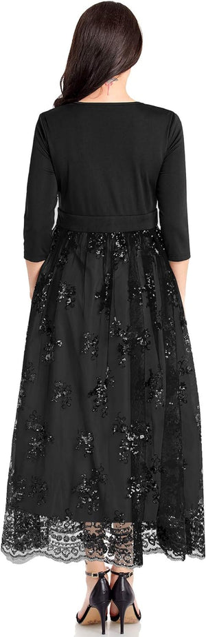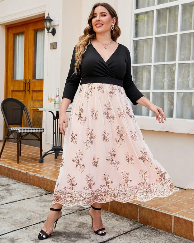 GRAPENT Women's Plus Size Sequin 3/4 Sleeves Evening Gown Party Long Maxi Dress