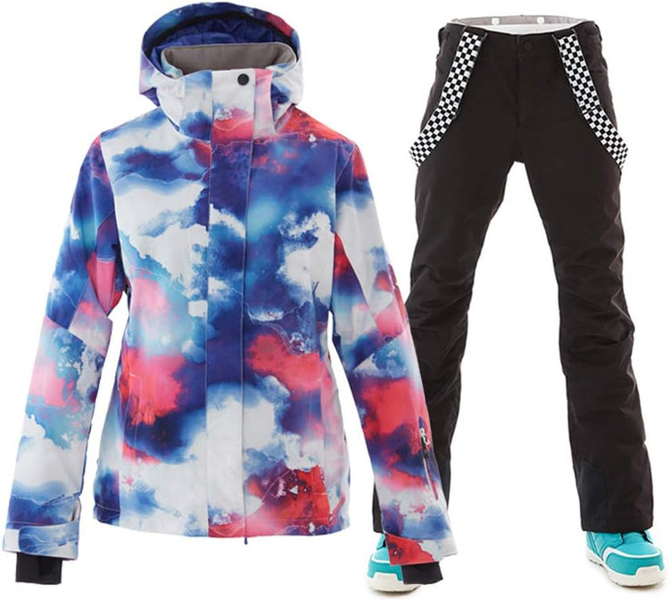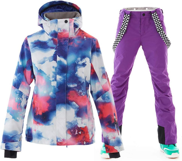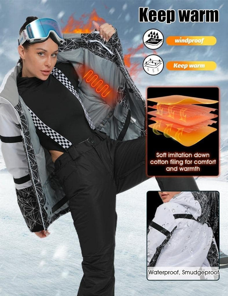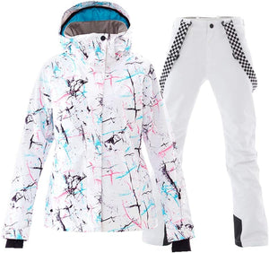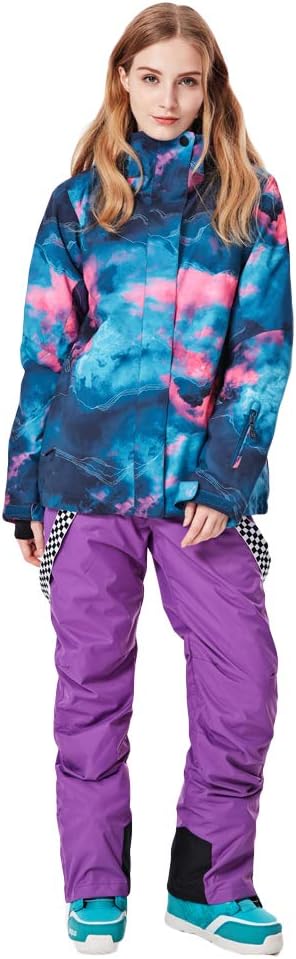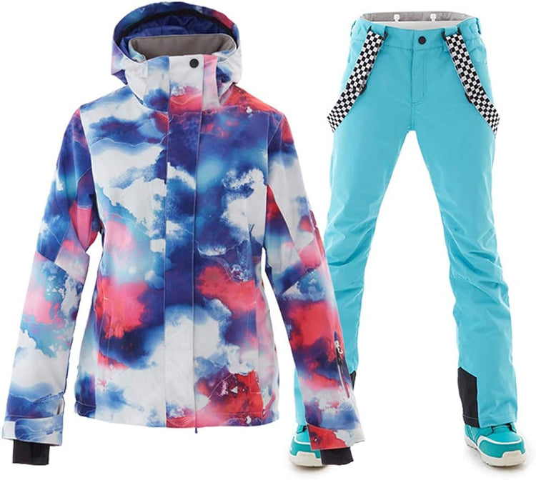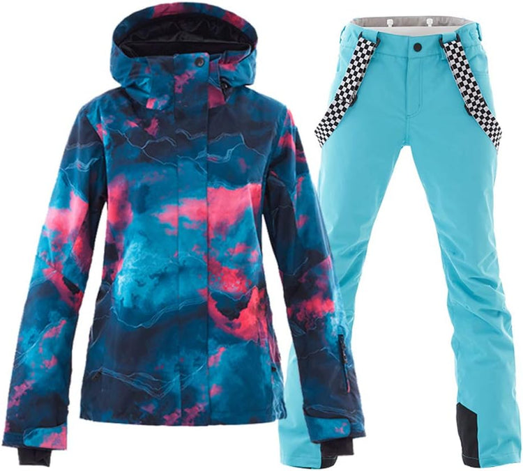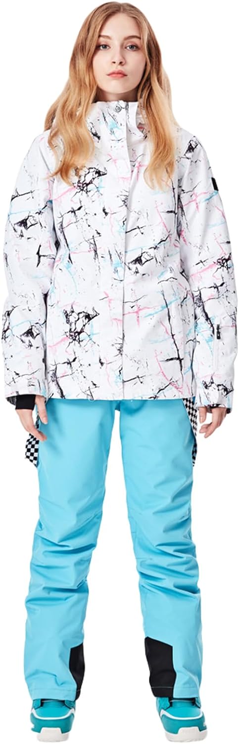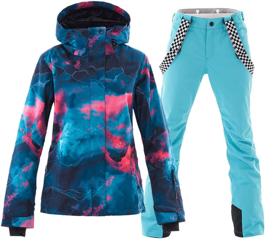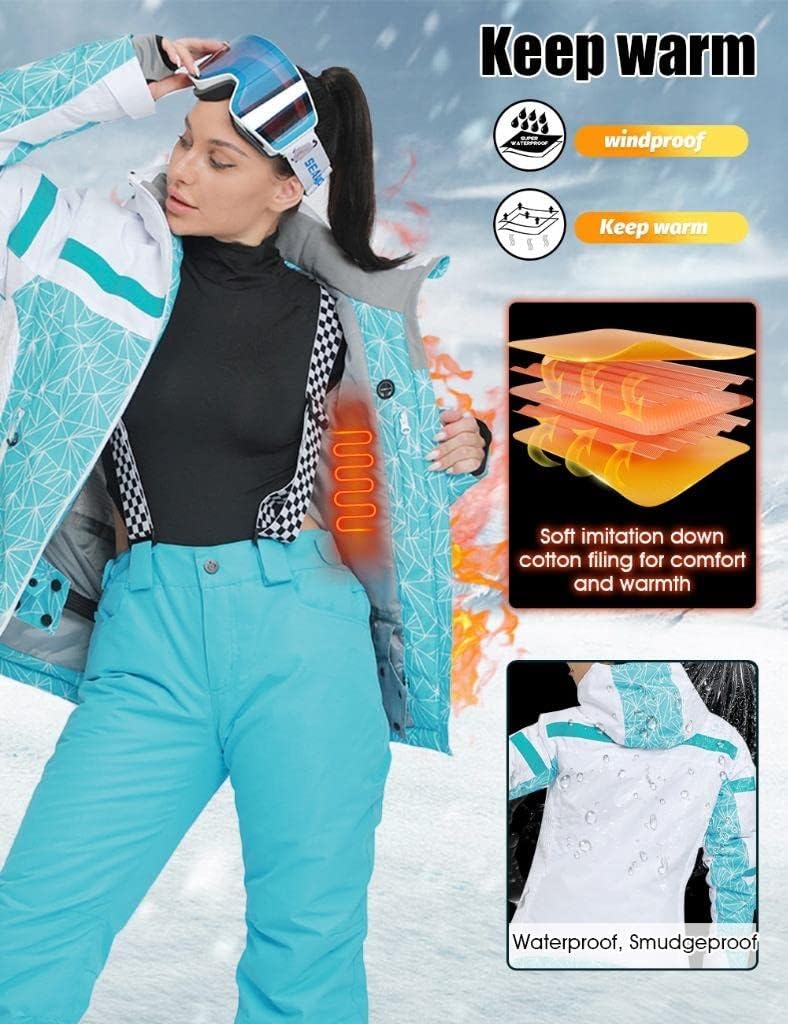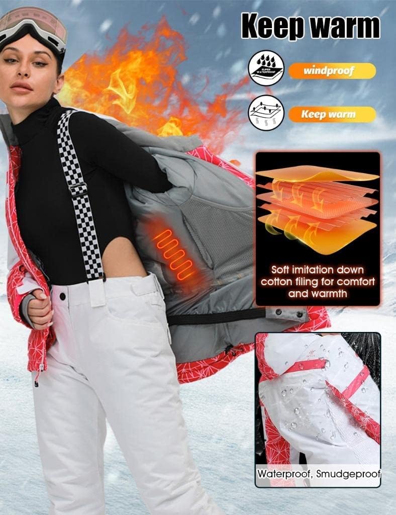 GS SNOWING Women's Ski Jackets and Pants Set Windproof Waterproof Insulated Snowsuit Winter Warm Snowboarding Snow Coat