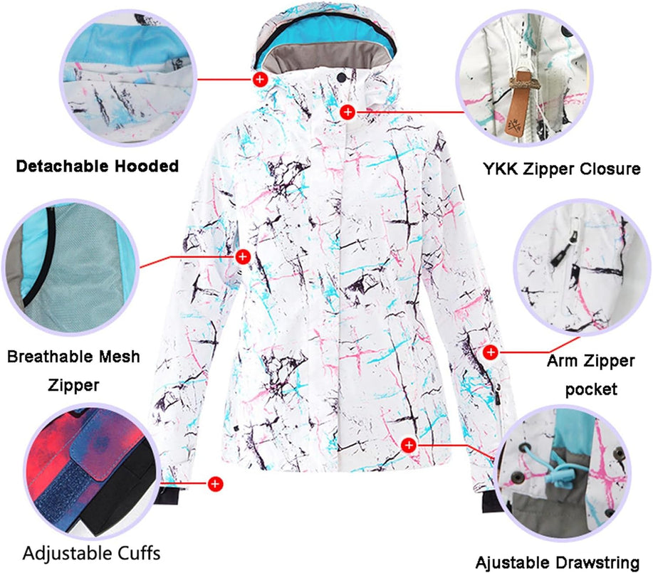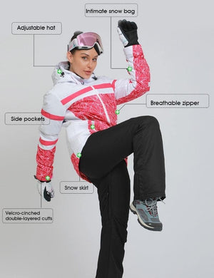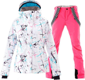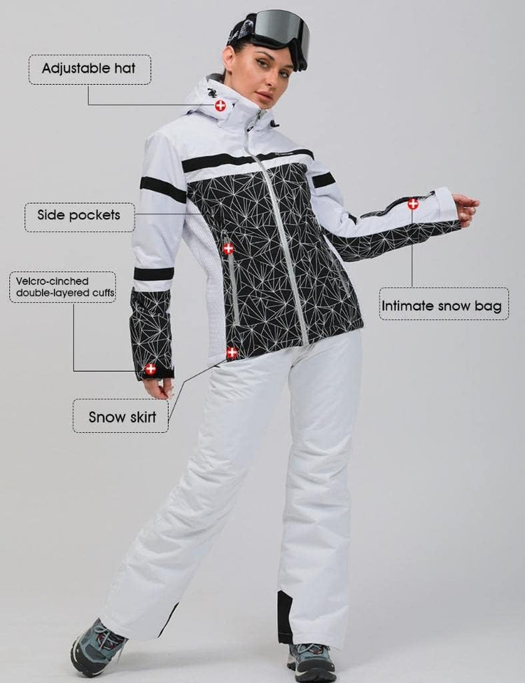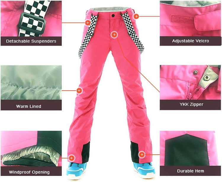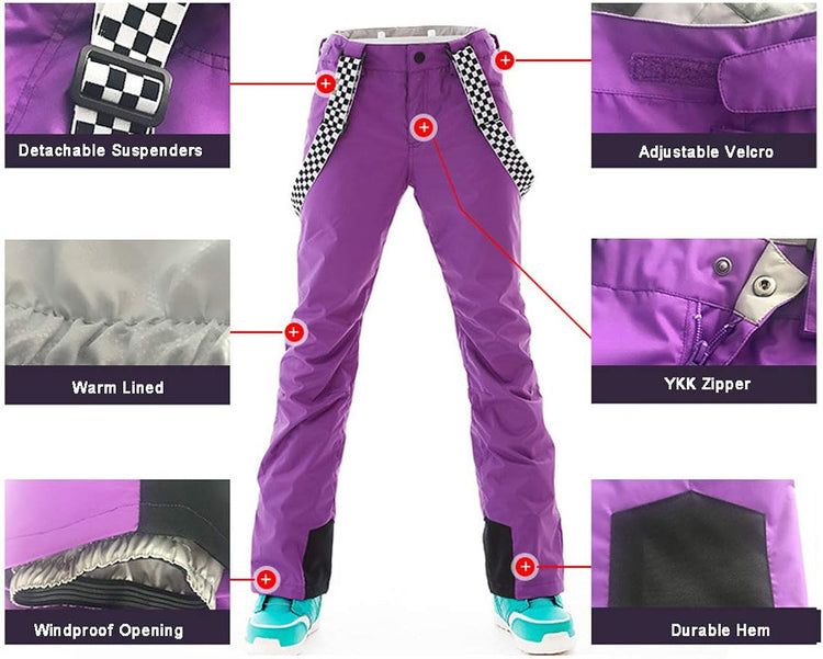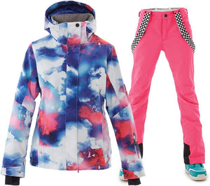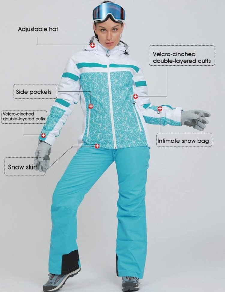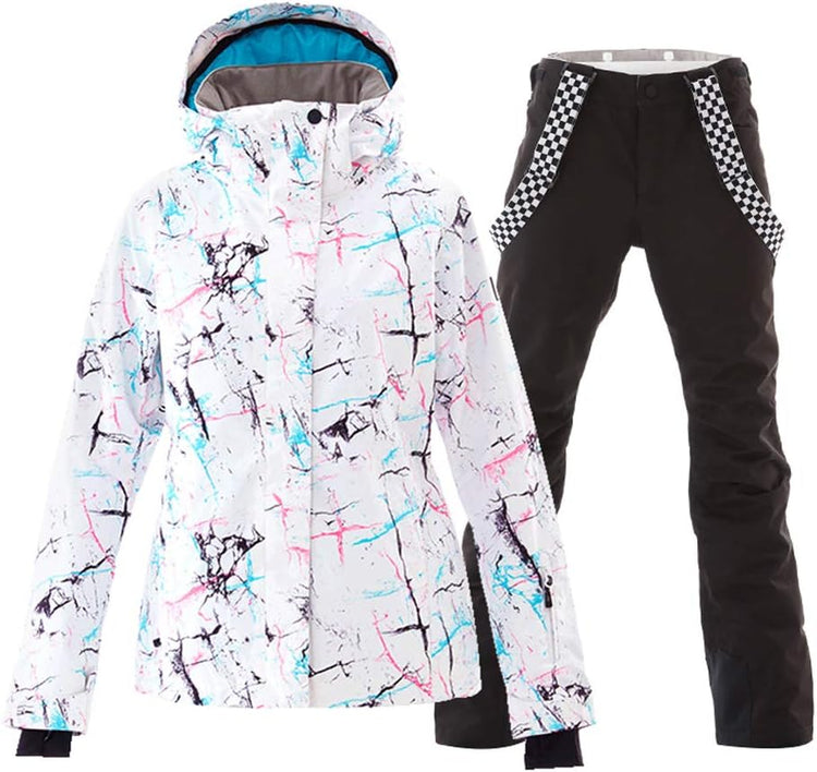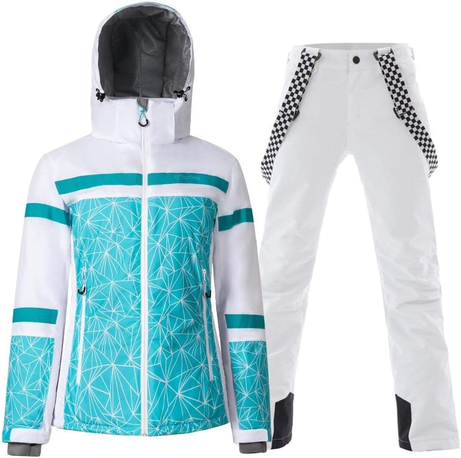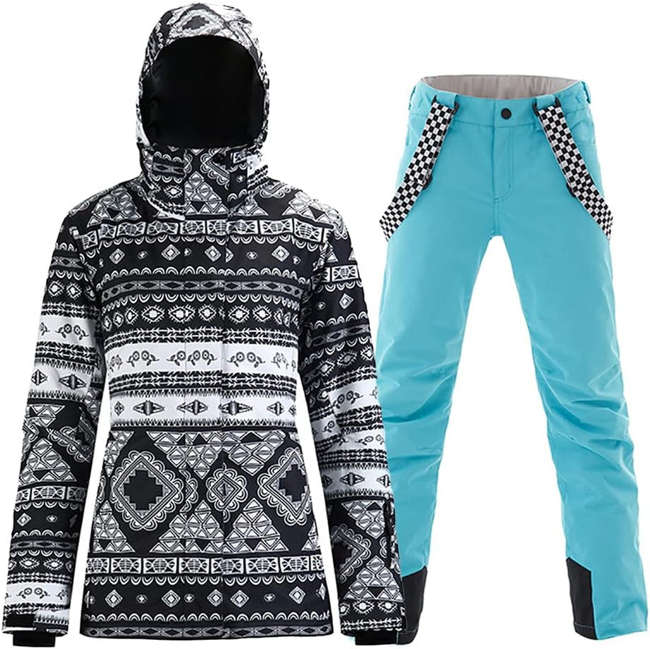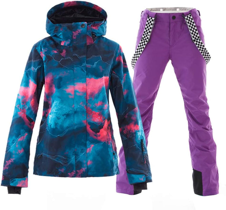 GS SNOWING Women's Ski Jackets and Pants Set Windproof Waterproof Insulated Snowsuit Winter Warm Snowboarding Snow Coat