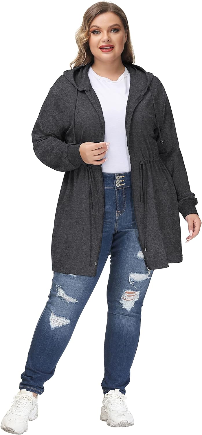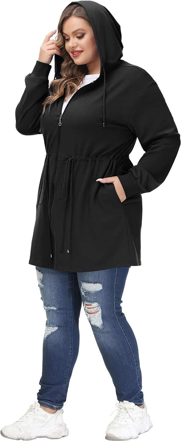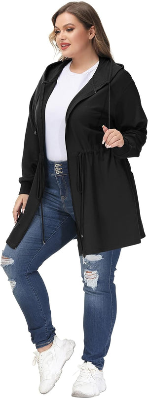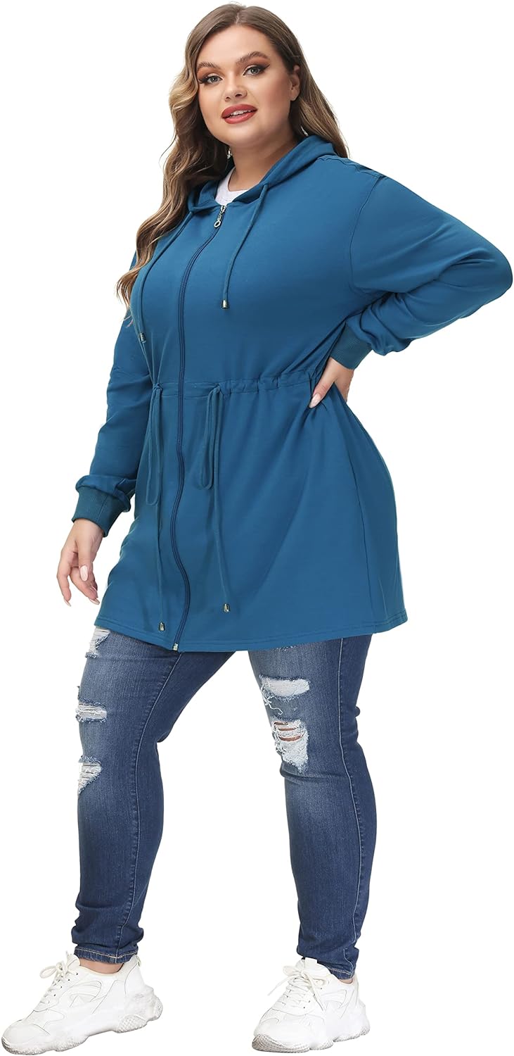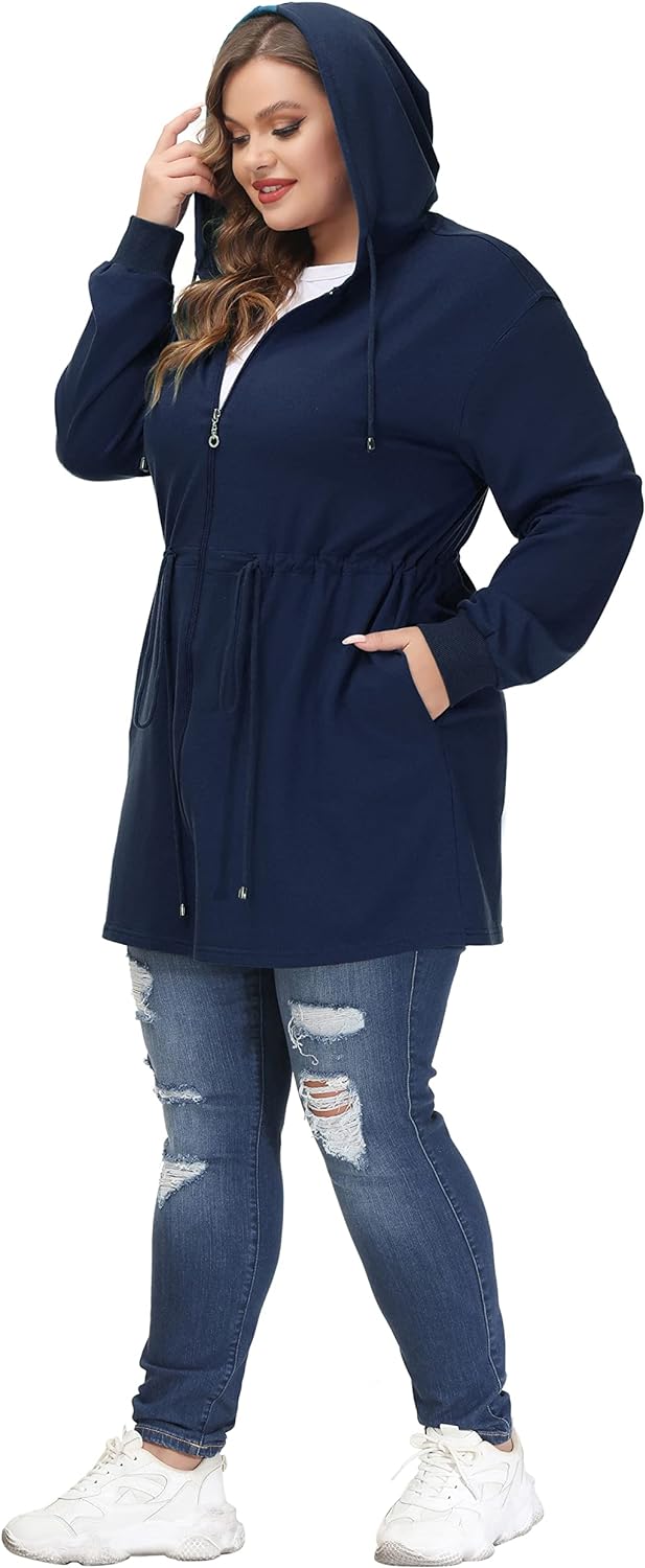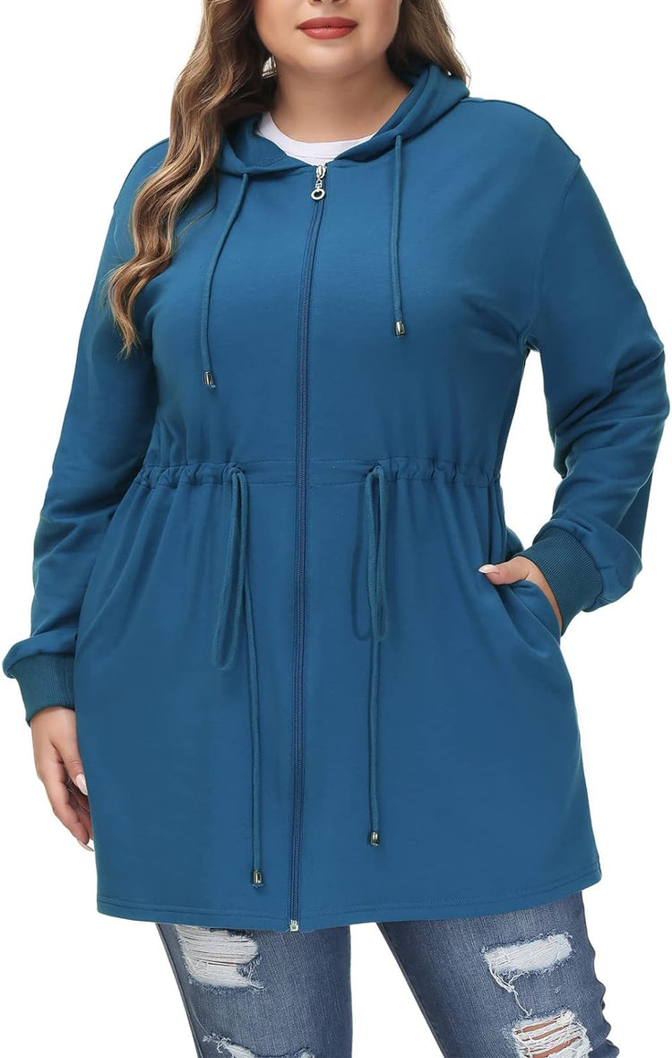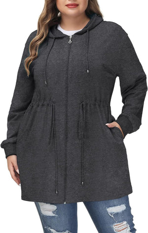 Hanna Nikole Plus Size Hoodies for Women Zip Up Casual Drawstring Sweatshirt with pockets