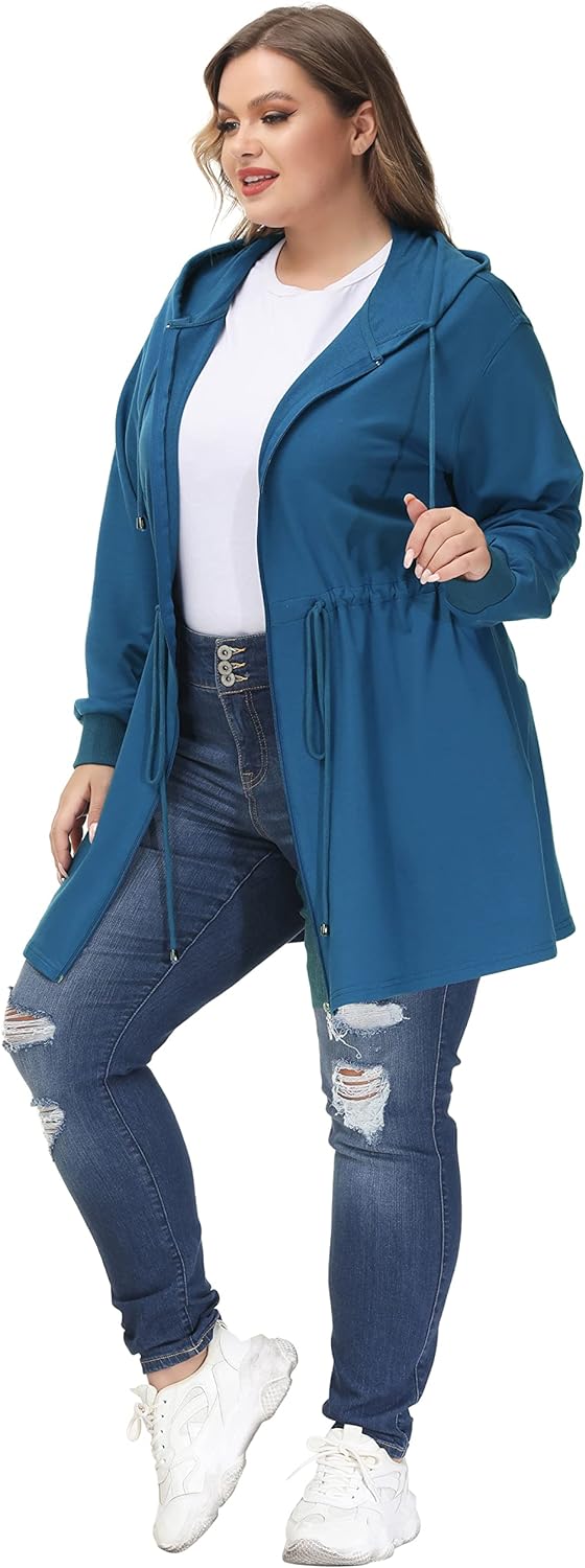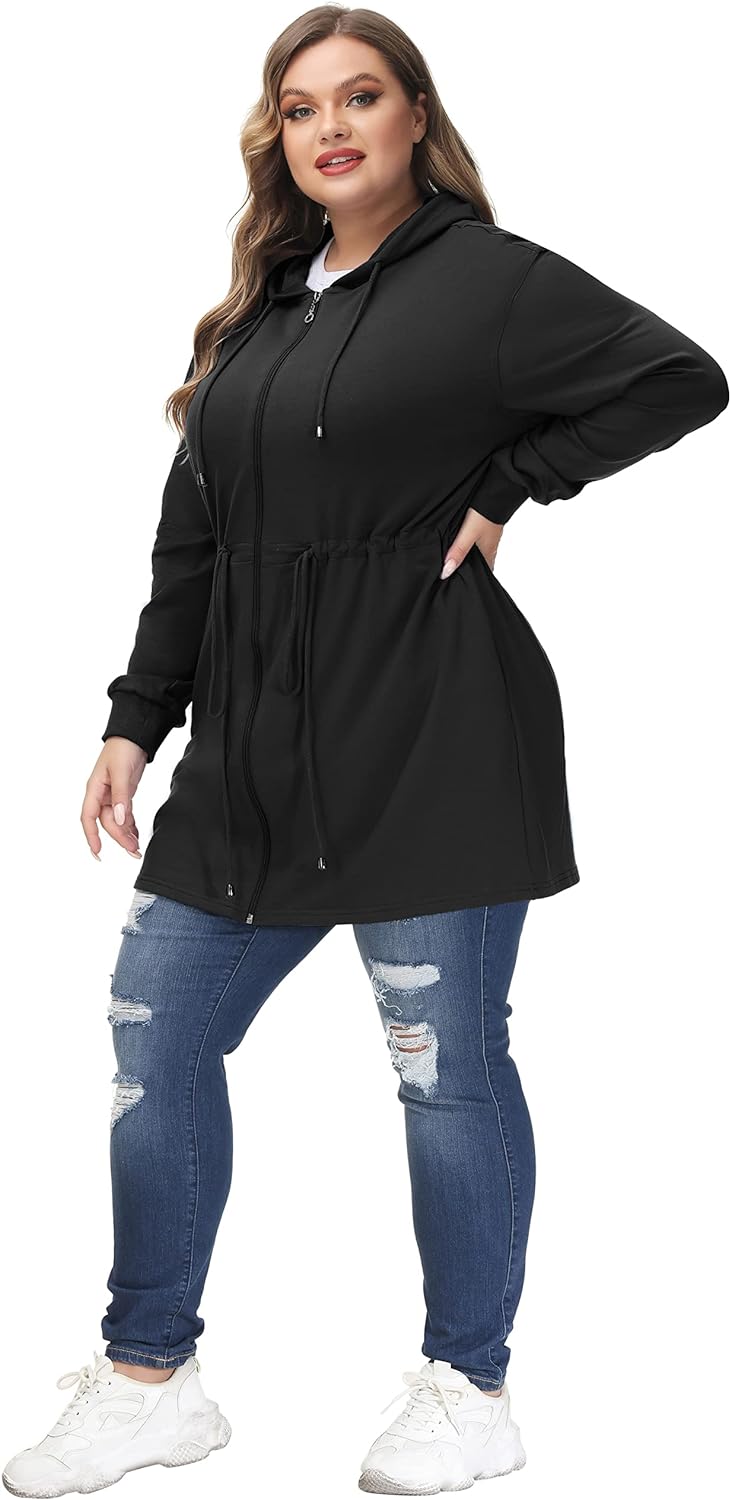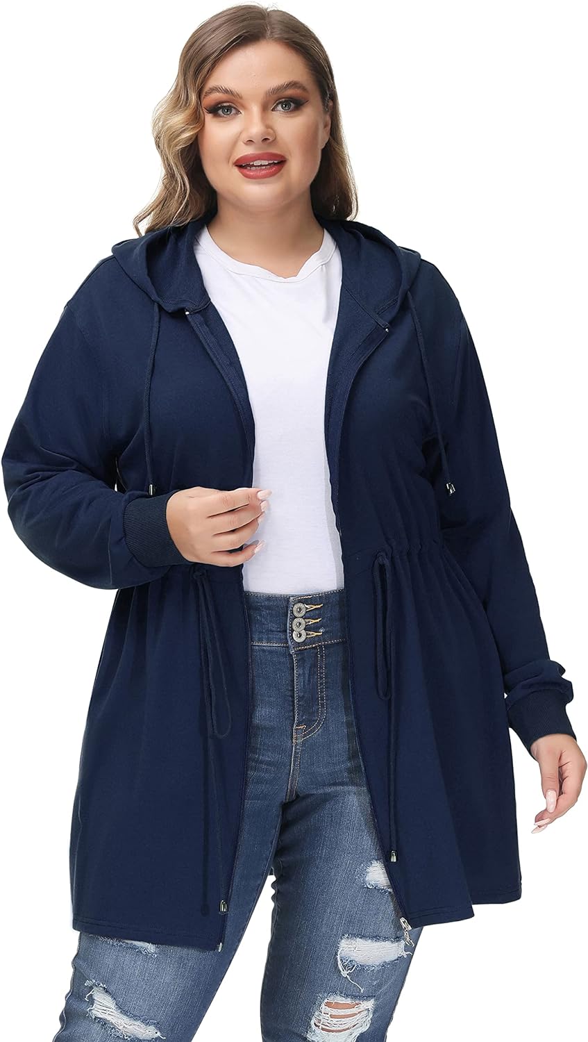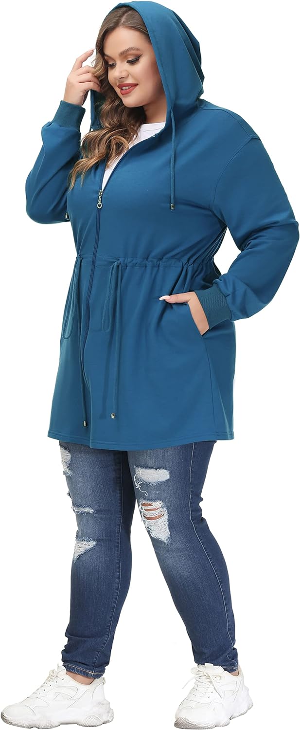 Hanna Nikole Plus Size Hoodies for Women Zip Up Casual Drawstring Sweatshirt with pockets