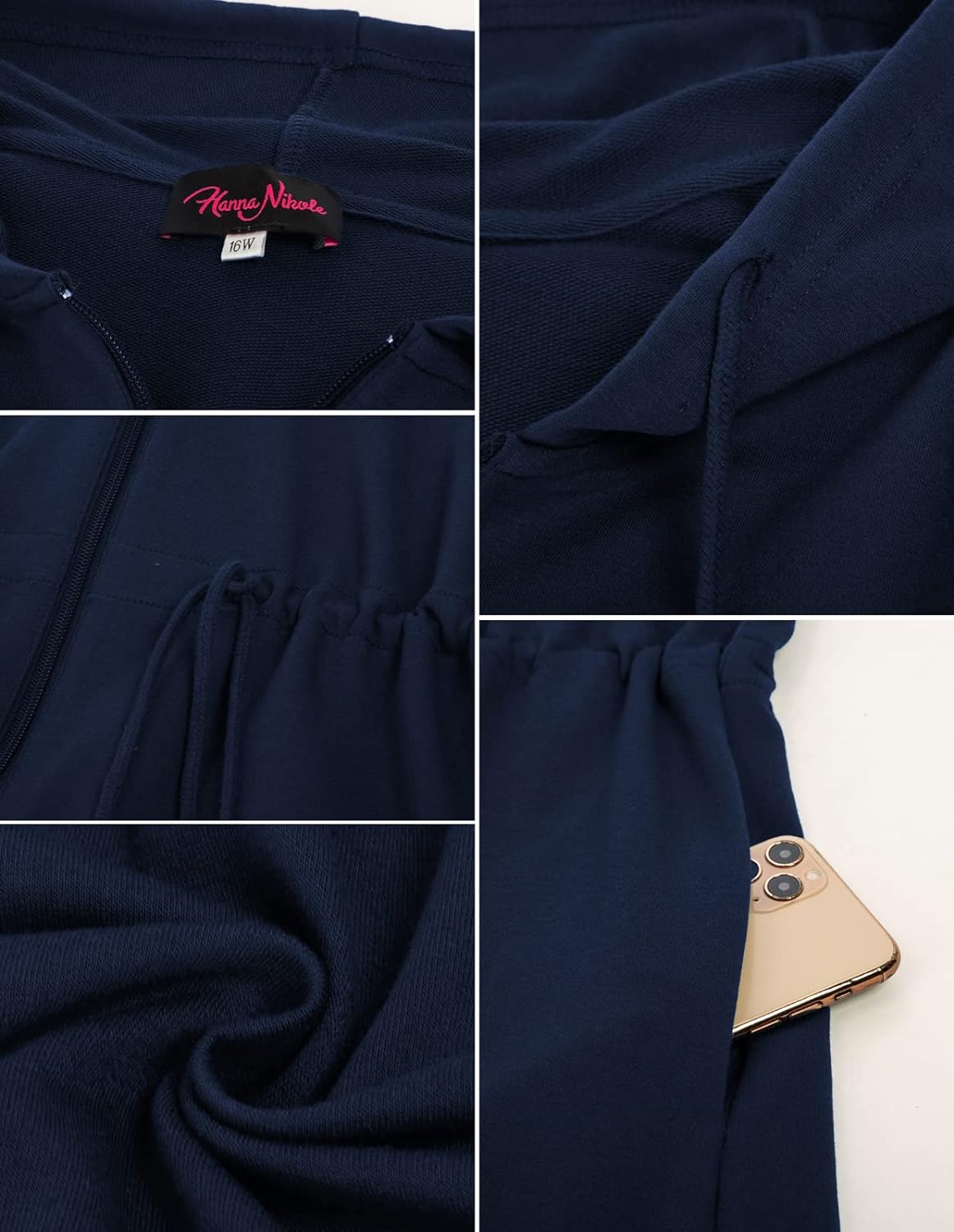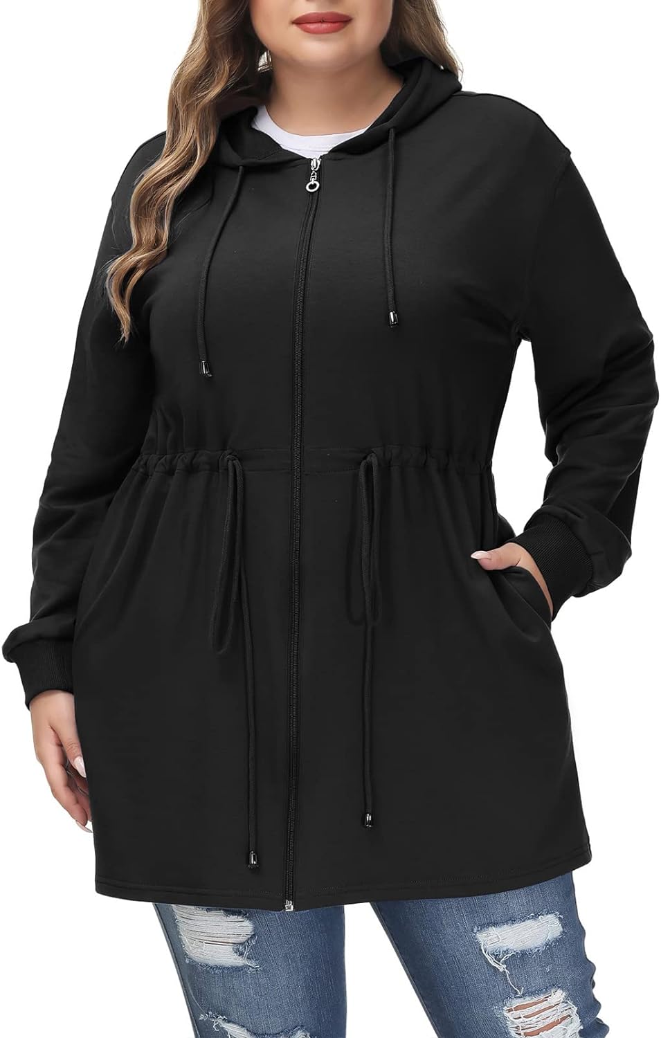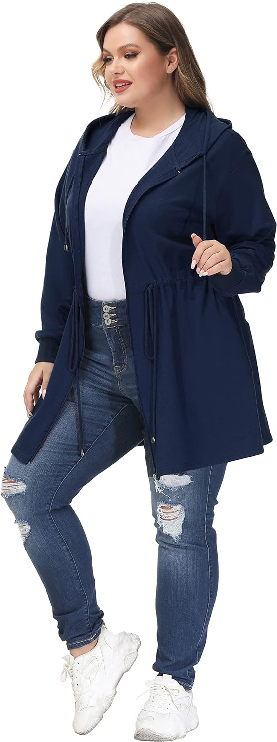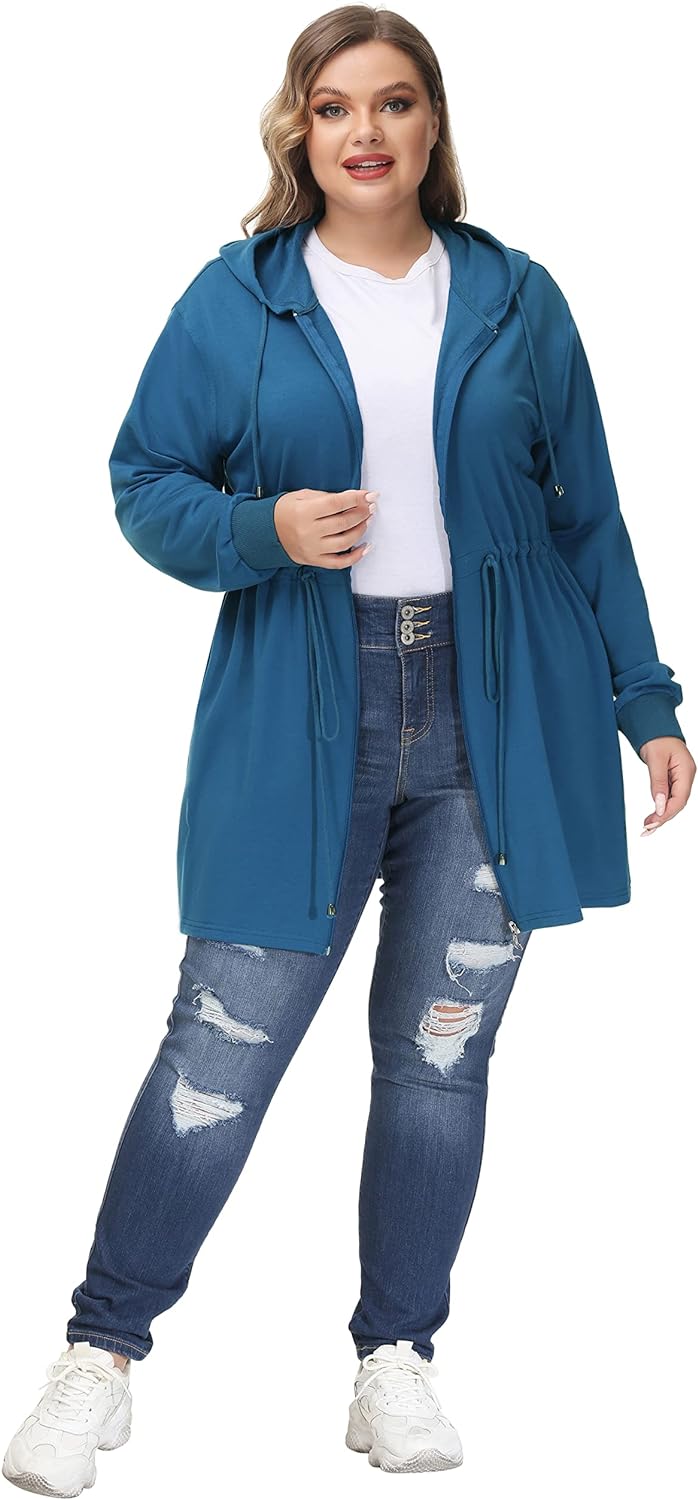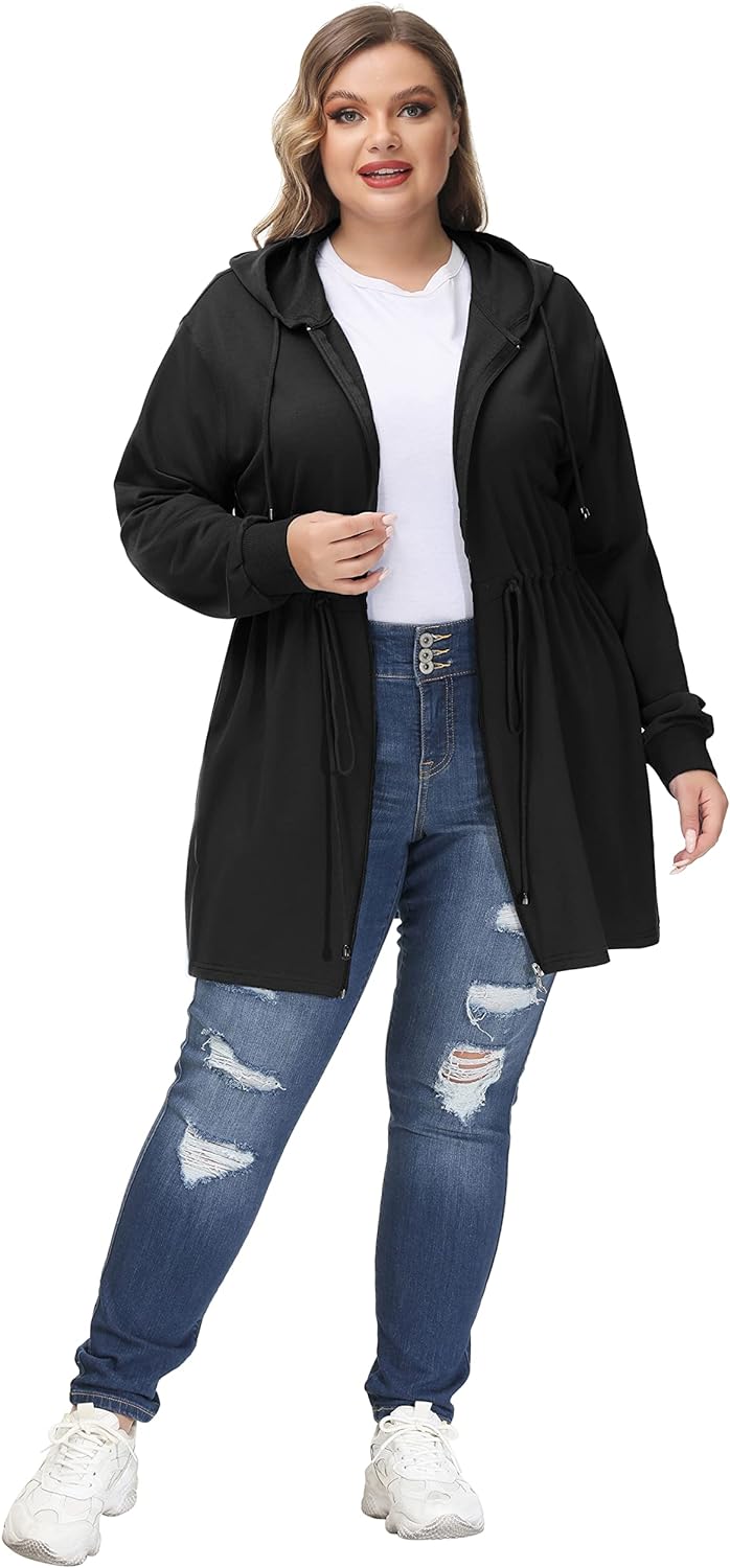 Hanna Nikole Plus Size Hoodies for Women Zip Up Casual Drawstring Sweatshirt with pockets