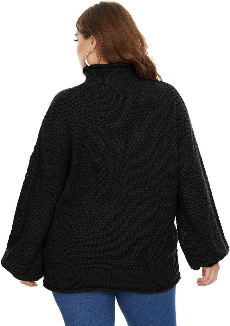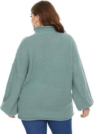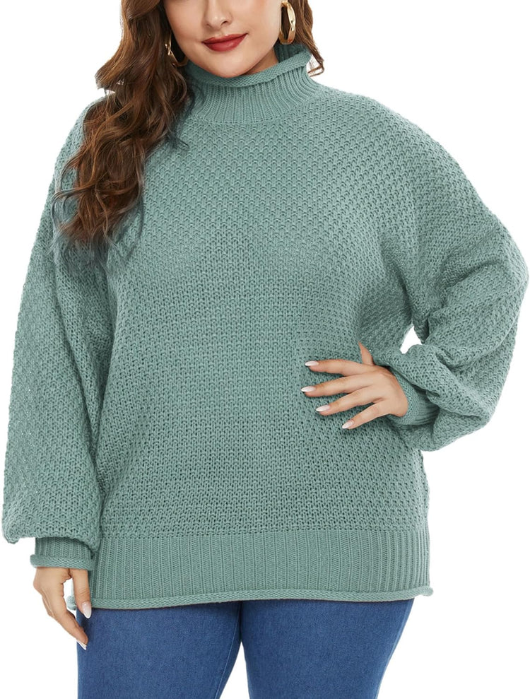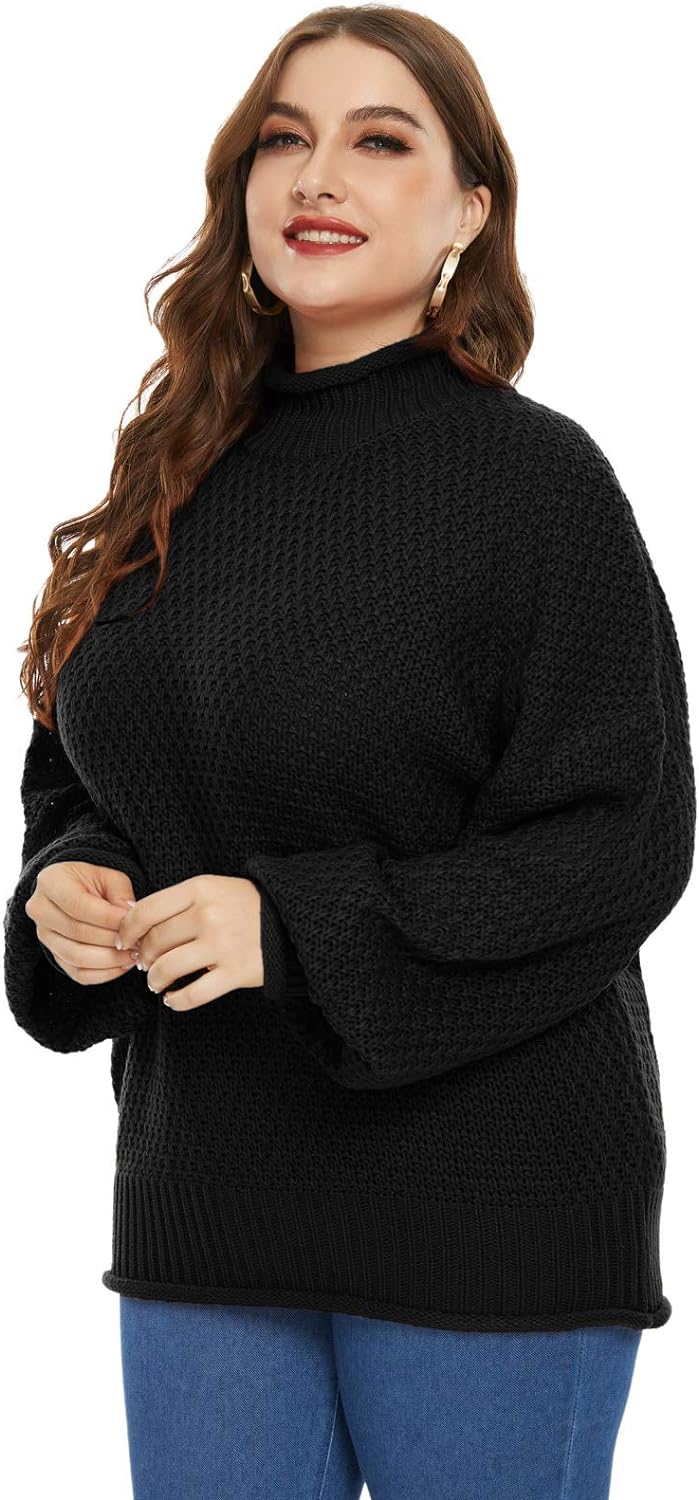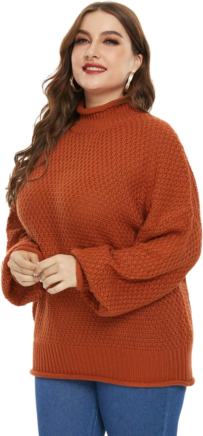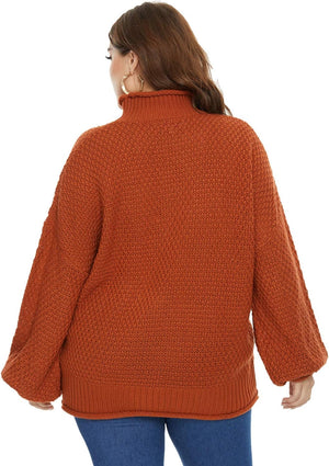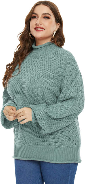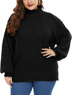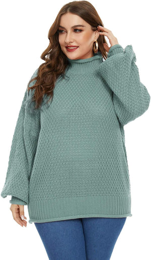 Women Plus Size High Neck Sweater Dropped Shoulders Pullover Knitwear