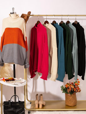 Hanna Nikole Women Turtleneck Oversized Sweaters Batwing Sleeve Pullover Loose Chunky Knit Jumper