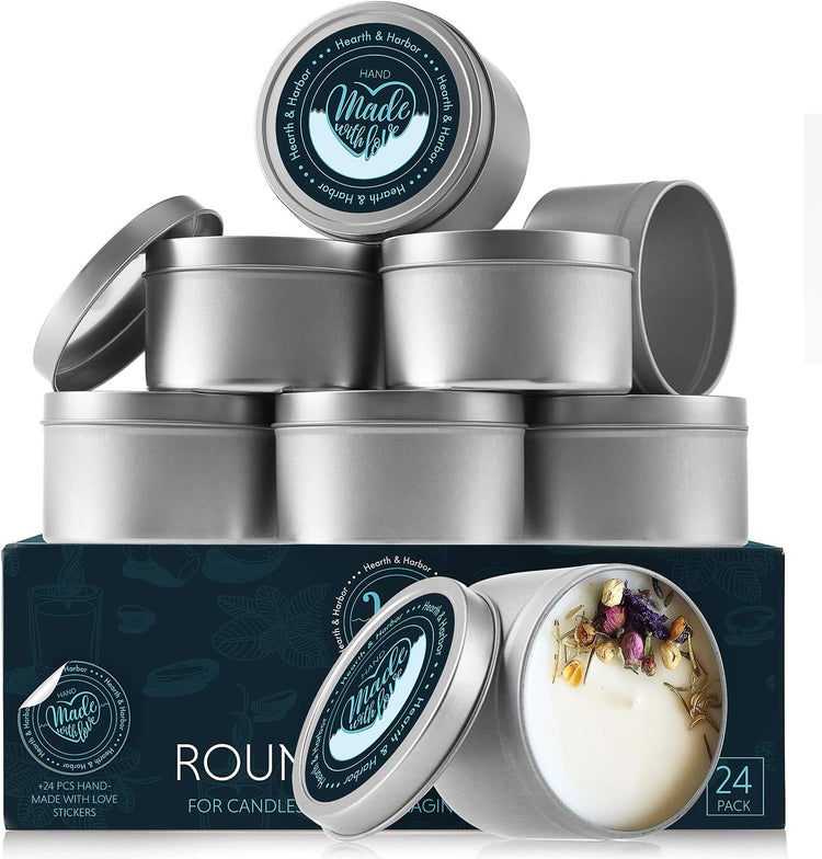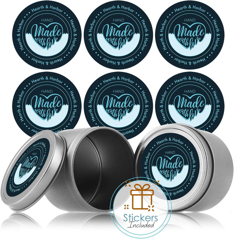 Hearth & Harbor Tin Candle Jars for Making Candles - DIY Candle Containers with Lids - Metal Candle Jars - Bulk Tins Storage for Candle - (12 Pieces) - (8 Ounces) - Stainless Steel