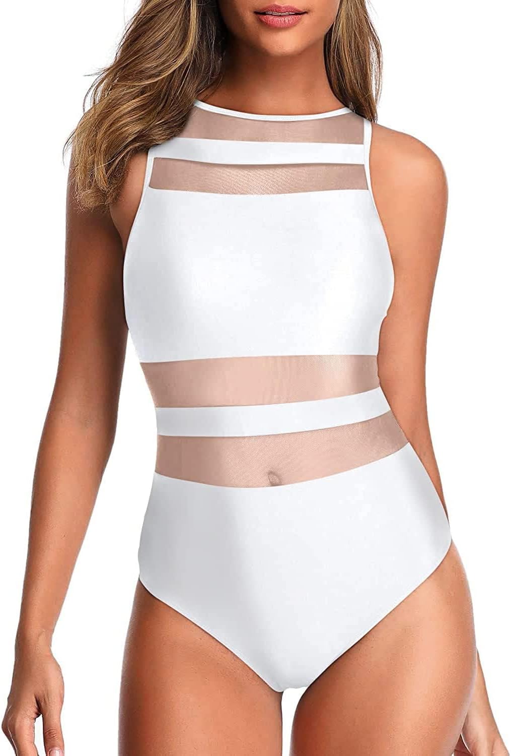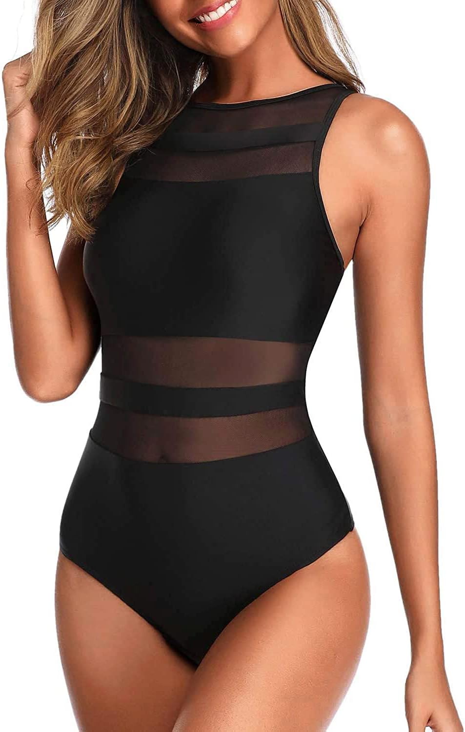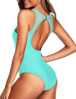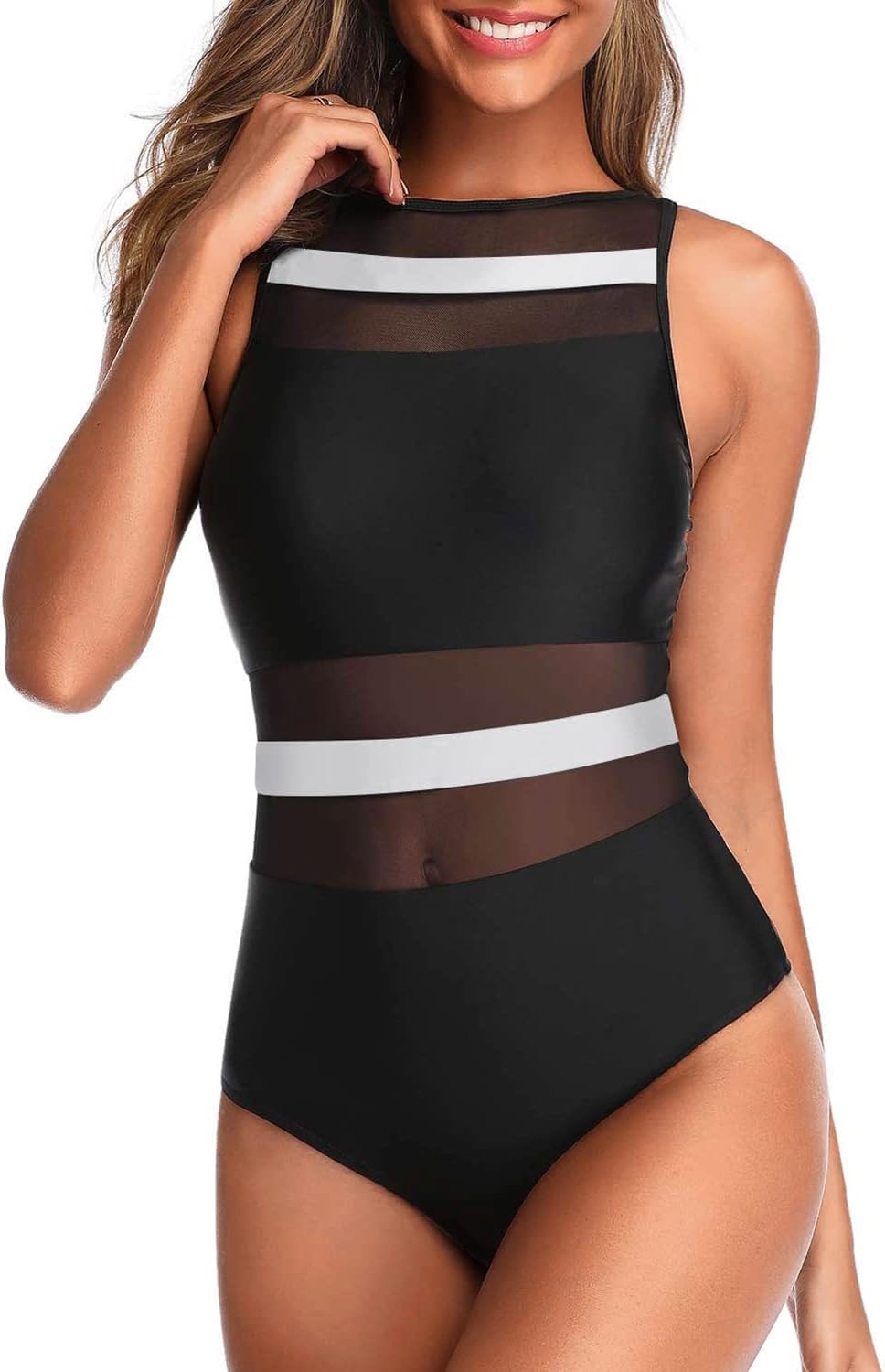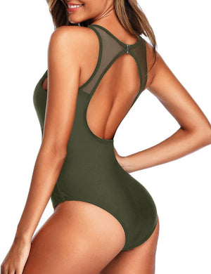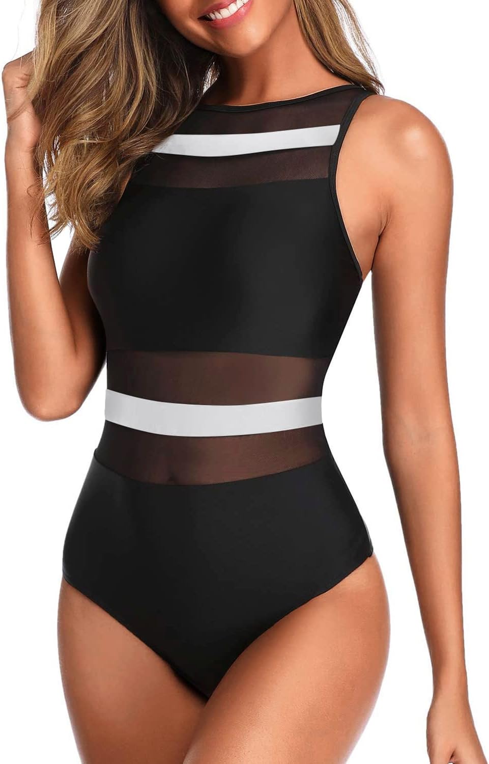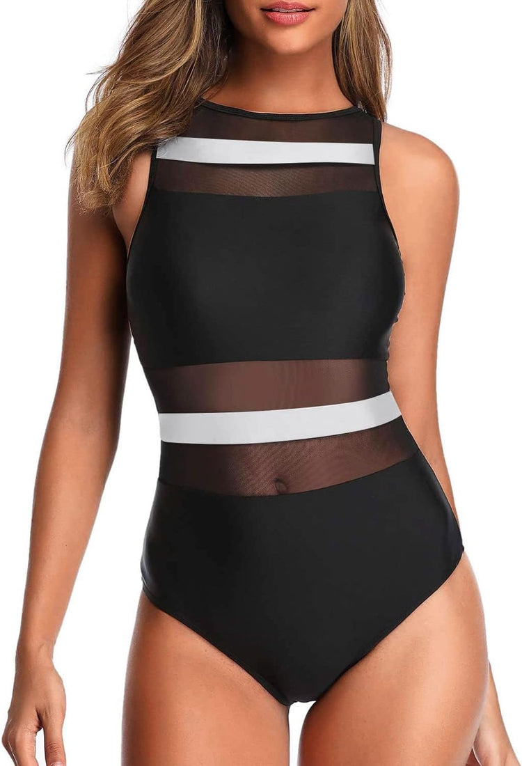 Holipick Women High Neck One Piece Swimsuits for Women Mesh Bathing Suits Open Back Swimwear