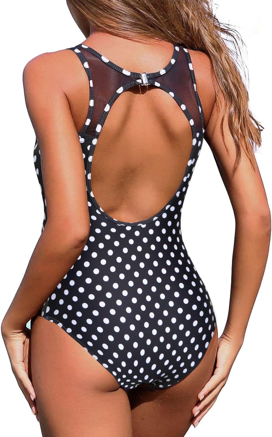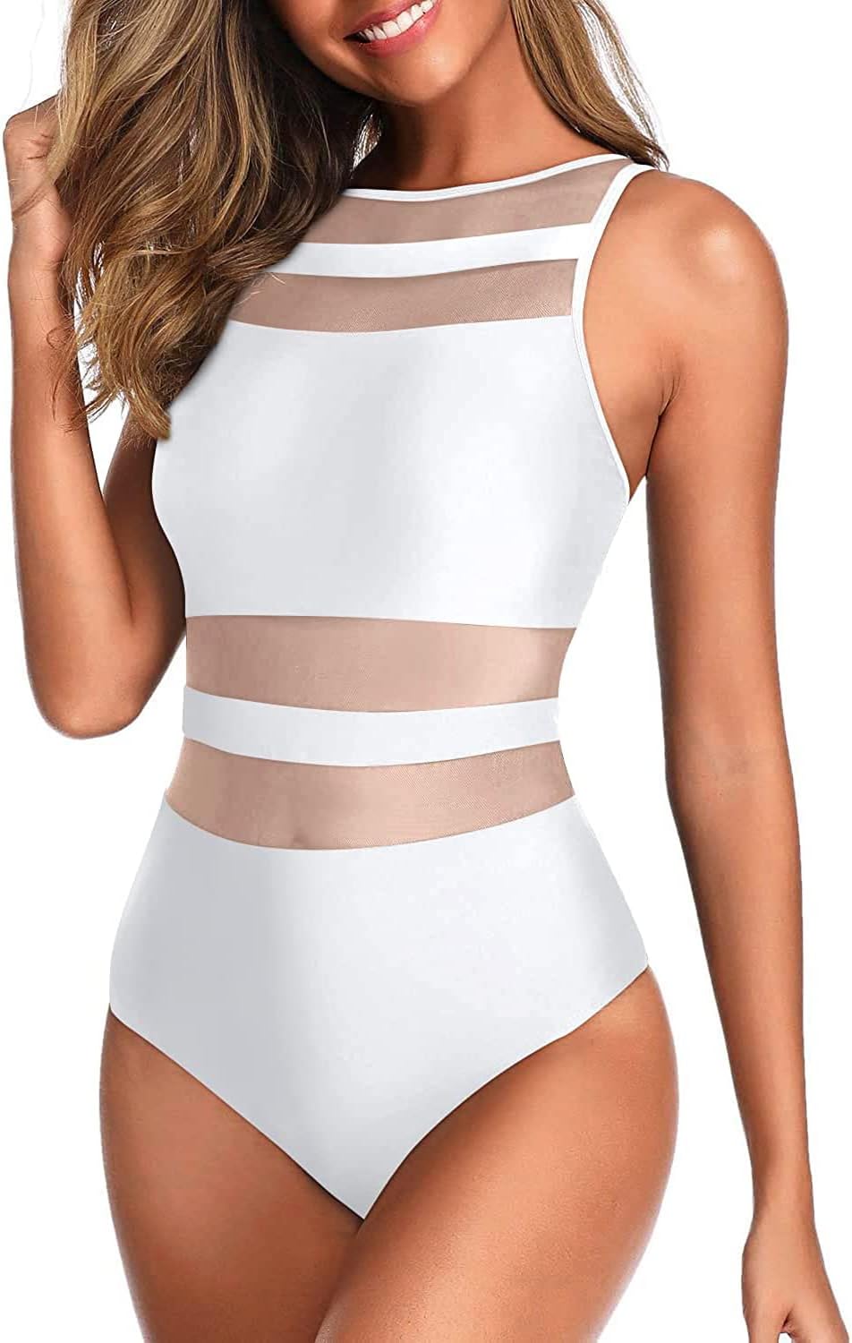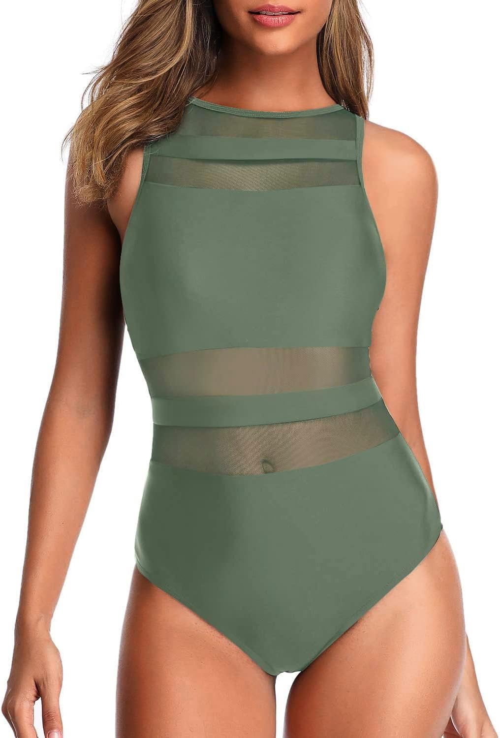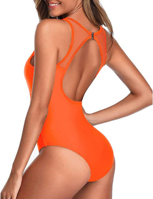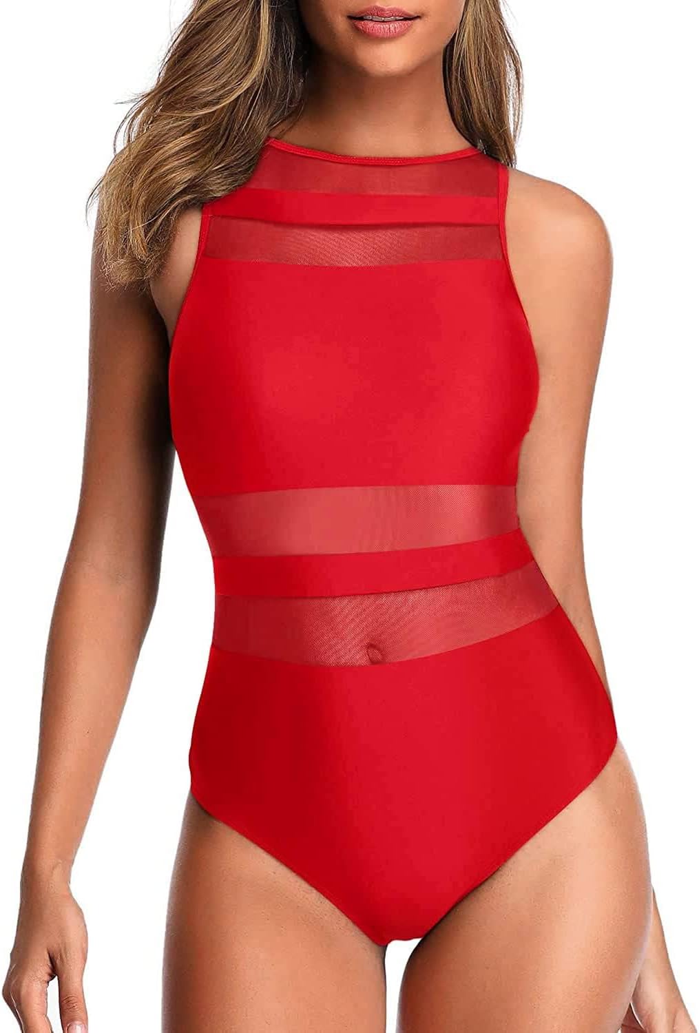Holipick Women High Neck One Piece Swimsuits for Women Mesh Bathing Suits Open Back Swimwear