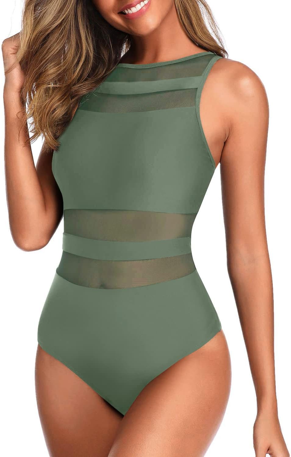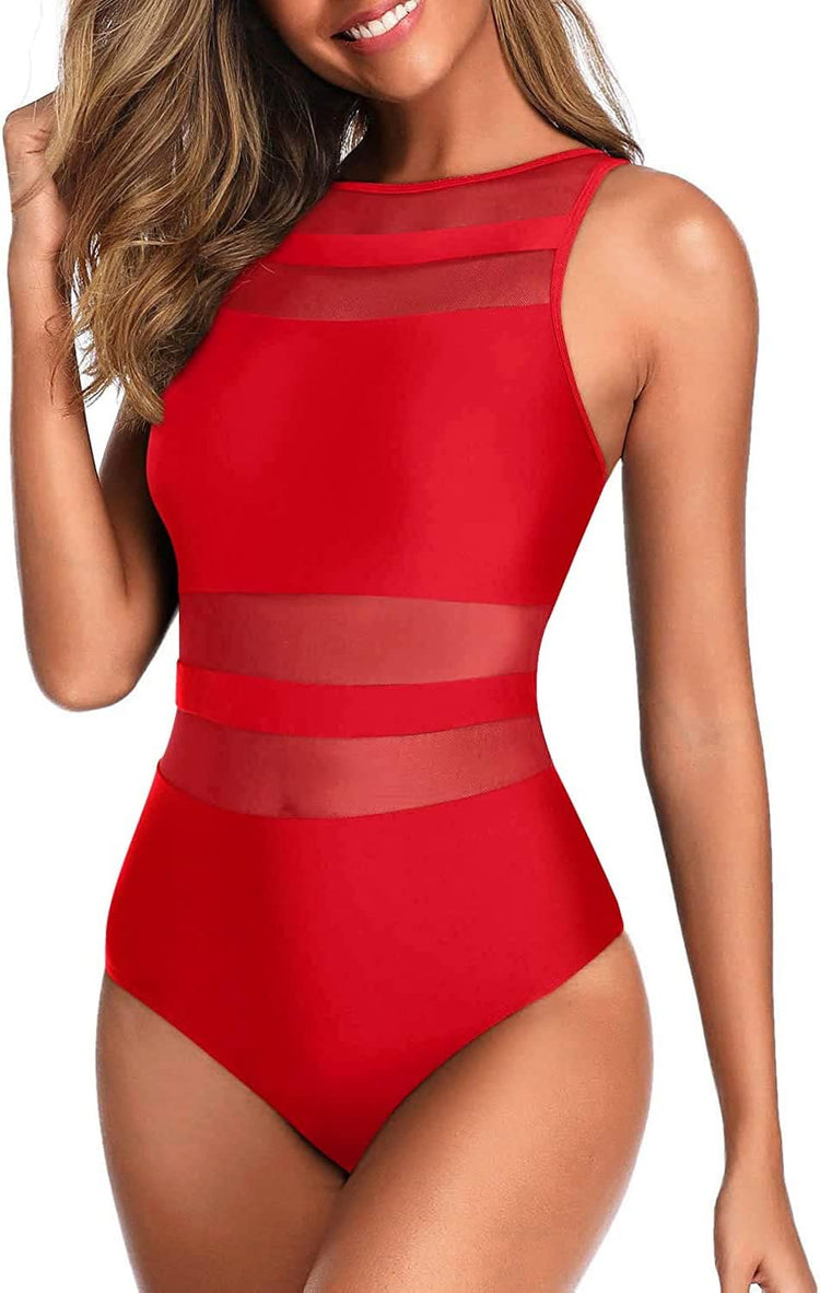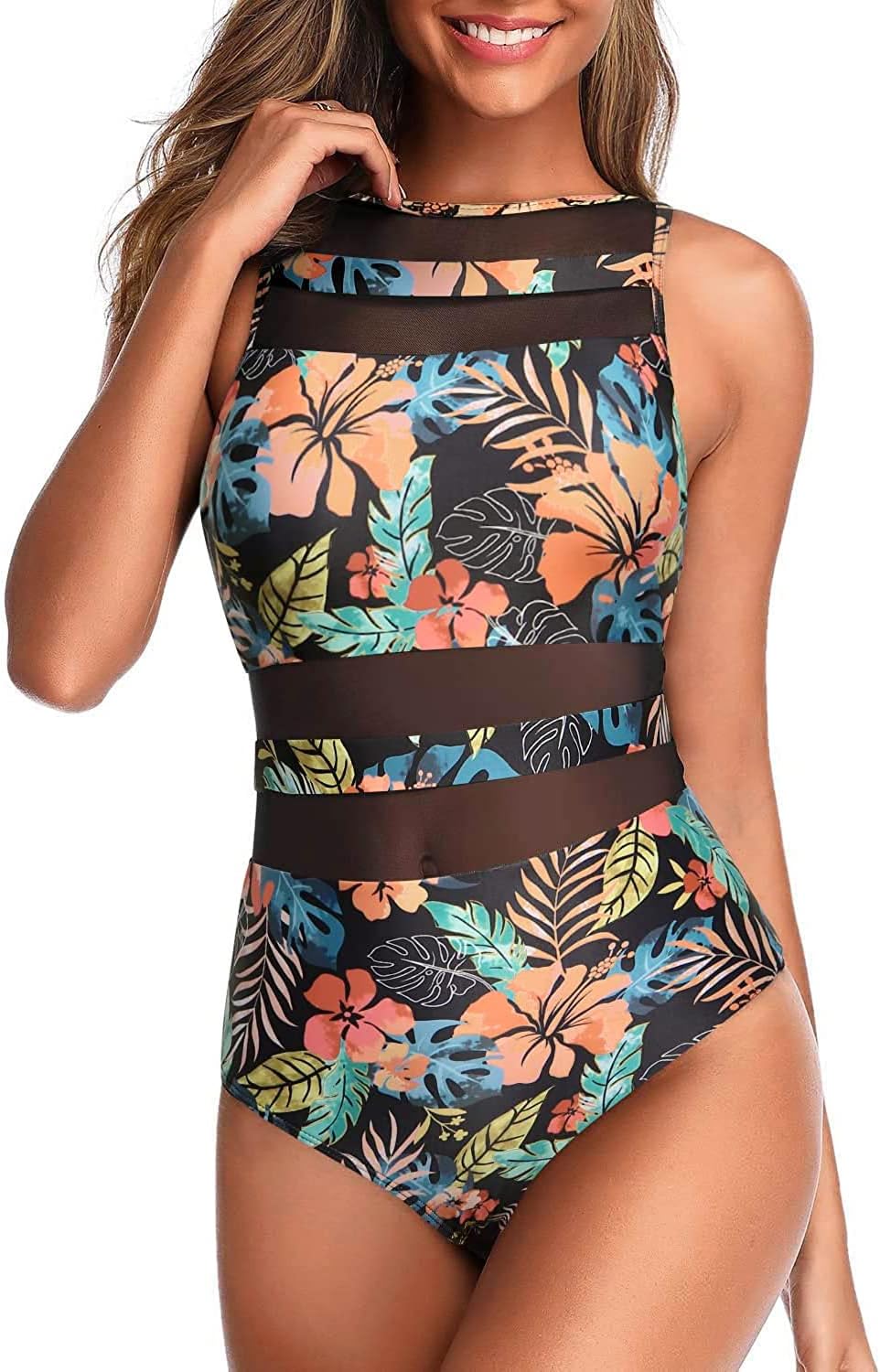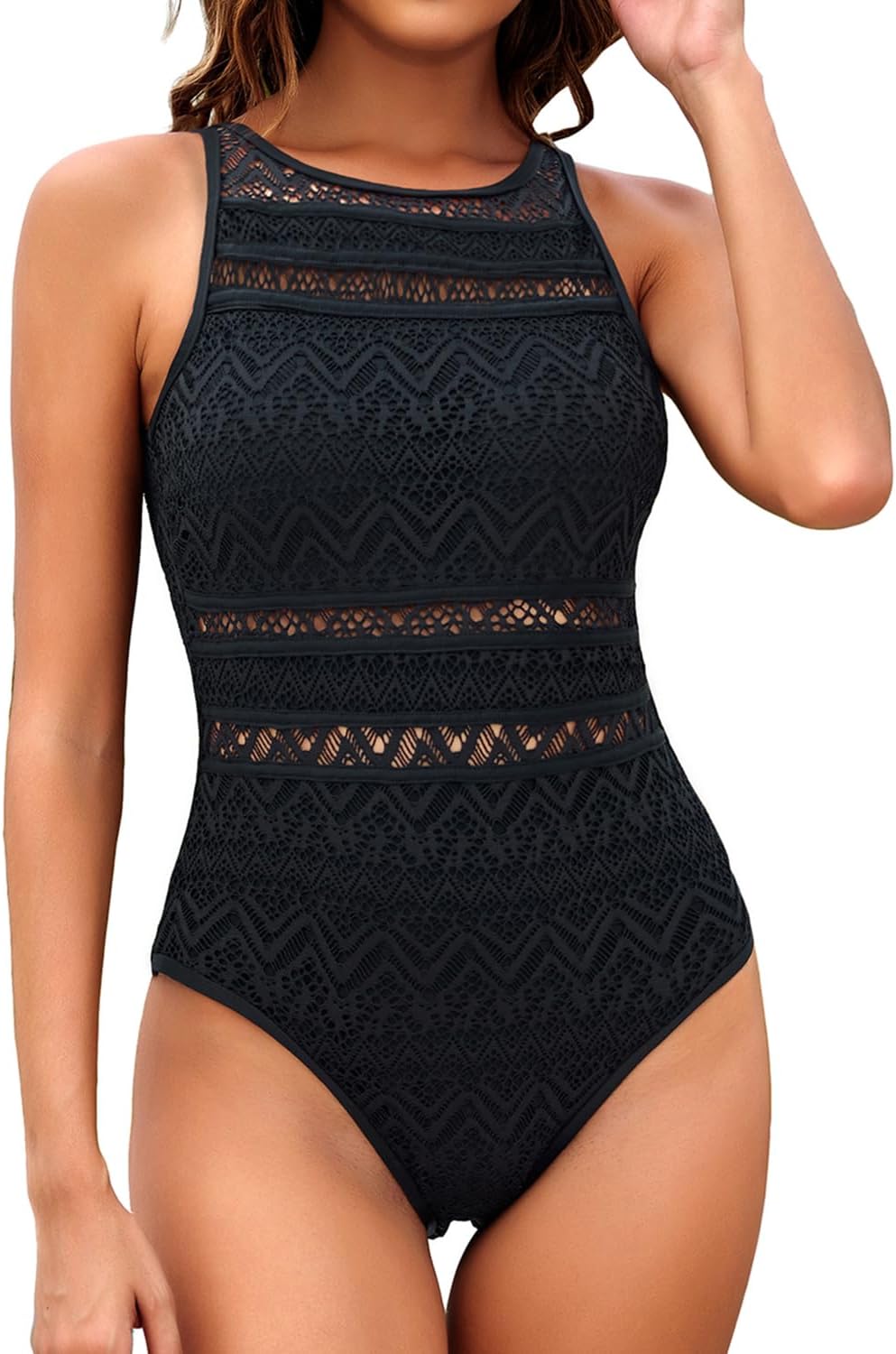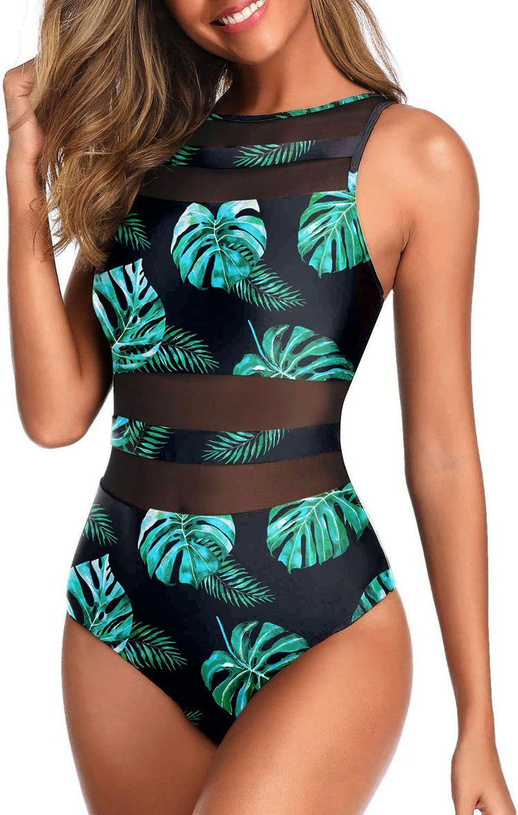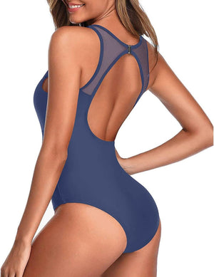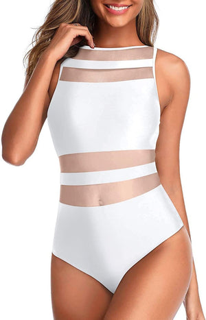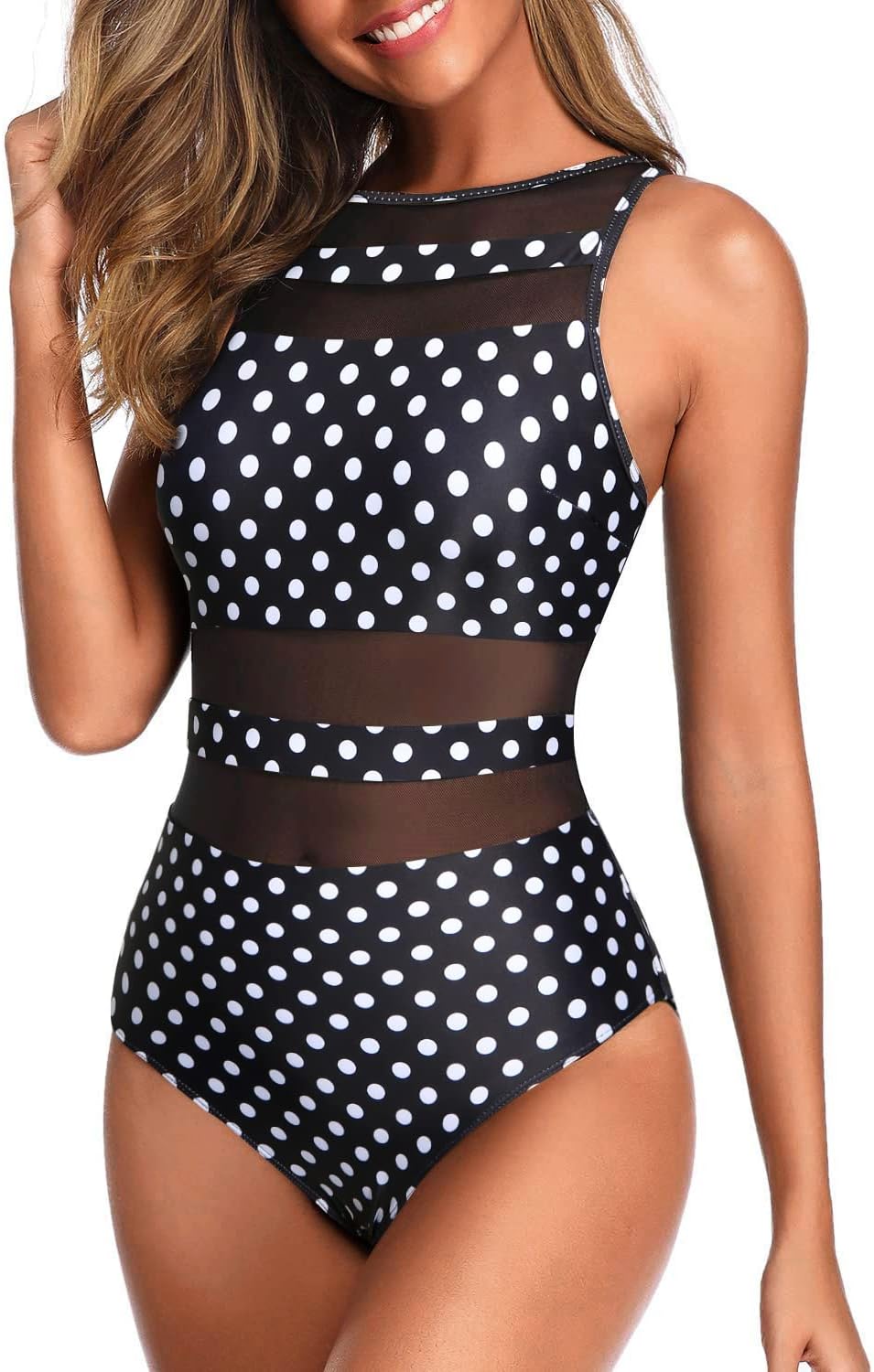 Holipick Women High Neck One Piece Swimsuits for Women Mesh Bathing Suits Open Back Swimwear