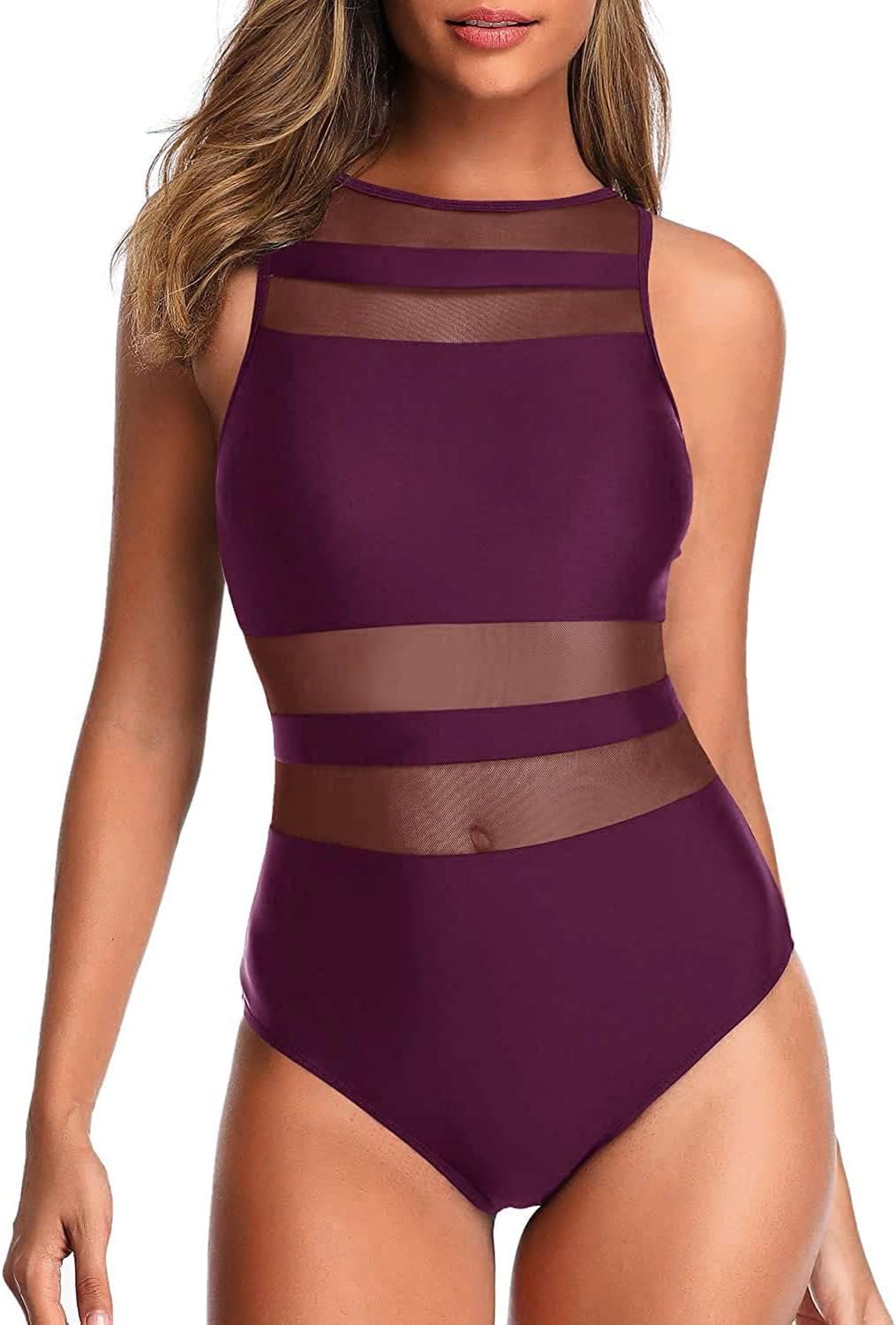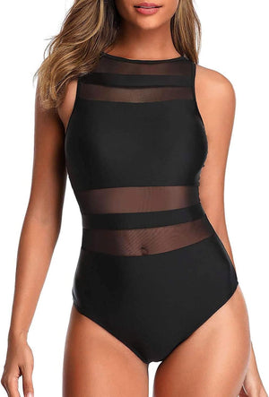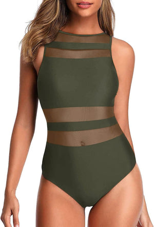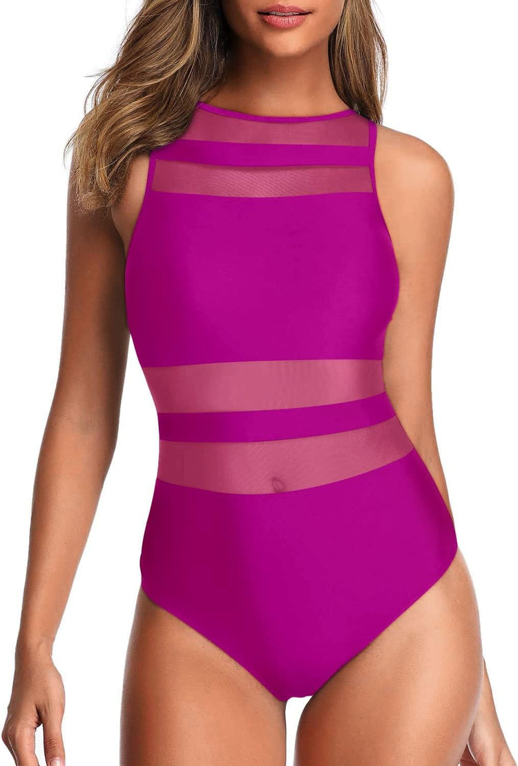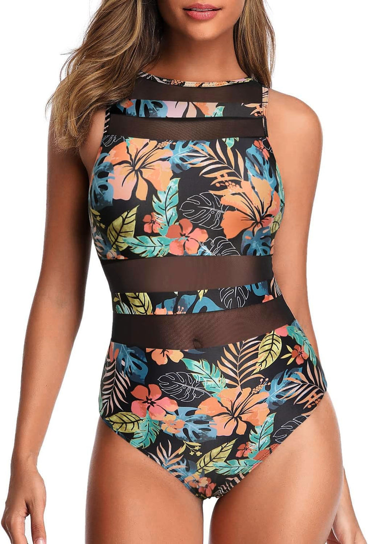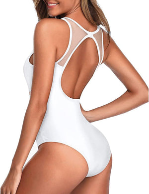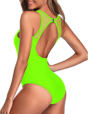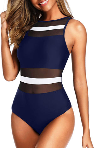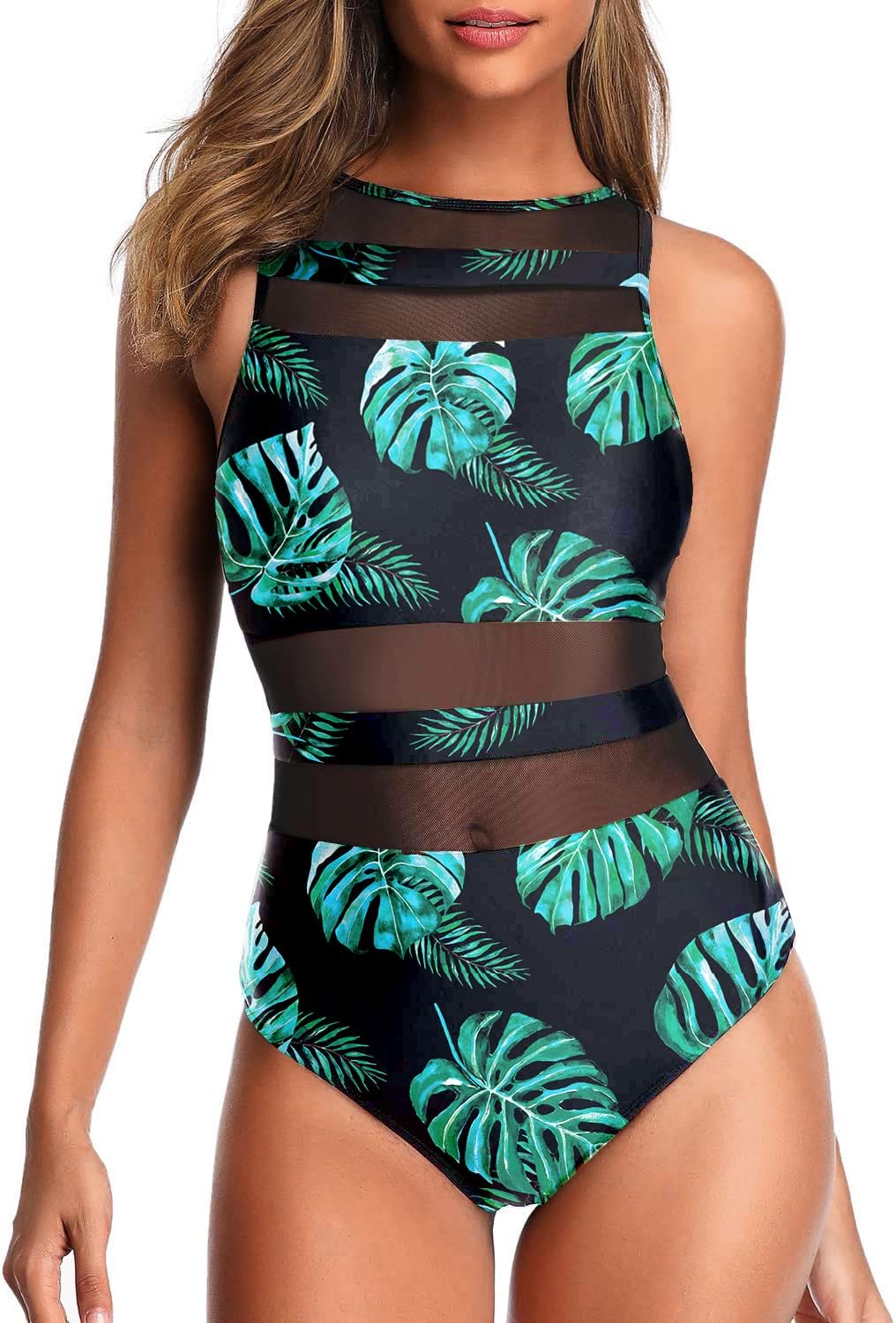 Holipick Women High Neck One Piece Swimsuits for Women Mesh Bathing Suits Open Back Swimwear