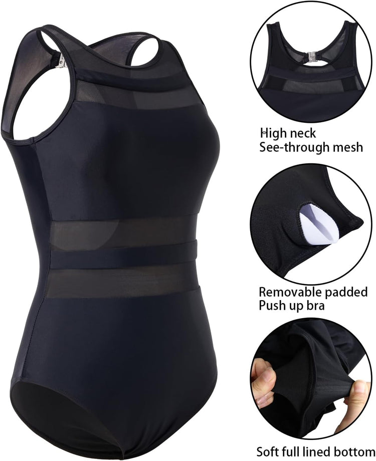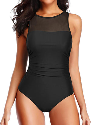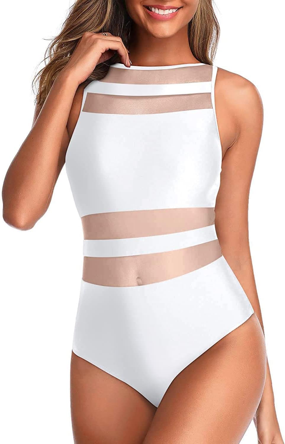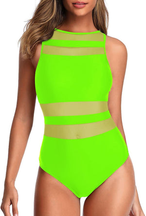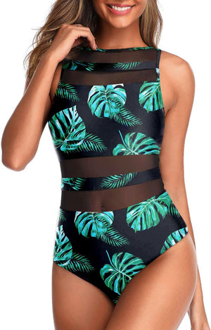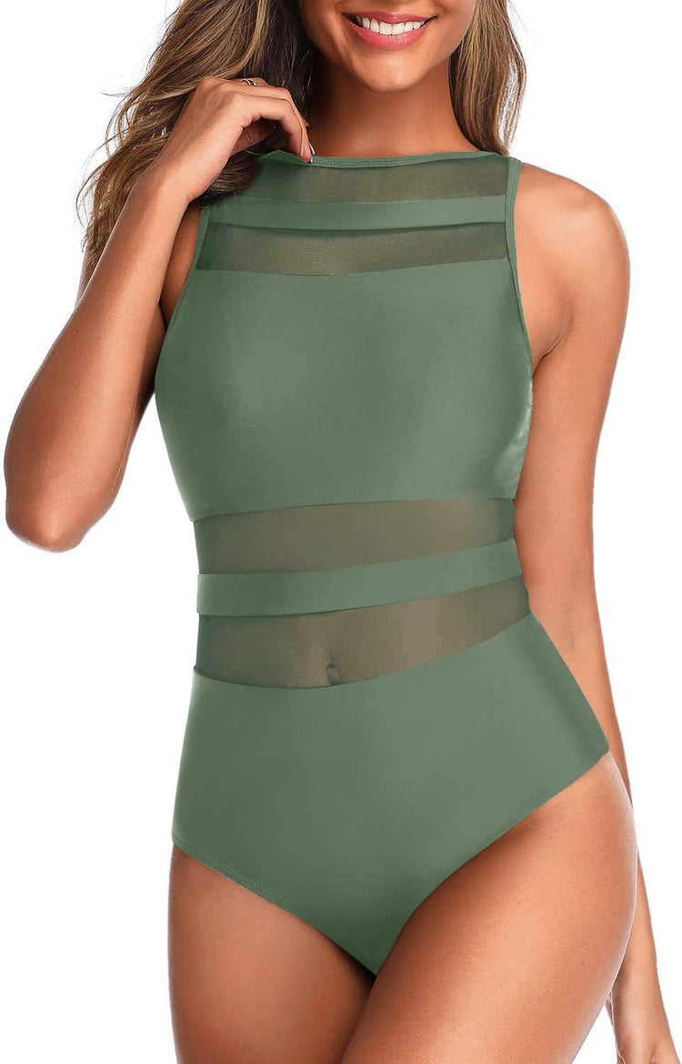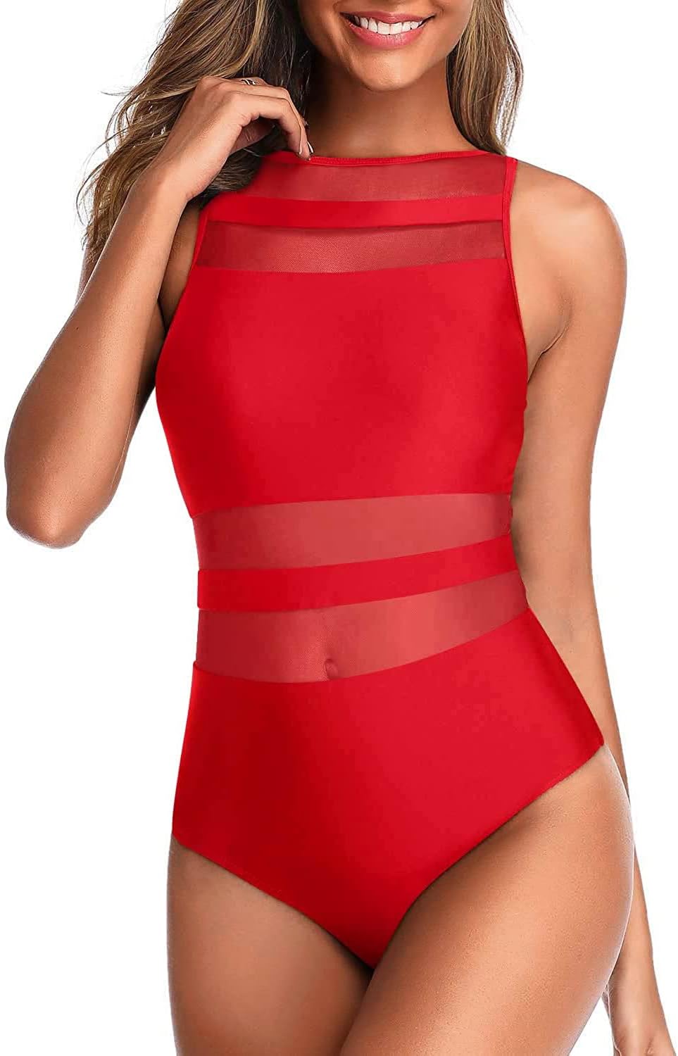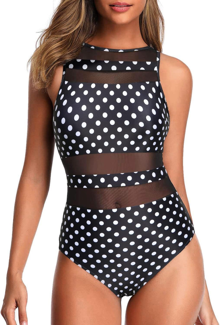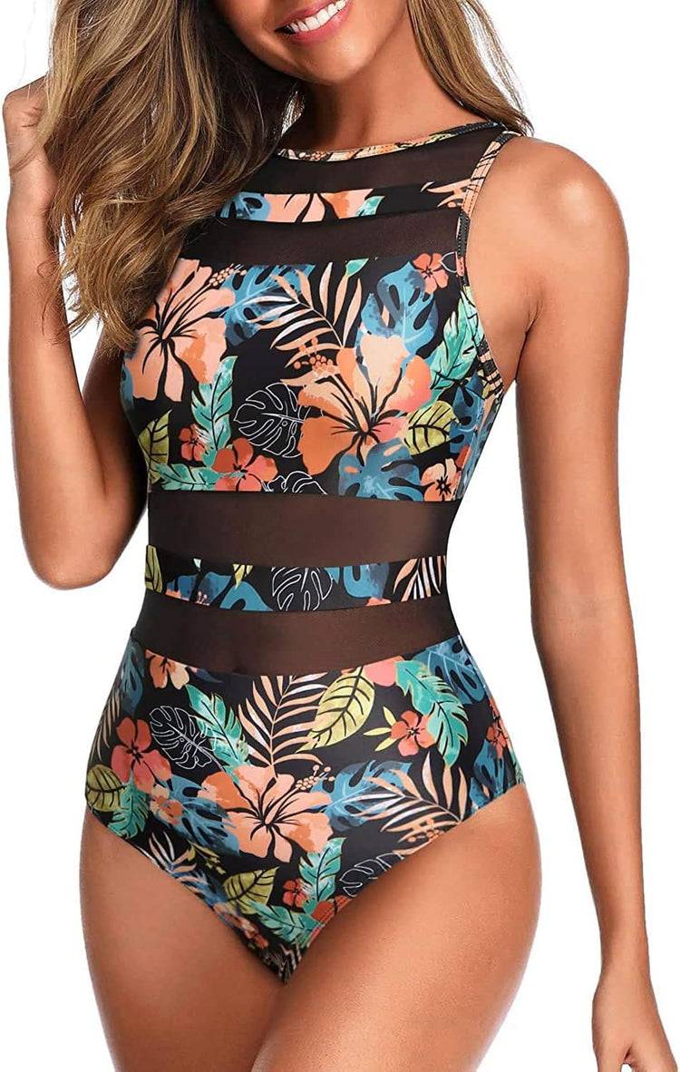 Holipick Women High Neck One Piece Swimsuits for Women Mesh Bathing Suits Open Back Swimwear
