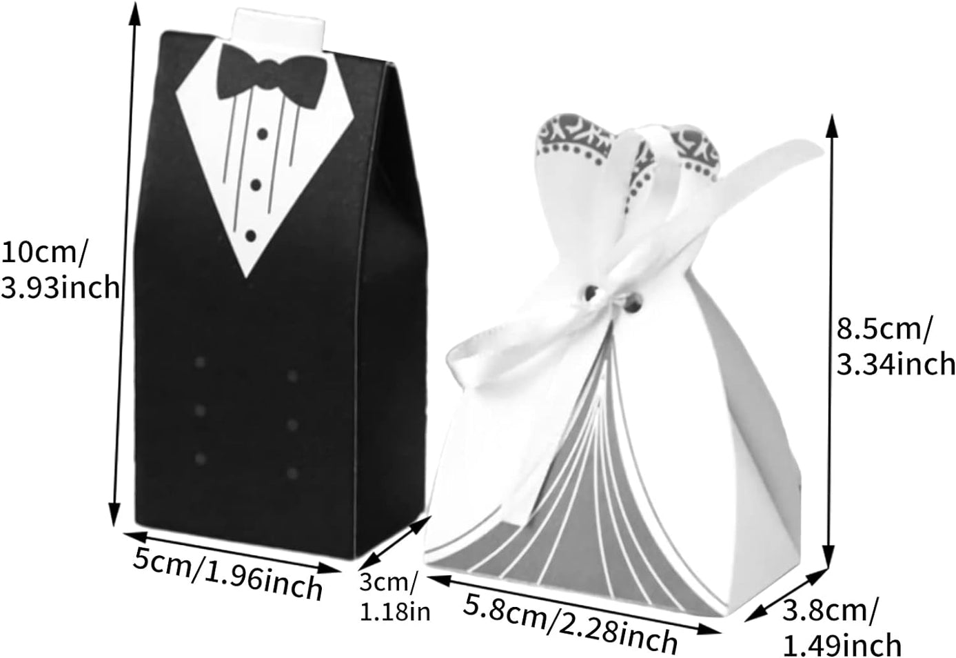- You will get 100pcs bride and groom shaped candy box, which is an exquisite and elegant candy box, highlighting the romantic atmosphere of your wedding