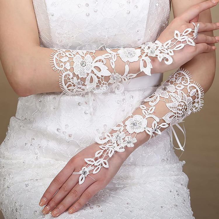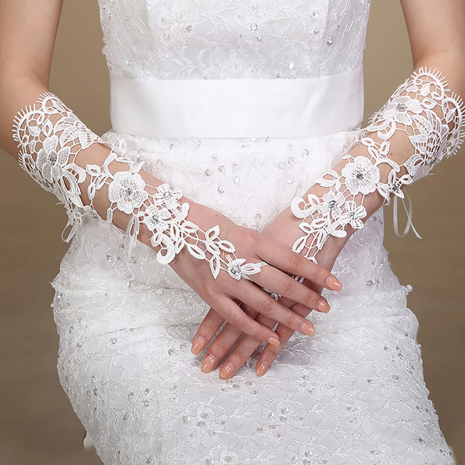 HomeSoGood Lace Bridal Gloves,Fingerless Long Wedding Gloves, Flower Tulle Bridal Gloves, Wedding Accessories