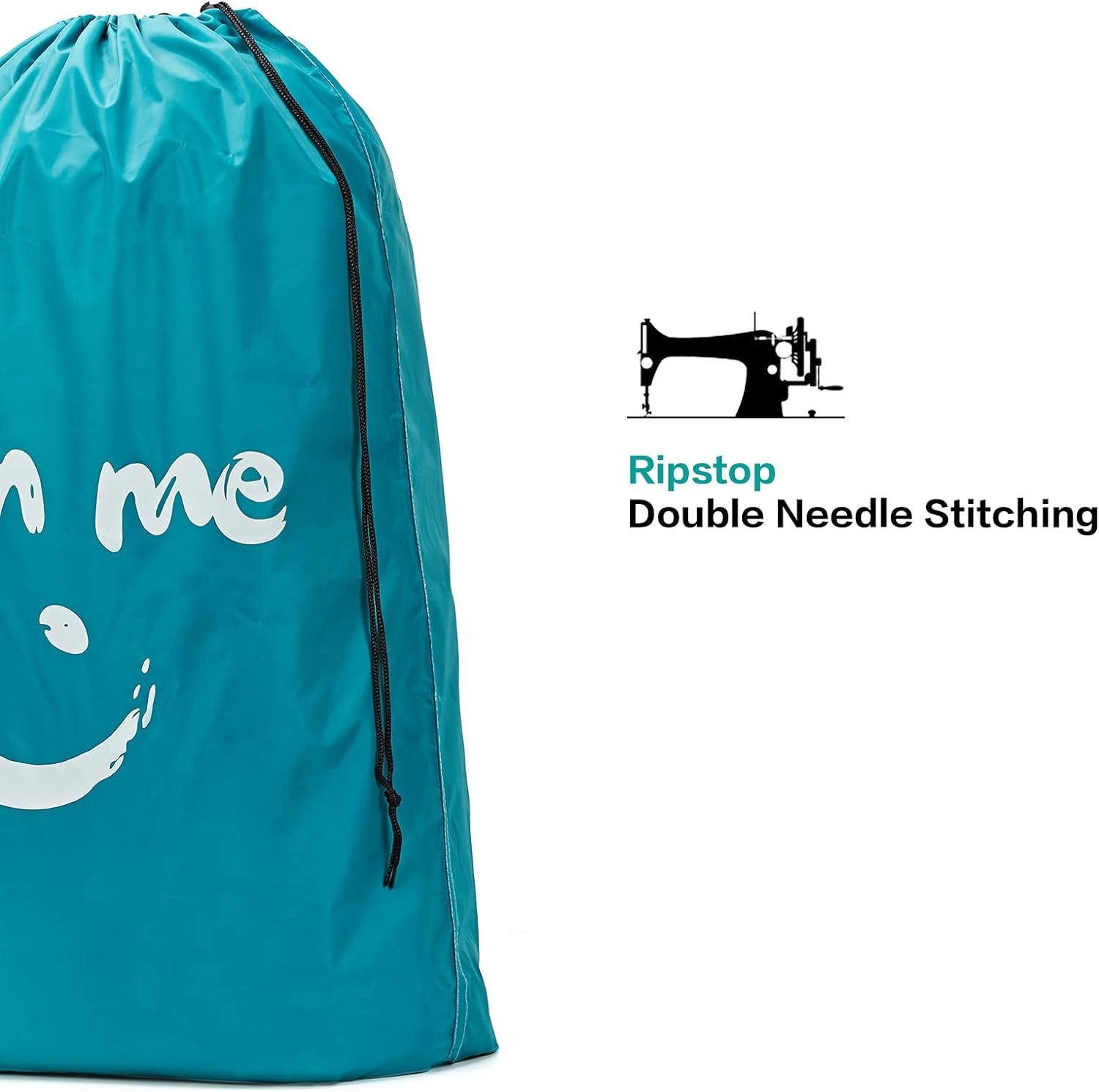 - RIP-STOP AND PREVENT UNRAVEL - Extra-tough double-stitched seam construction and thick nylon material that prevents the bag tears from spreading; Plastic tips on the end of drawstring, which prevent it from unraveling after wash
