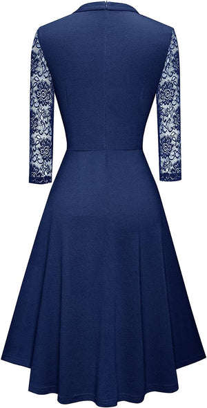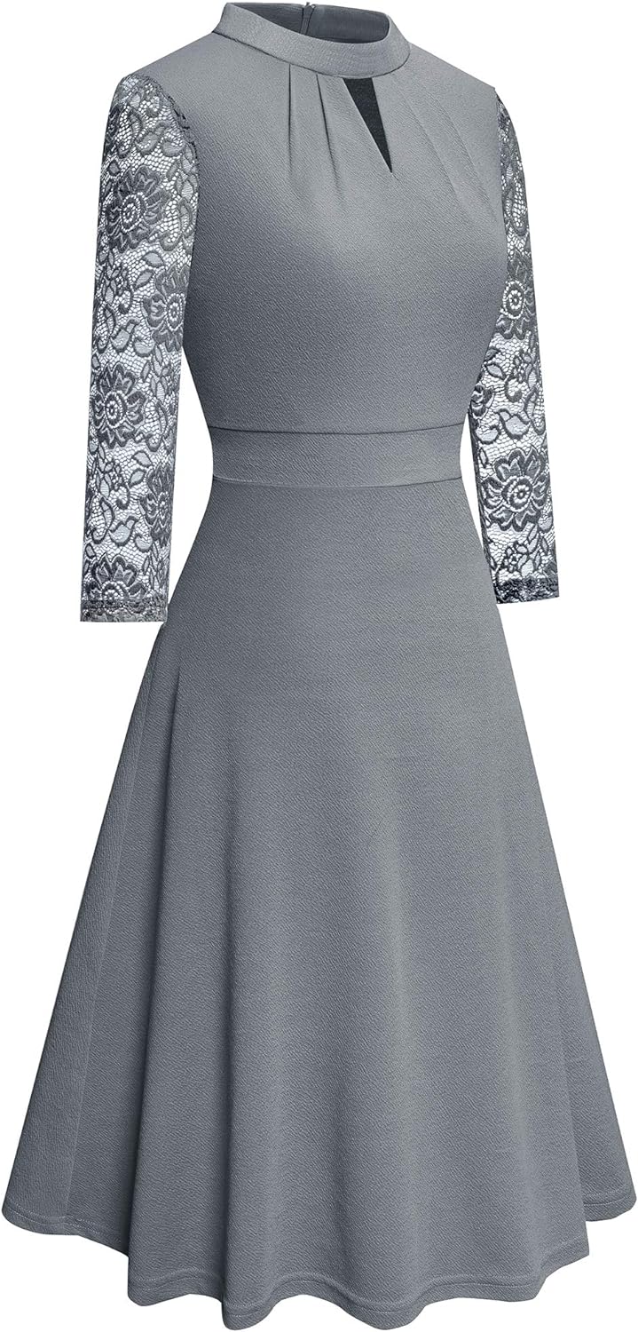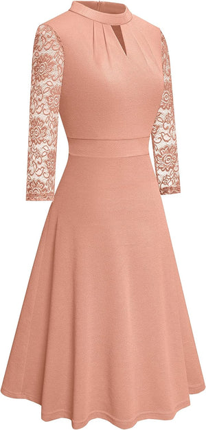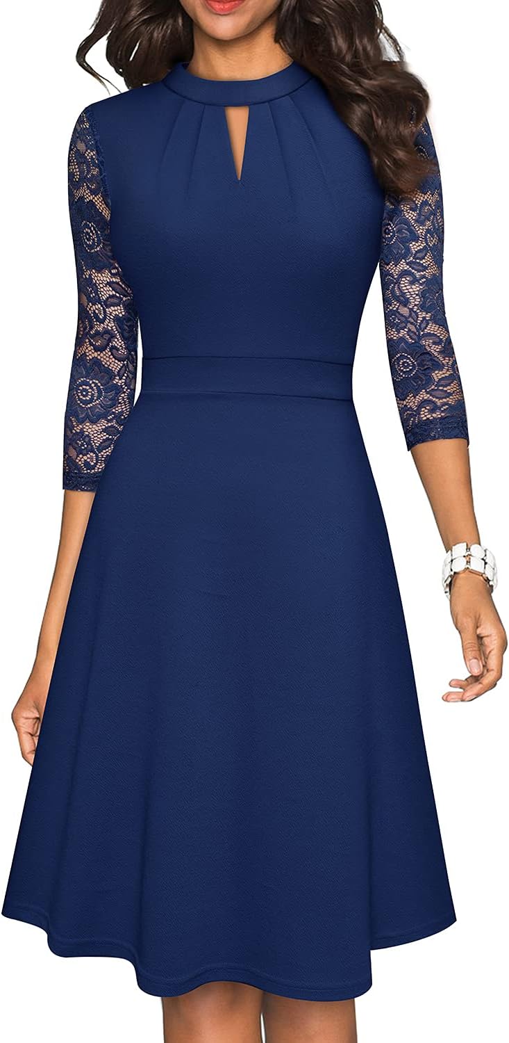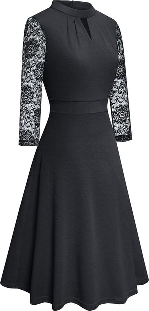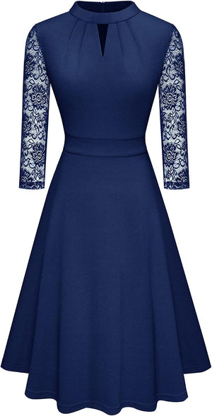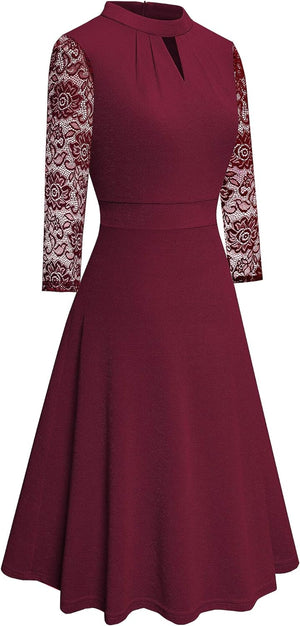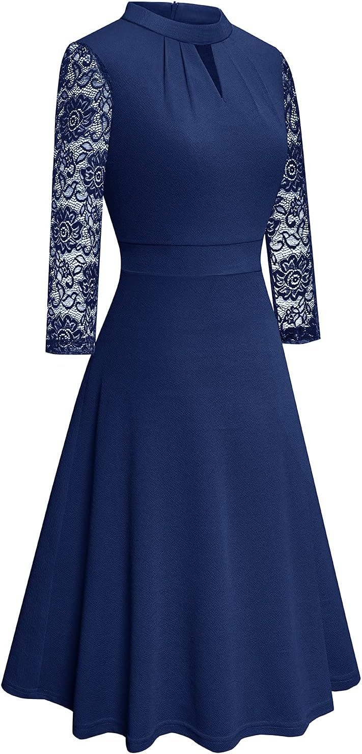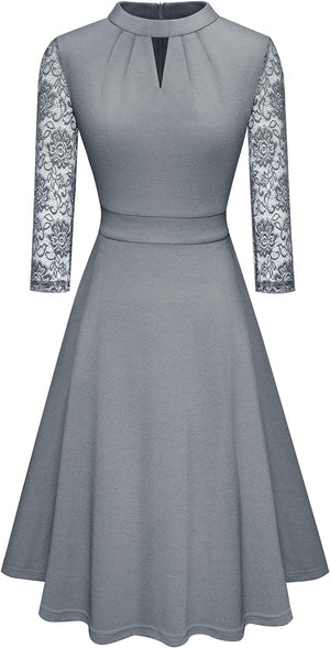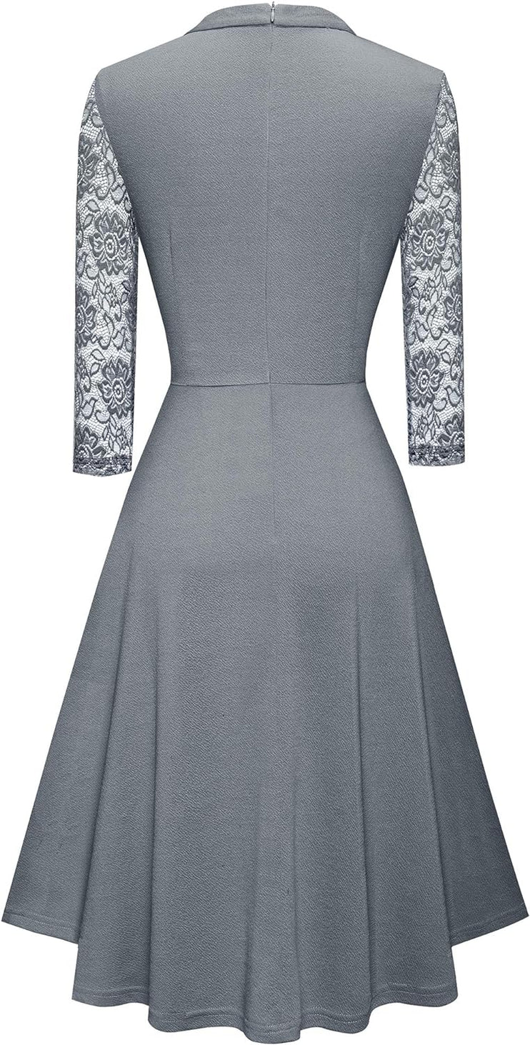 HOMEYEE Women's Round Neck Hollow Out Lace Patchwork Retro Party Dresses A234