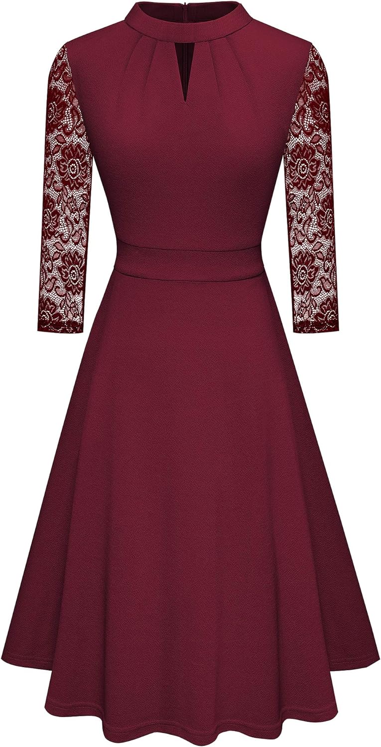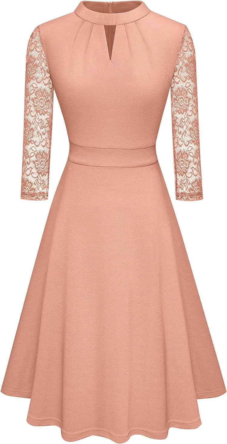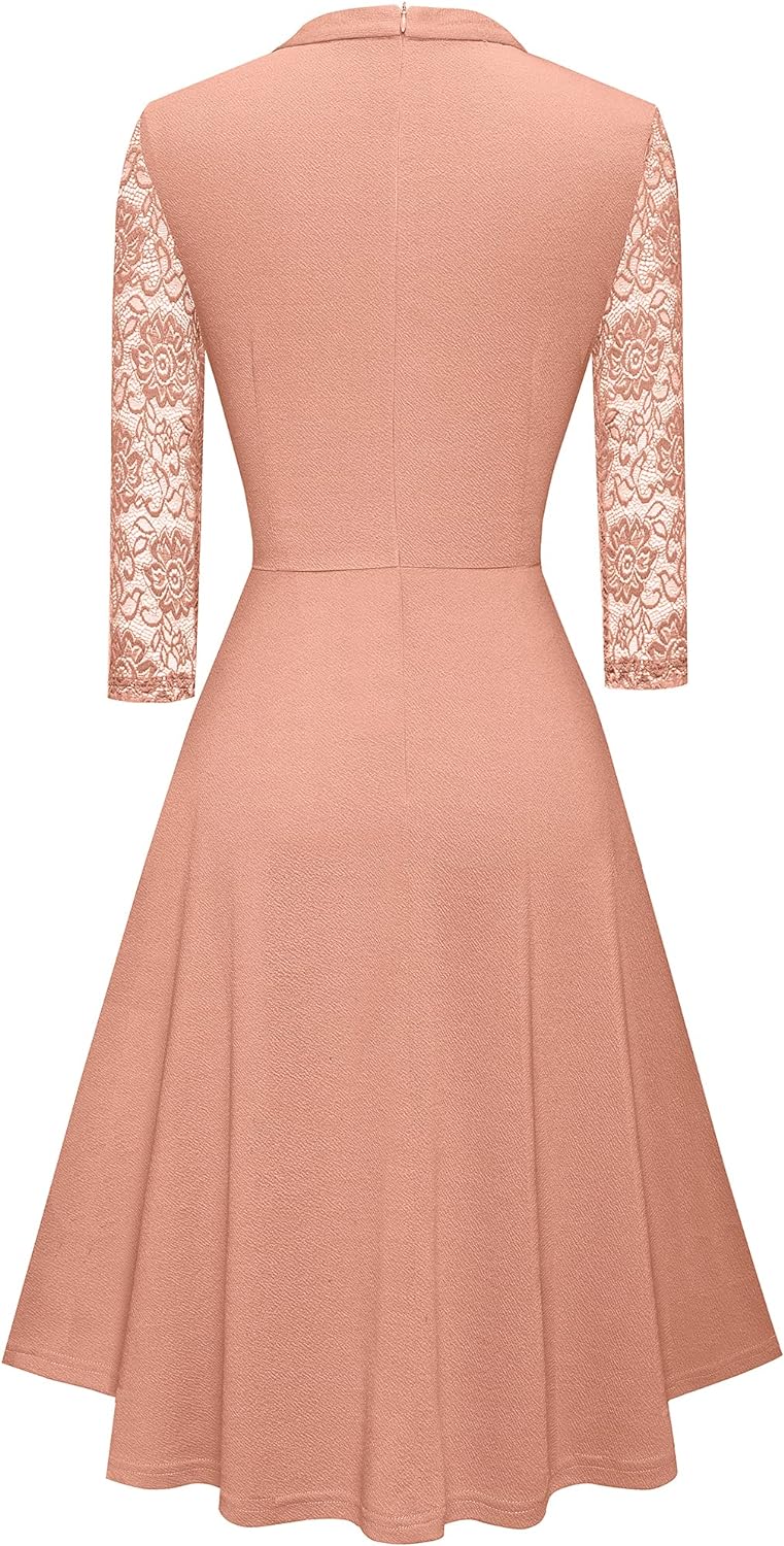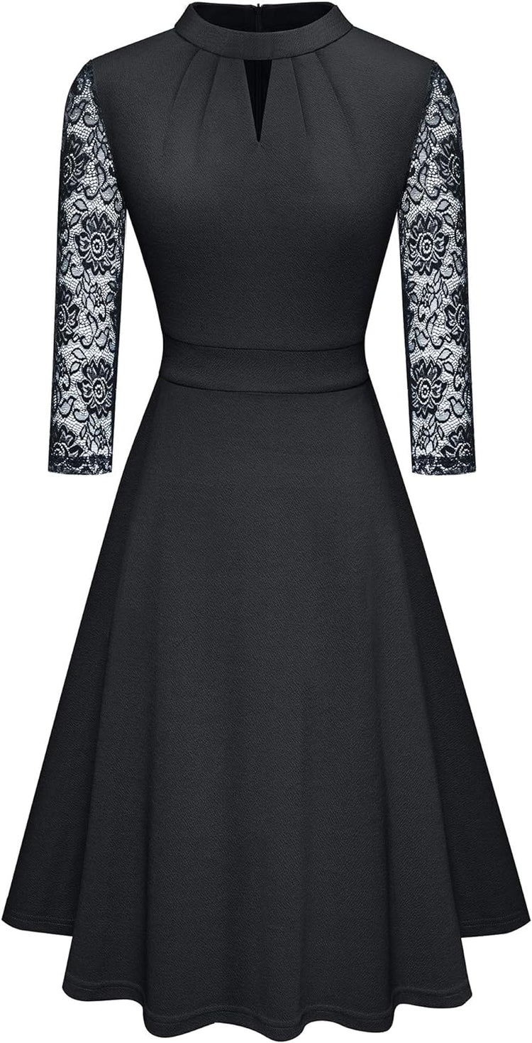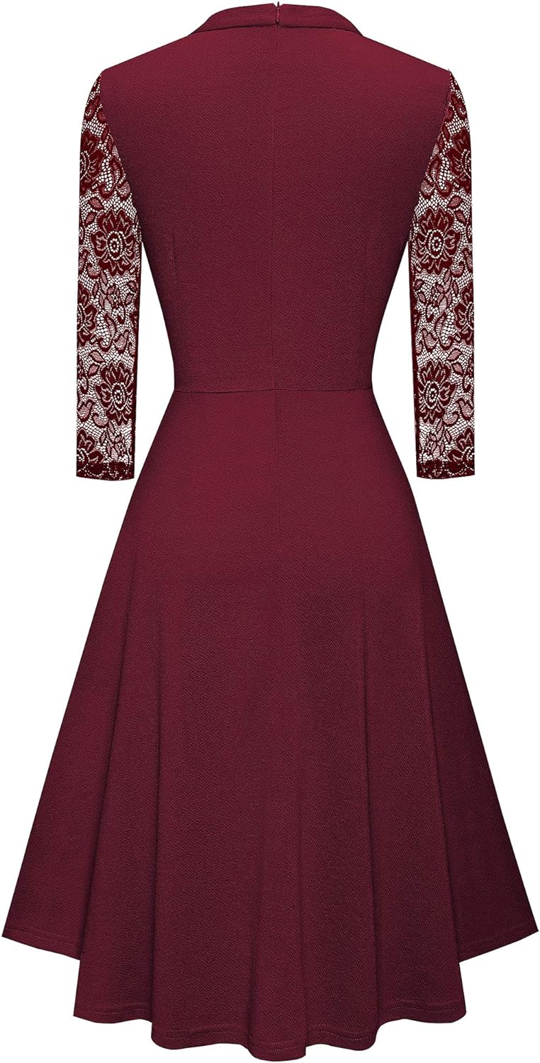 HOMEYEE Women's Round Neck Hollow Out Lace Patchwork Retro Party Dresses A234