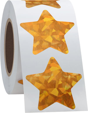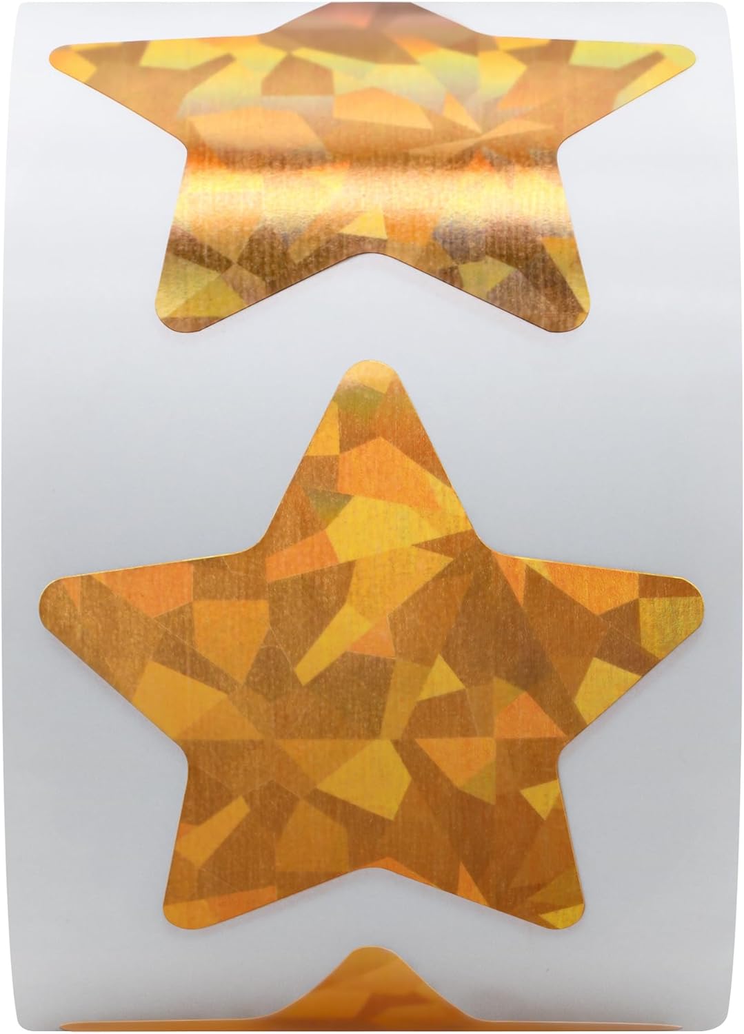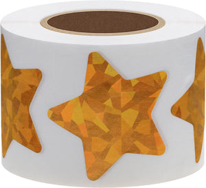 Hybsk Gold Star Stickers Metallic Foil Labels 1.5 Inch 500 Total Per Roll (Gold - Holographic)