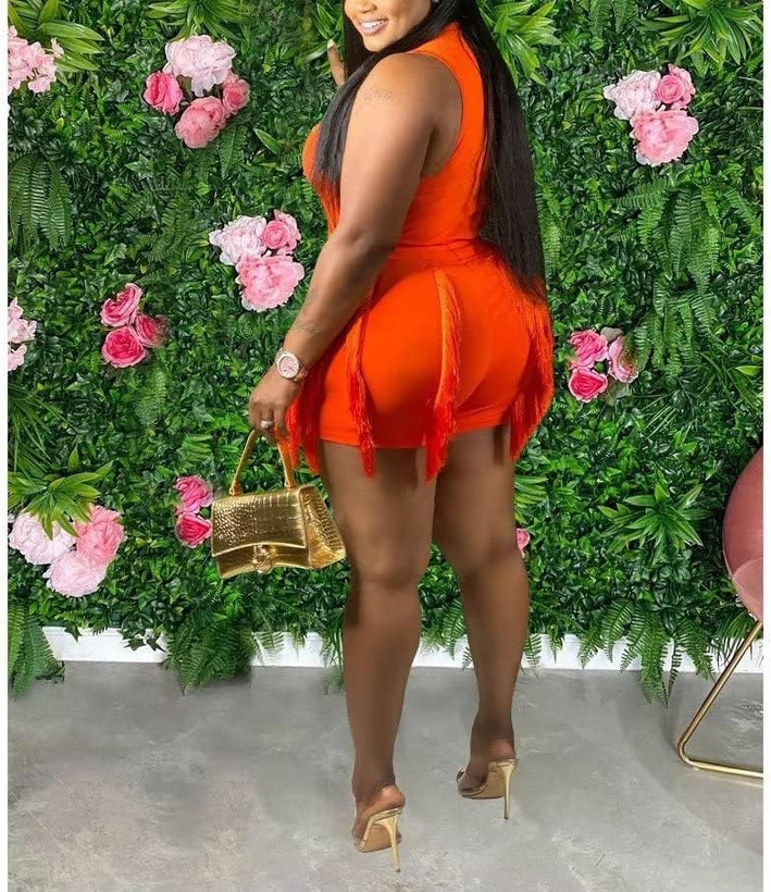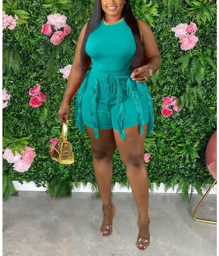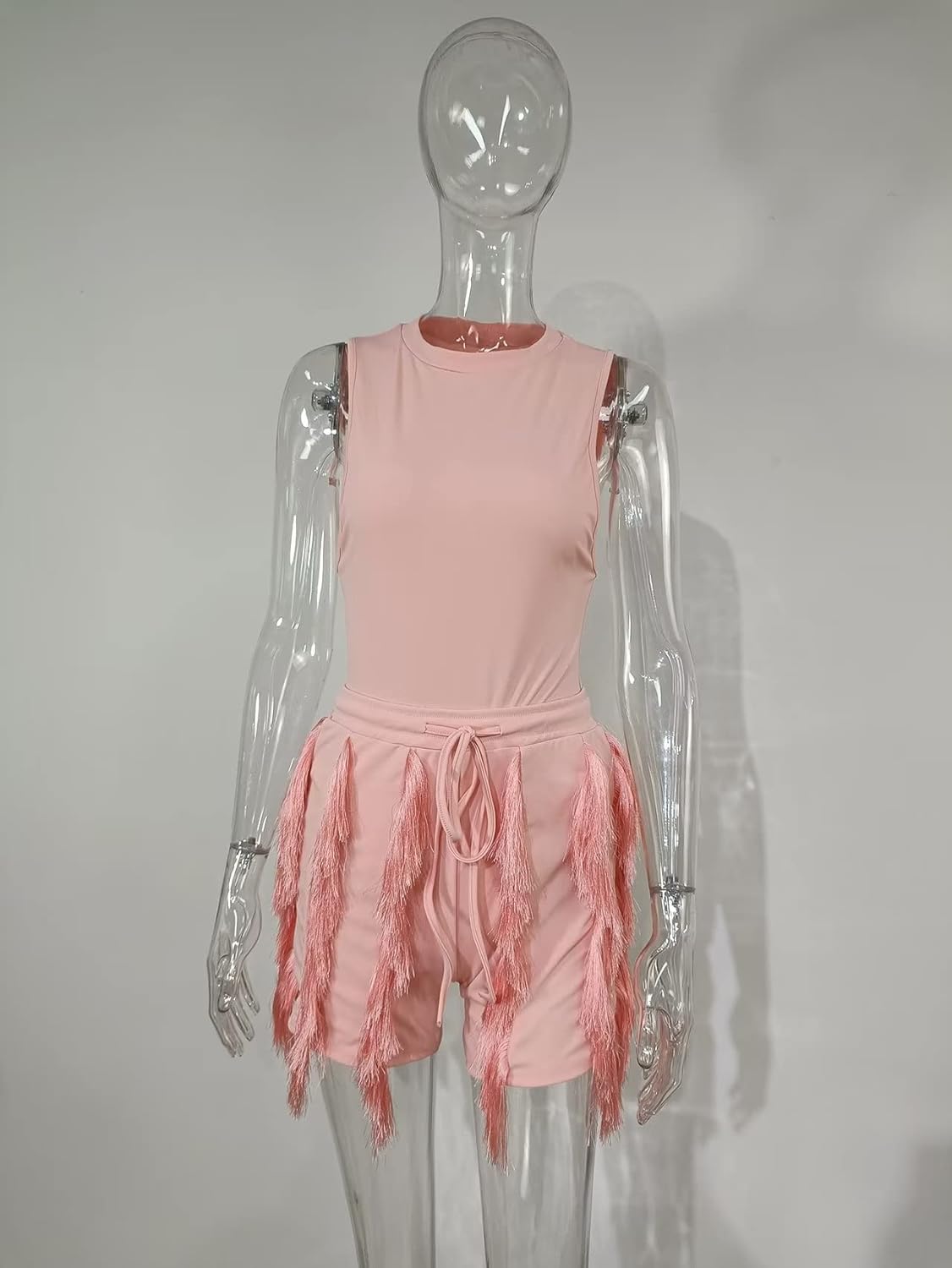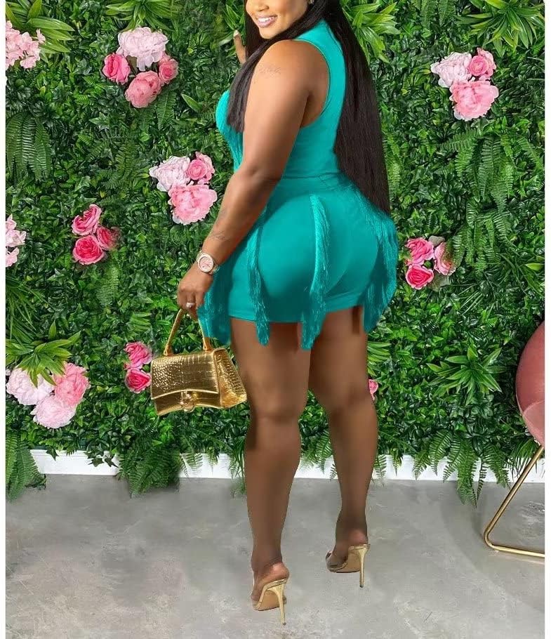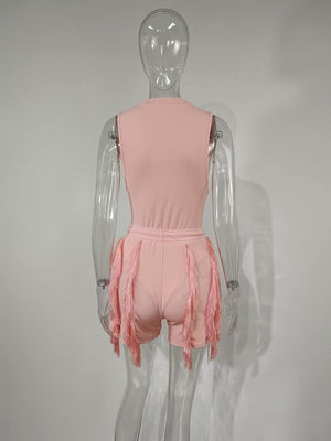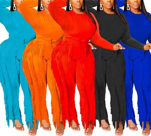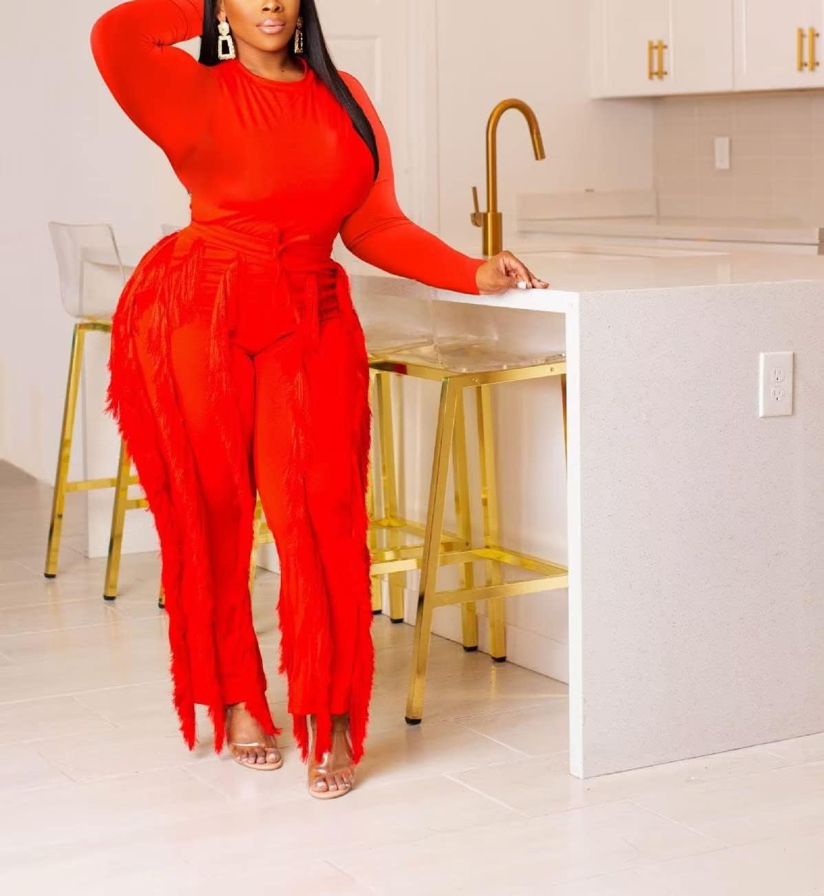 IyMoo Two Piece Outfits for Women Long Sleeve Sleeveless Tank Tops Fringe Tassel Shorts Long Pants Set Clubwear S-3XL