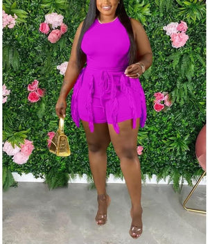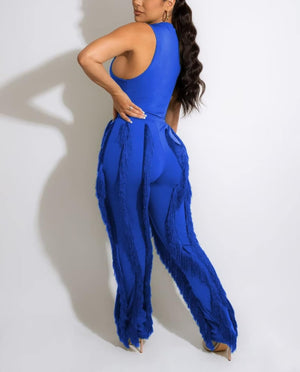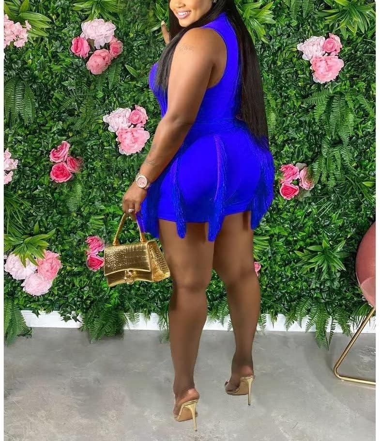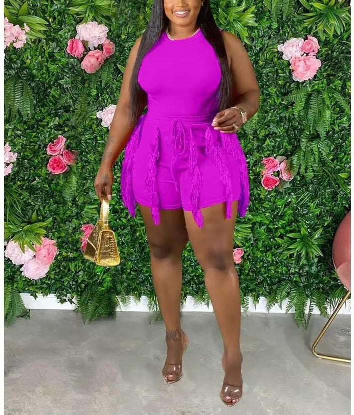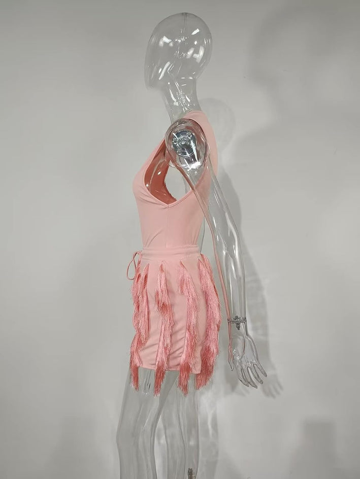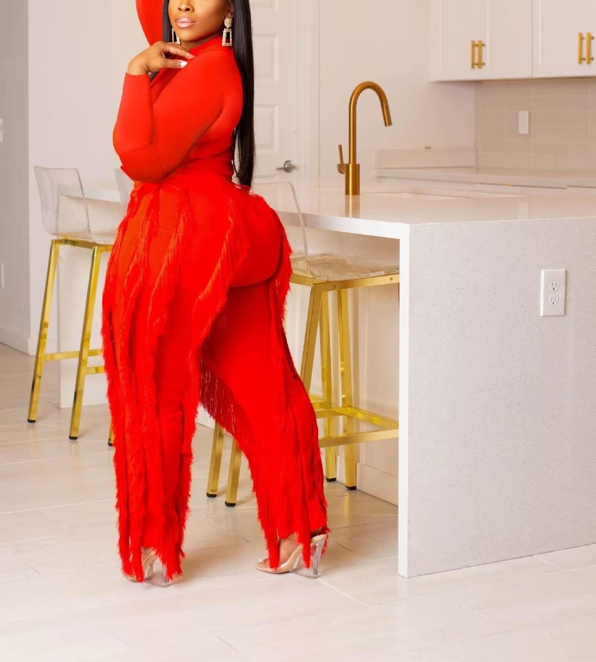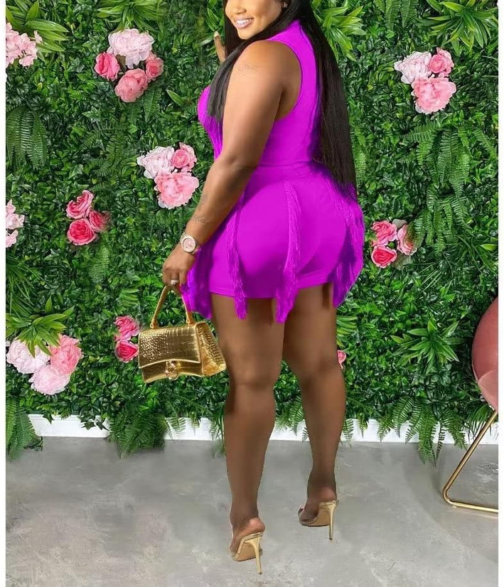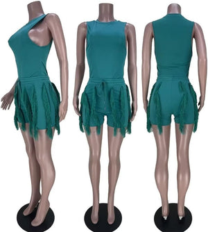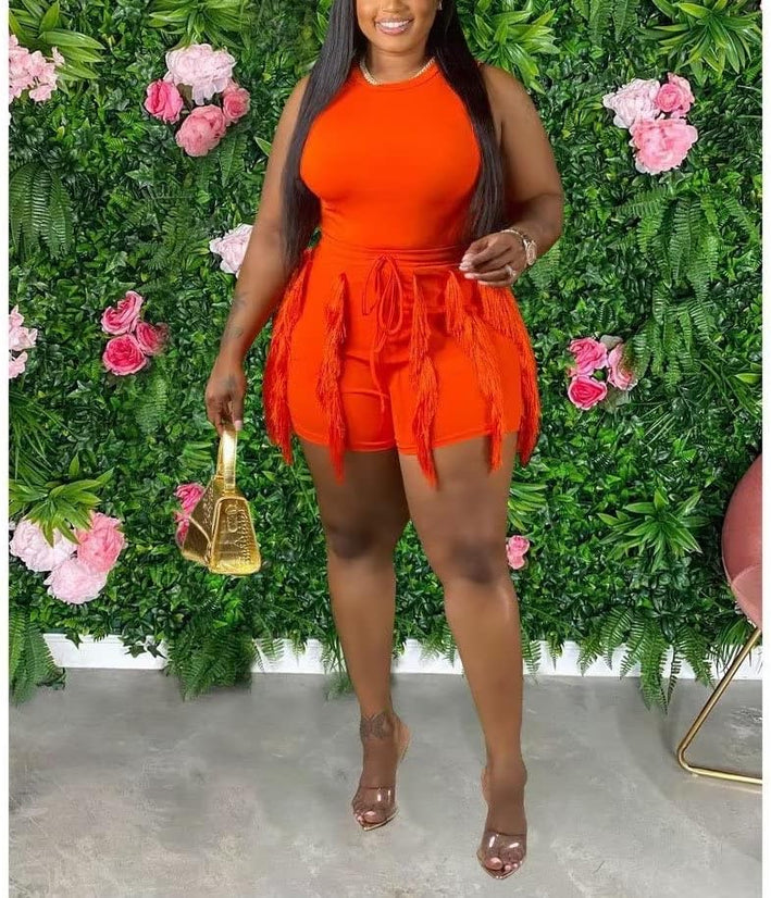 IyMoo Two Piece Outfits for Women Long Sleeve Sleeveless Tank Tops Fringe Tassel Shorts Long Pants Set Clubwear S-3XL
