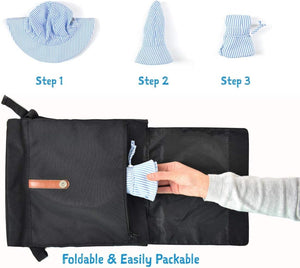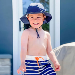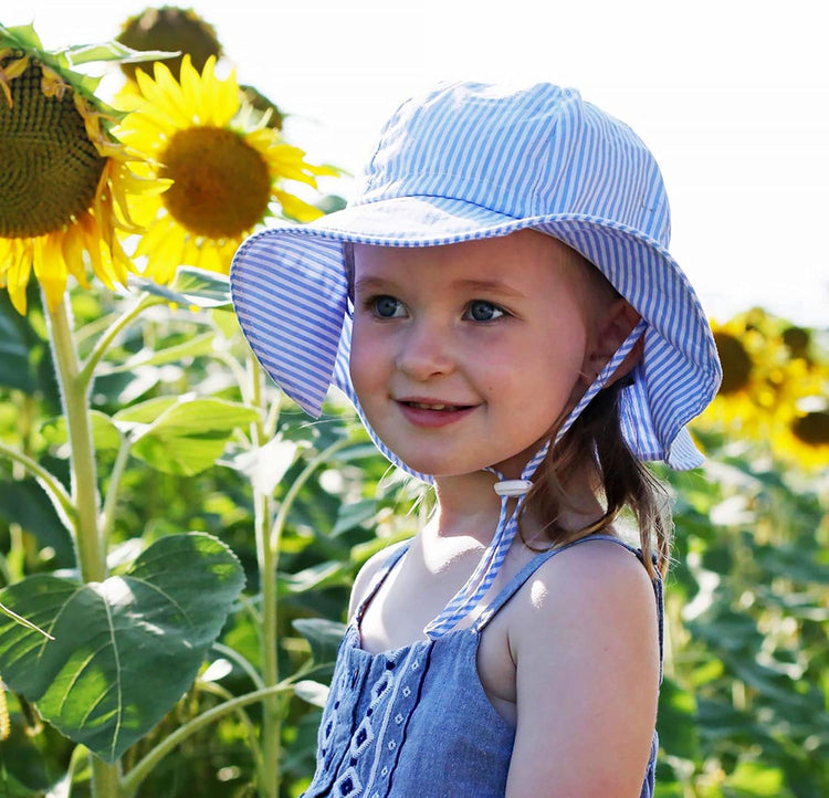 Our sun hats are the solution, you can safely size up! With fully adjustable head and chin drawstrings, our sun hats ensure a great fit over multiple seasons as your child grows. A better fit sun hat is a safer hat for an active kid.