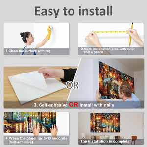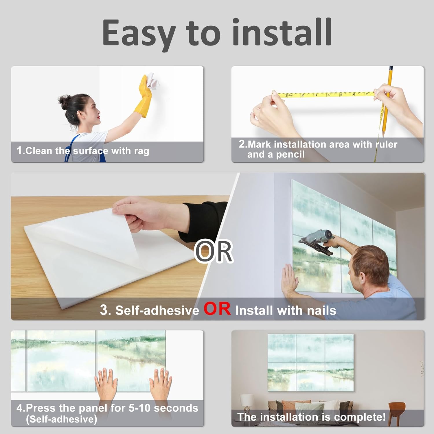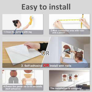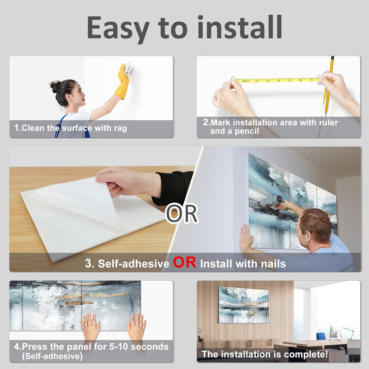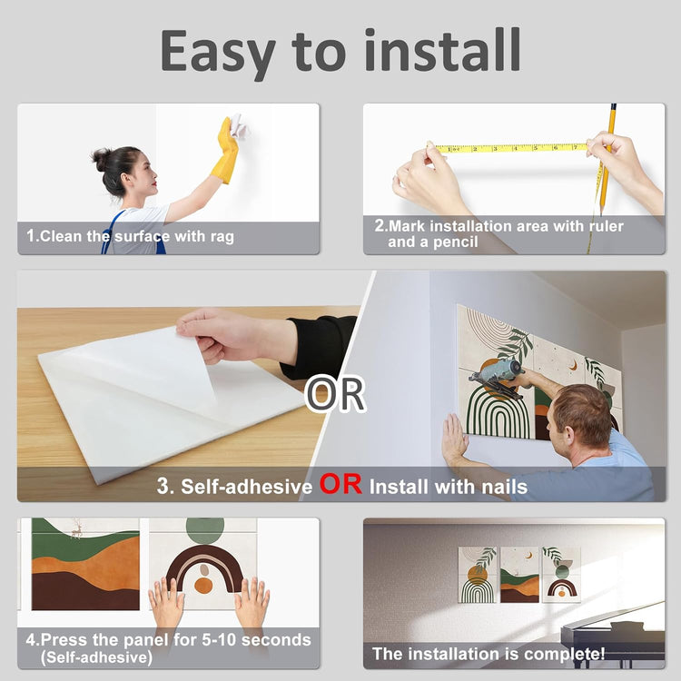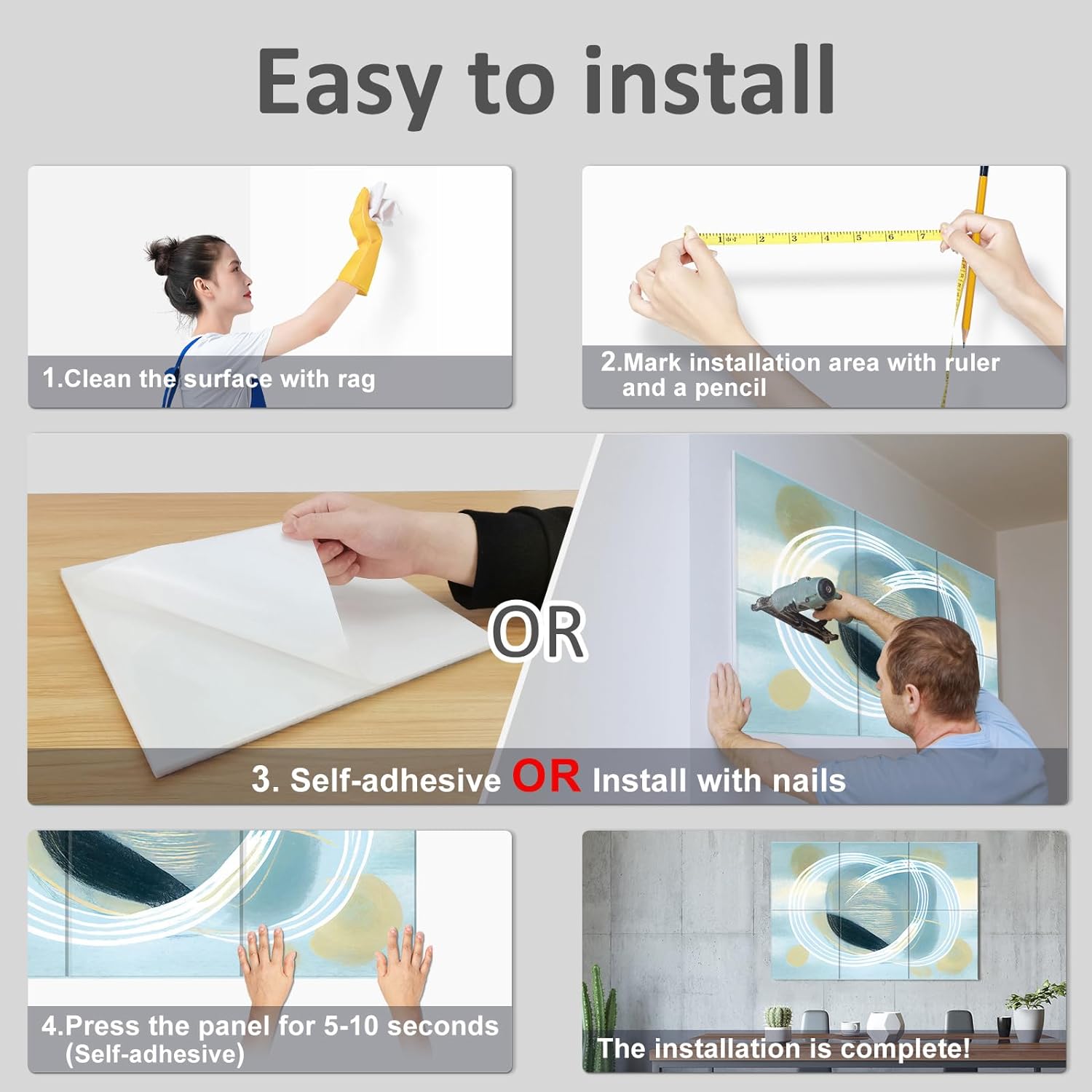 - 【Easy to Install】Our bedroom wall decor is self-adhesive. First, ensure that the wall is clean, dry, and structurally sound, free of dust, grease, oil or other debris. Then, mark the installation area with a tape measure and a pencil, tear off a layer of film behind the wall decorations, stick to the wall and press with your hands for 5-10 seconds to ensure the painting sticks tighter.