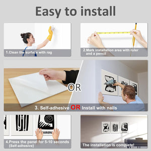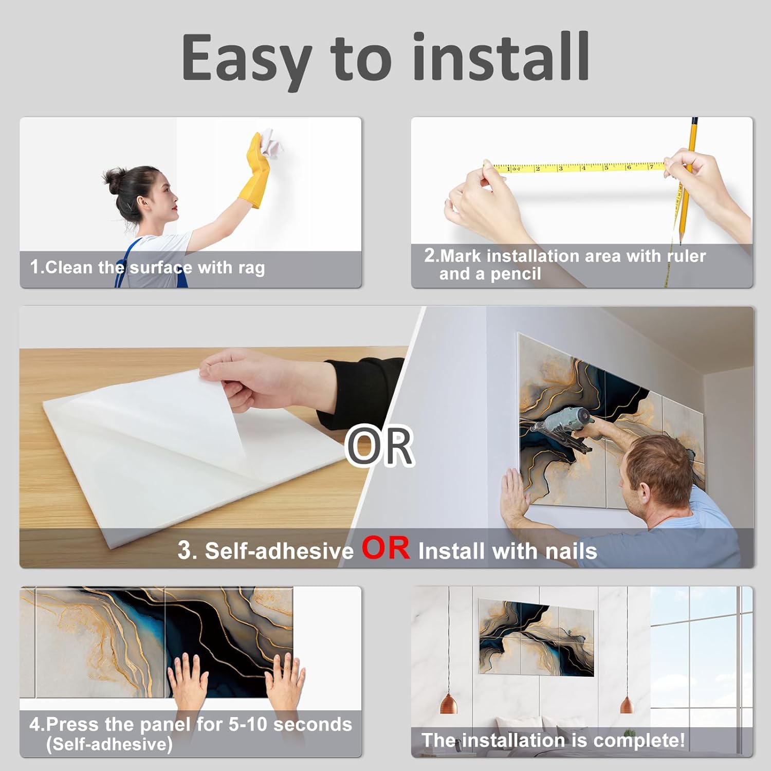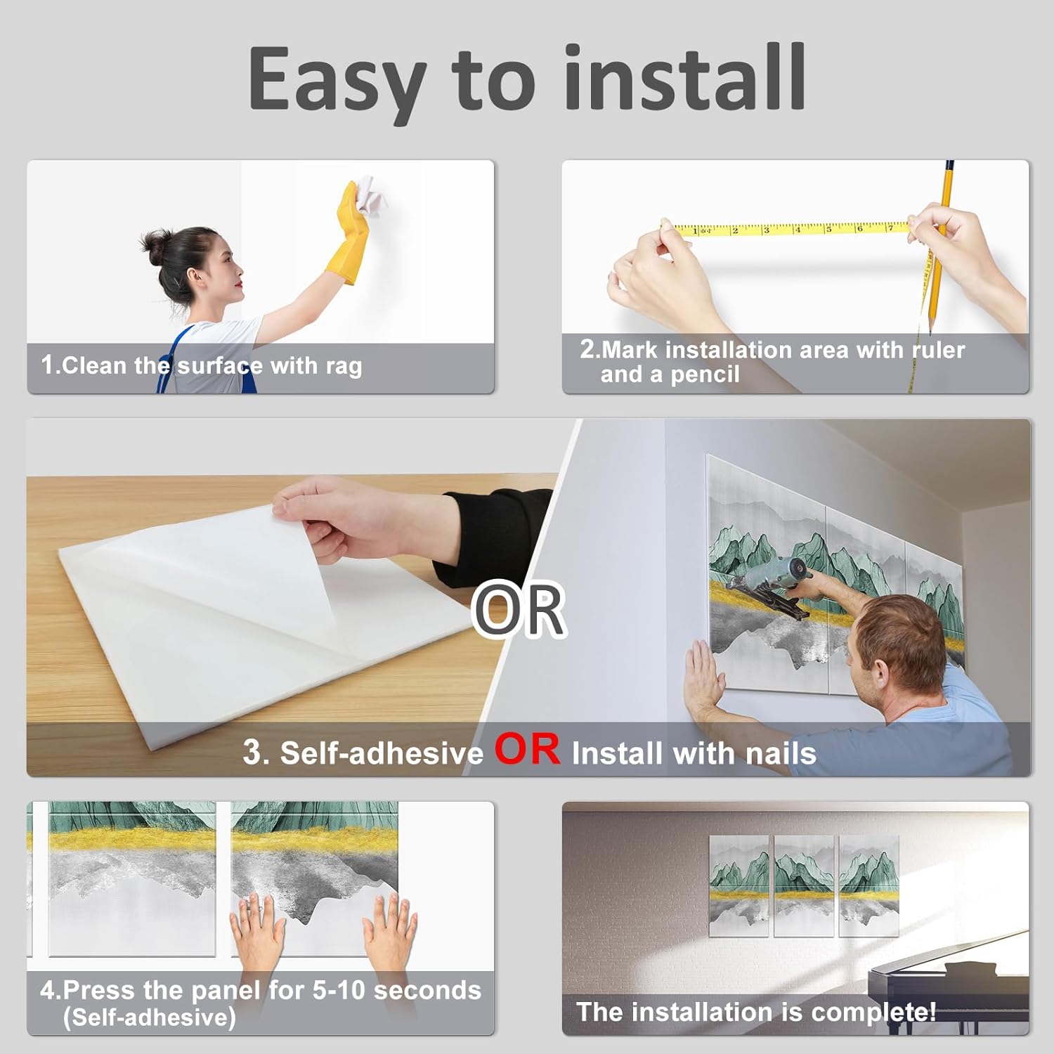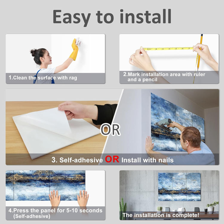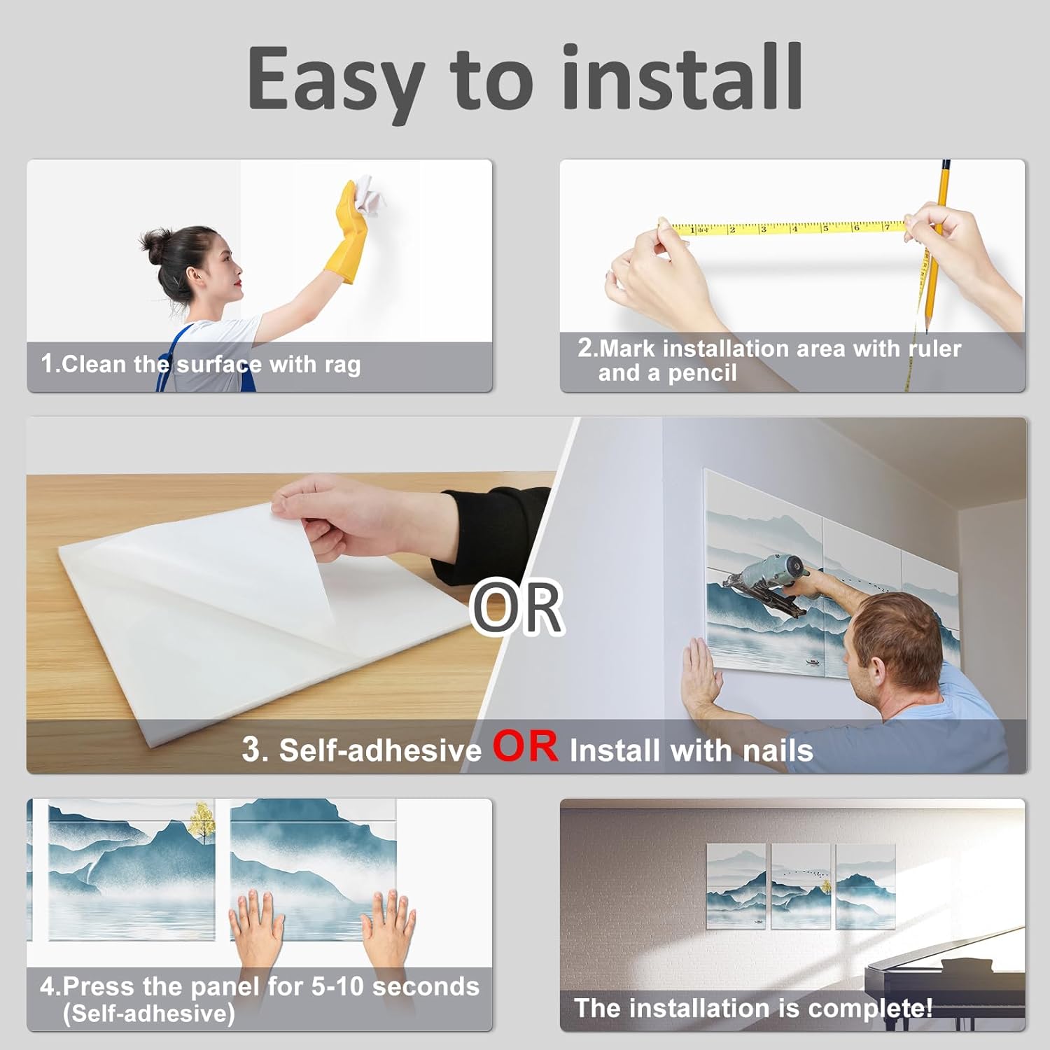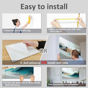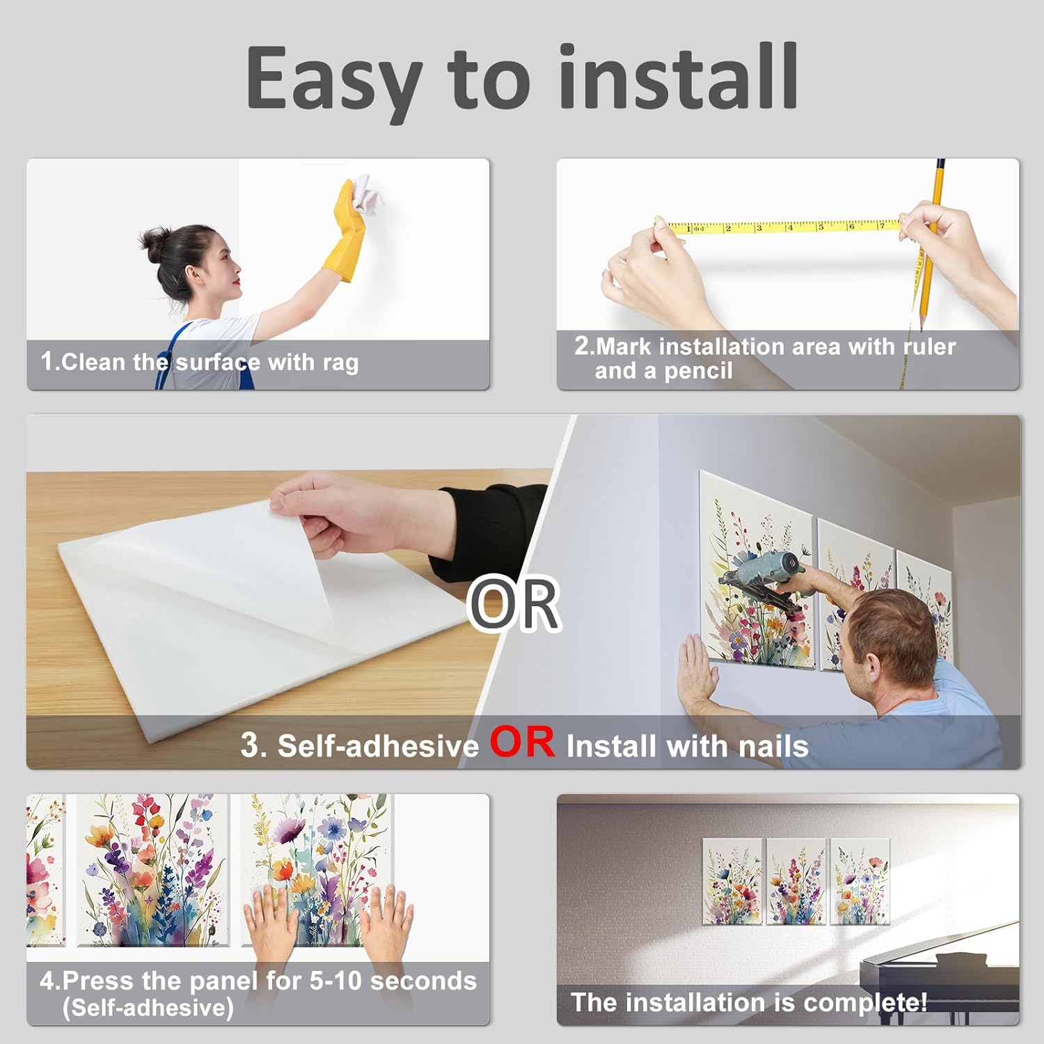 - 【Easy to Install】Our bedroom wall decor is self-adhesive. First, ensure that the wall is clean, dry, and structurally sound, free of dust, grease, oil or other debris. Then, mark the installation area with a tape measure and a pencil, tear off a layer of film behind the wall decorations, stick to the wall and press with your hands for 5-10 seconds to ensure the painting sticks tighter.