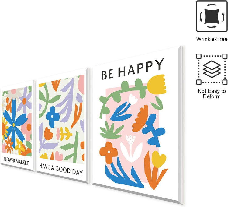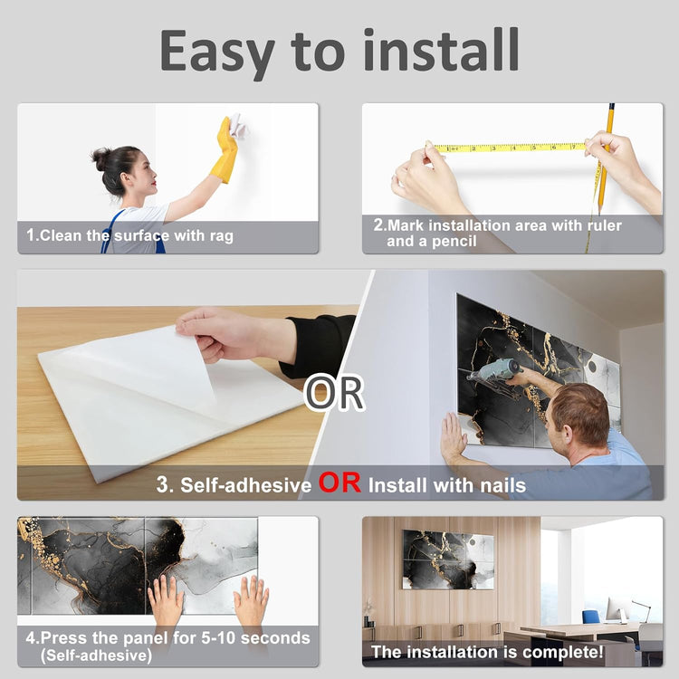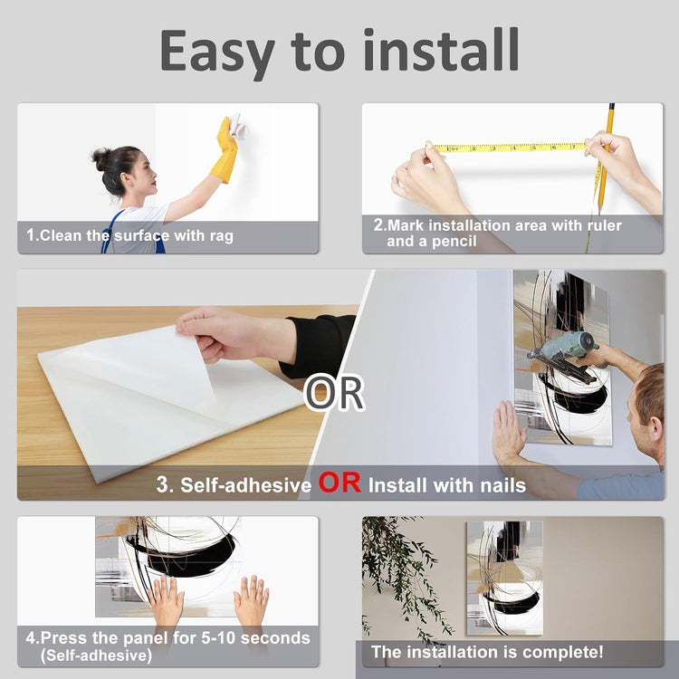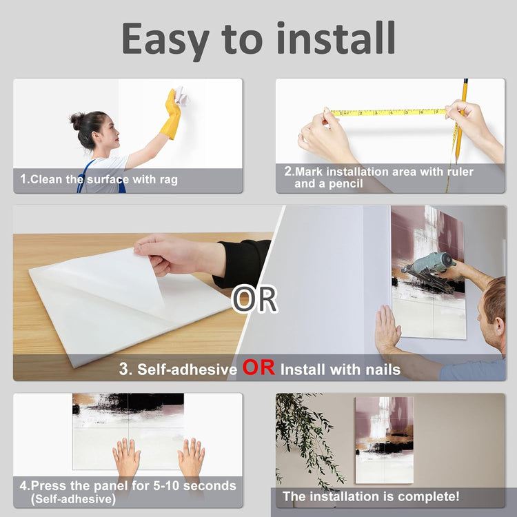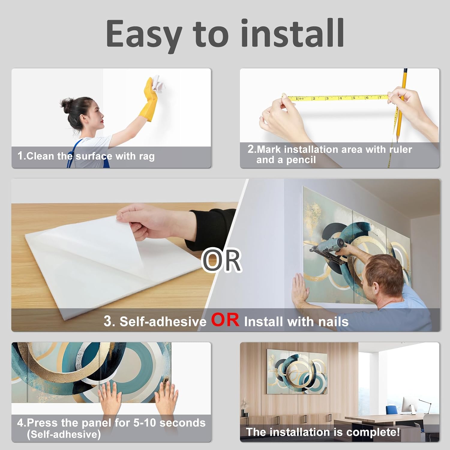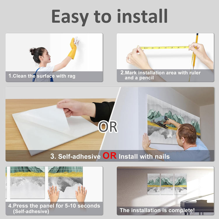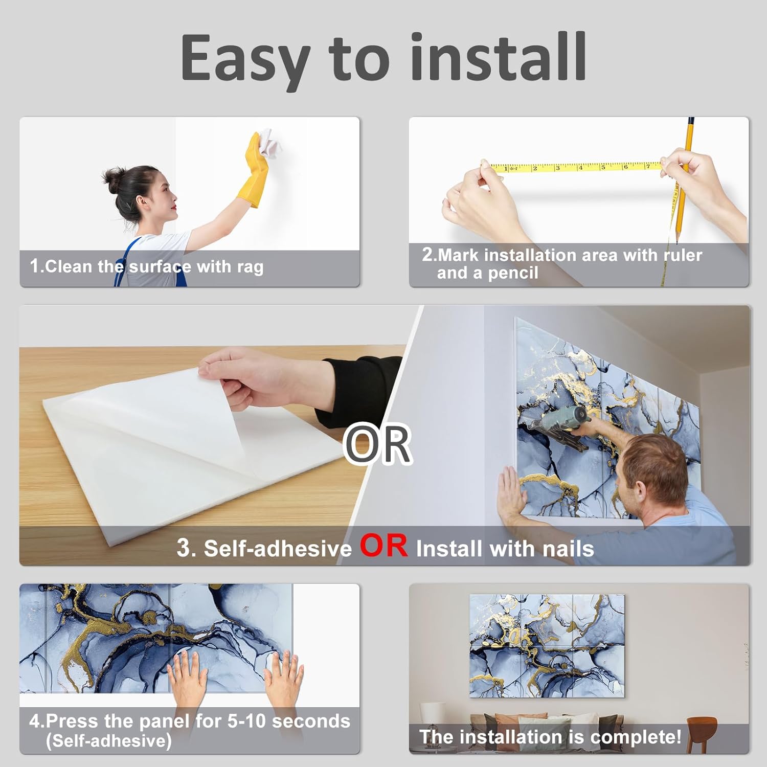 - 【Easy to Install】Our bedroom wall decor is self-adhesive. First, ensure that the wall is clean, dry, and structurally sound, free of dust, grease, oil or other debris. Then, mark the installation area with a tape measure and a pencil, tear off a layer of film behind the wall decorations, stick to the wall and press with your hands for 5-10 seconds to ensure the painting sticks tighter.