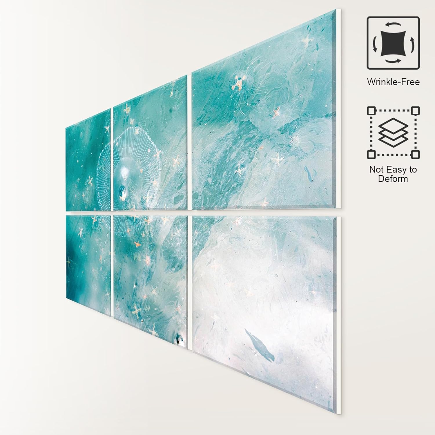 - 【Gooseberries Jellyfish Wall Art】 Wall art prints (No Frame Required) size is 24"x24"x0.4"x6 pieces (Pieced together: 72"x48"x0.4"). This home decoration wall artwork is printed on high-density fiberboard using UV printing technology to ensure a clearer and more vivid image.