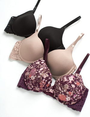 Jessica Simpson Women's Bra – 3 Pack Comfort Molded Microfiber Bra: B Cup/C Cup