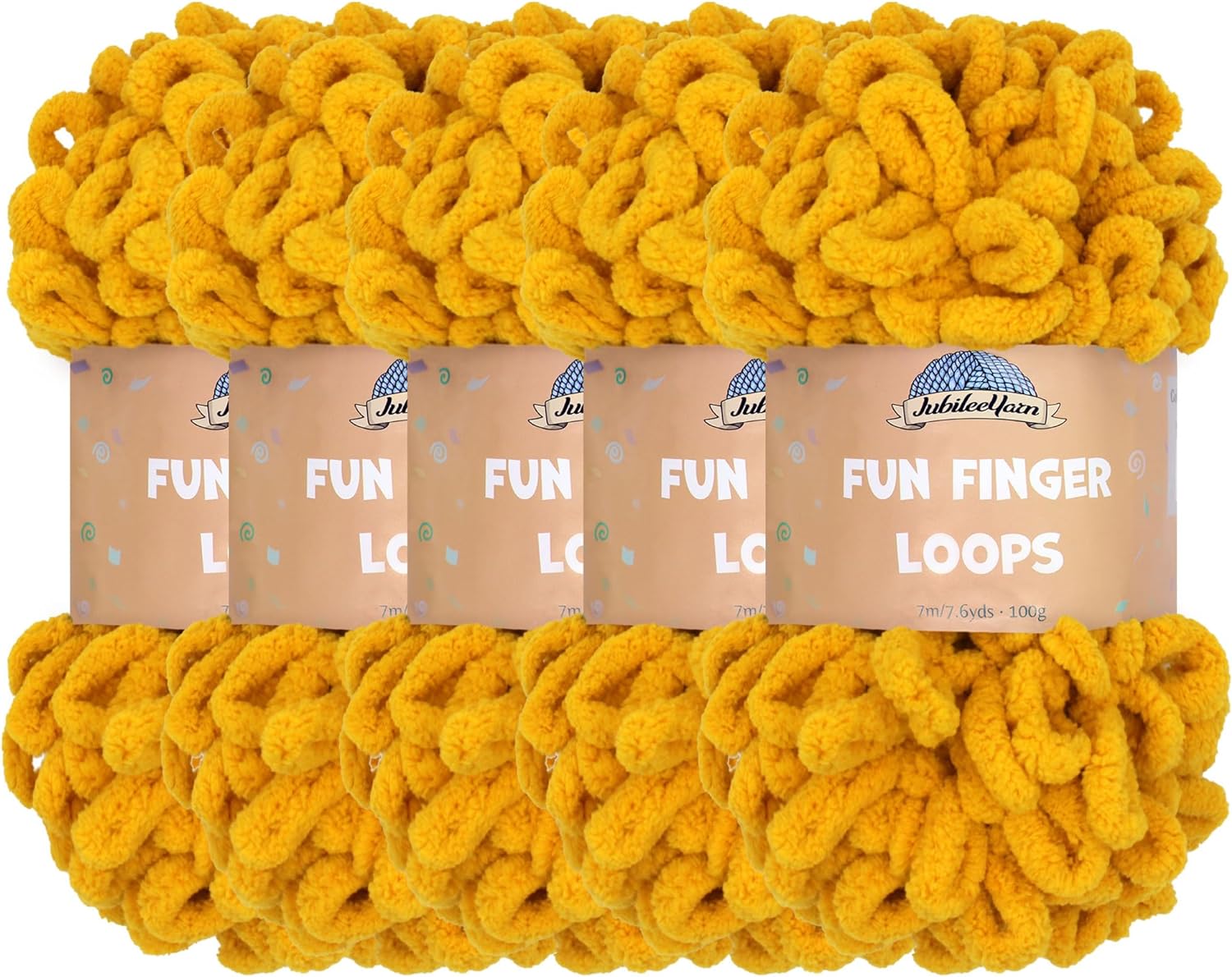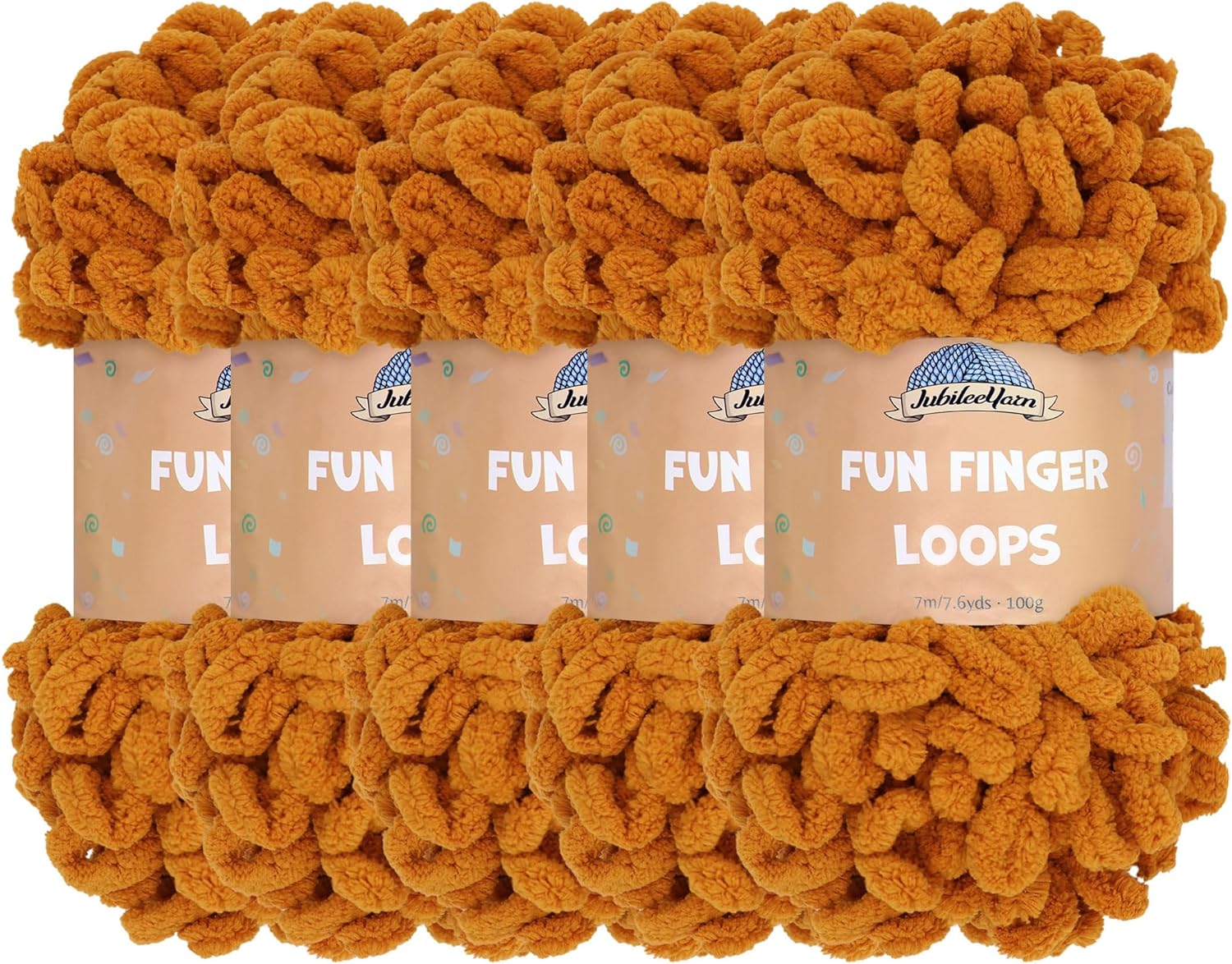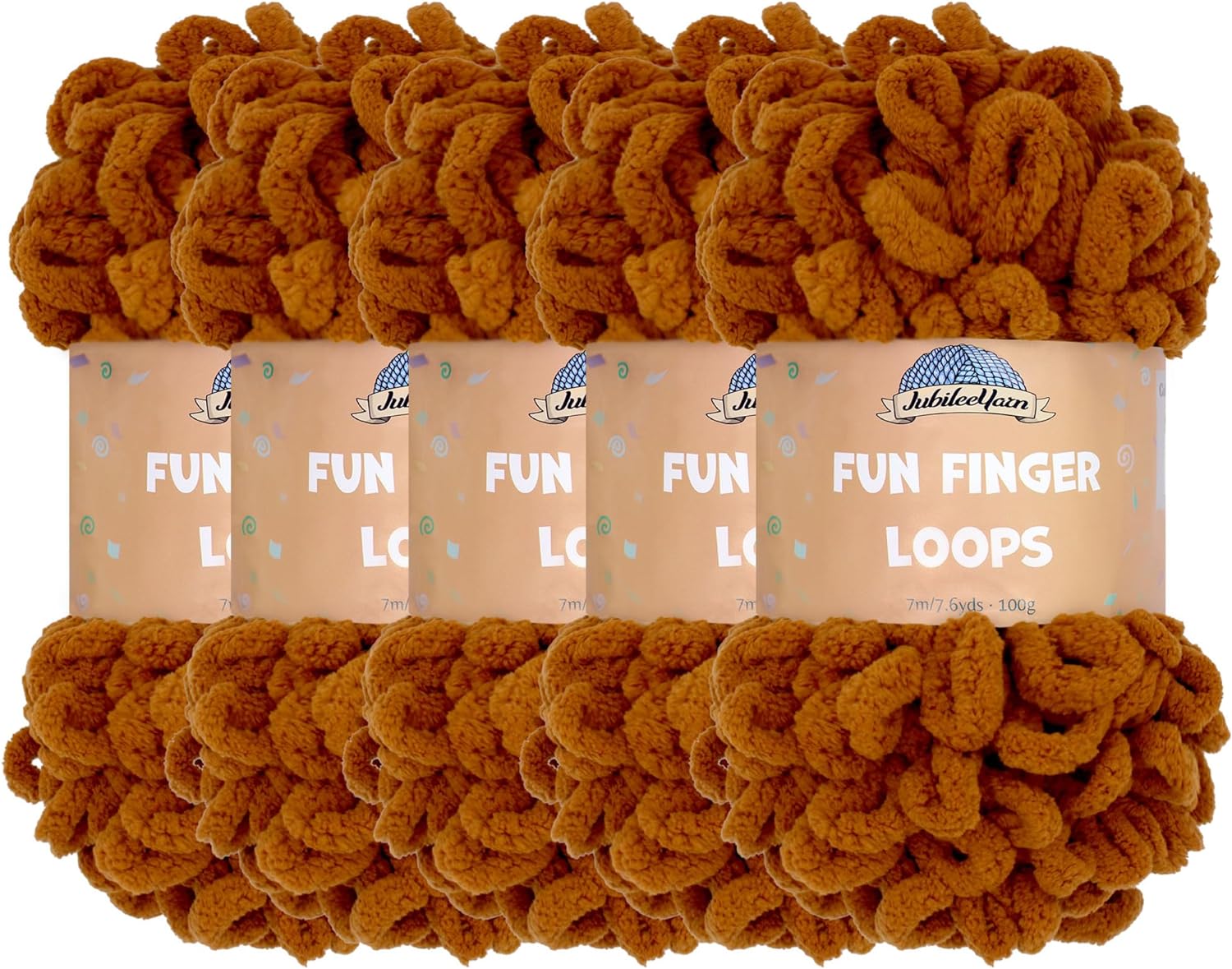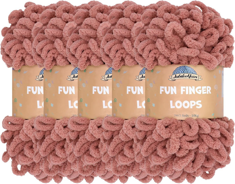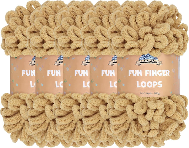 JubileeYarn Fun Finger Loops Yarn - Polyester Jumbo Loop Yarn - 100g/Skein - Sand - 5 Skeins