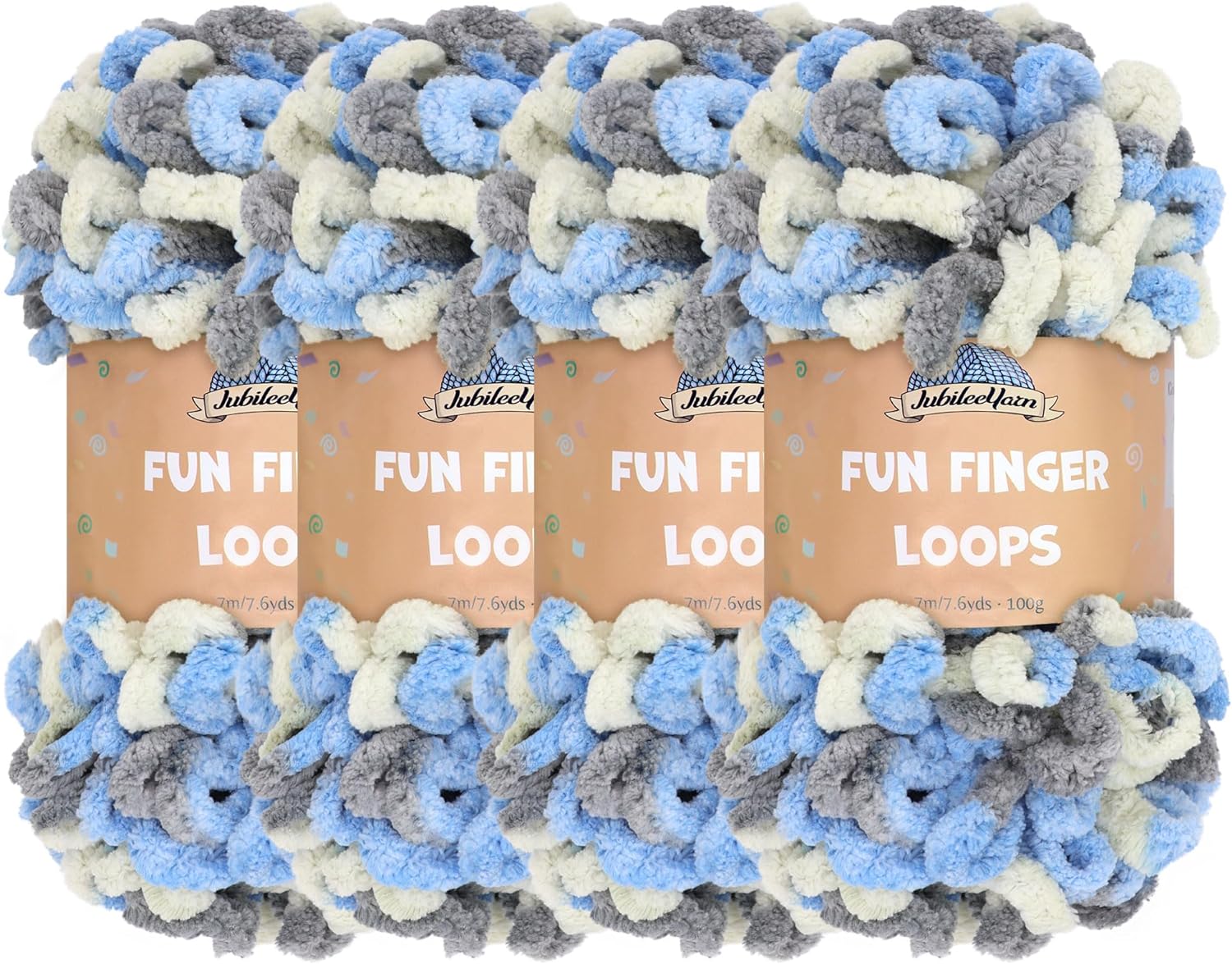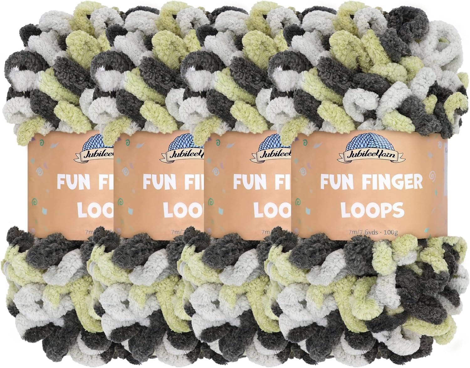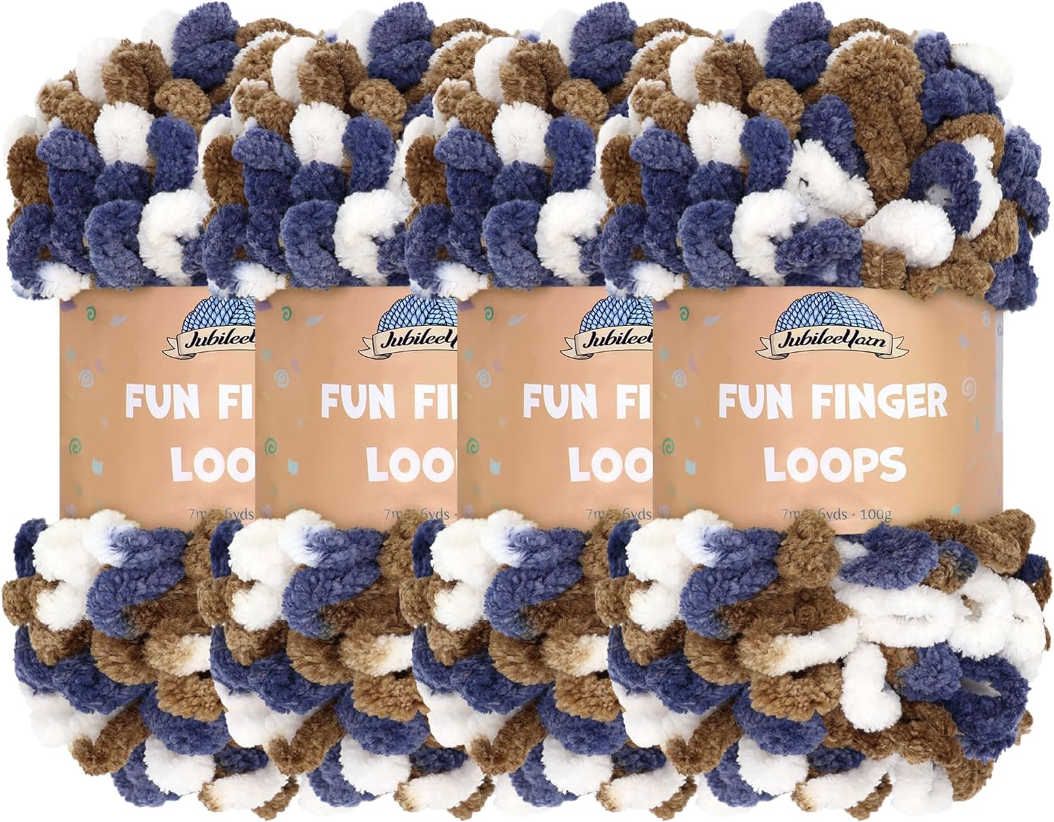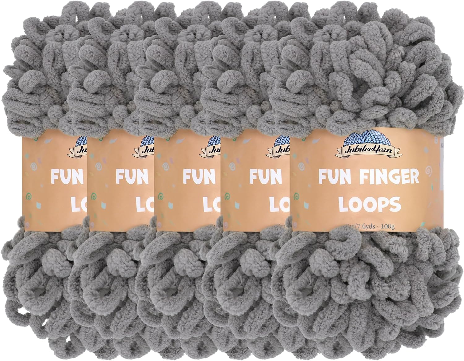JubileeYarn Fun Finger Loops Yarn - Polyester Jumbo Loop Yarn - 100g/Skein - Sand - 5 Skeins