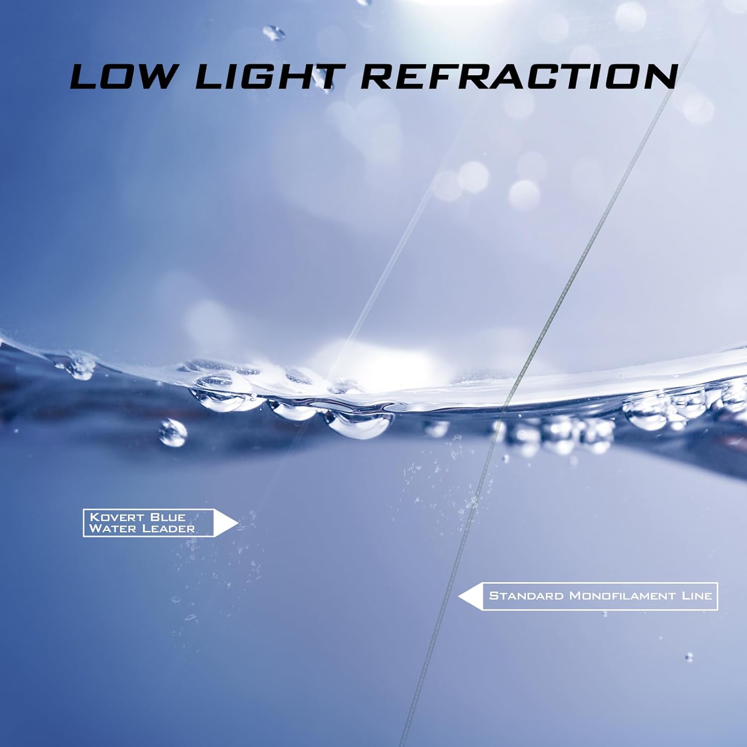 - 【LOW LIGHT REFRACTION】Kovert Blue Water Fluorocarbon fishing leader has a low light refractive index making it virtually invisible underwater. Kovert Blue Water Fluorocarbon fishing leader is perfect for highly pressured water or ultra-clear blue water conditions when you need a low visibility fishing line to increase your catch ratio. Fish just don’t see it underwater.