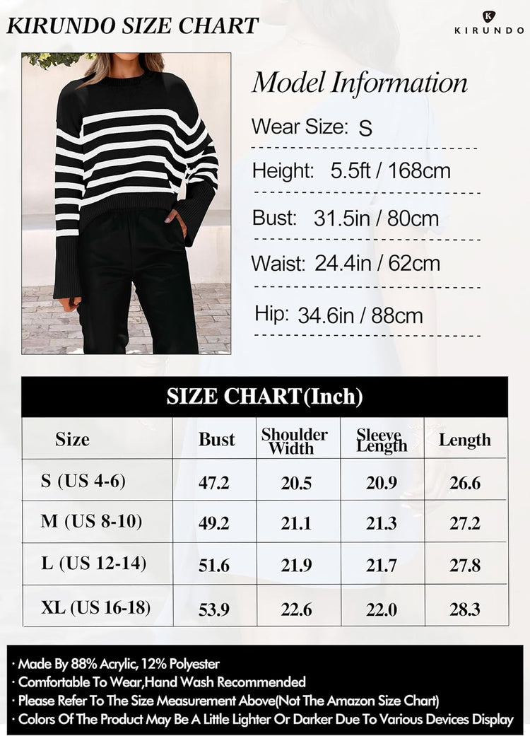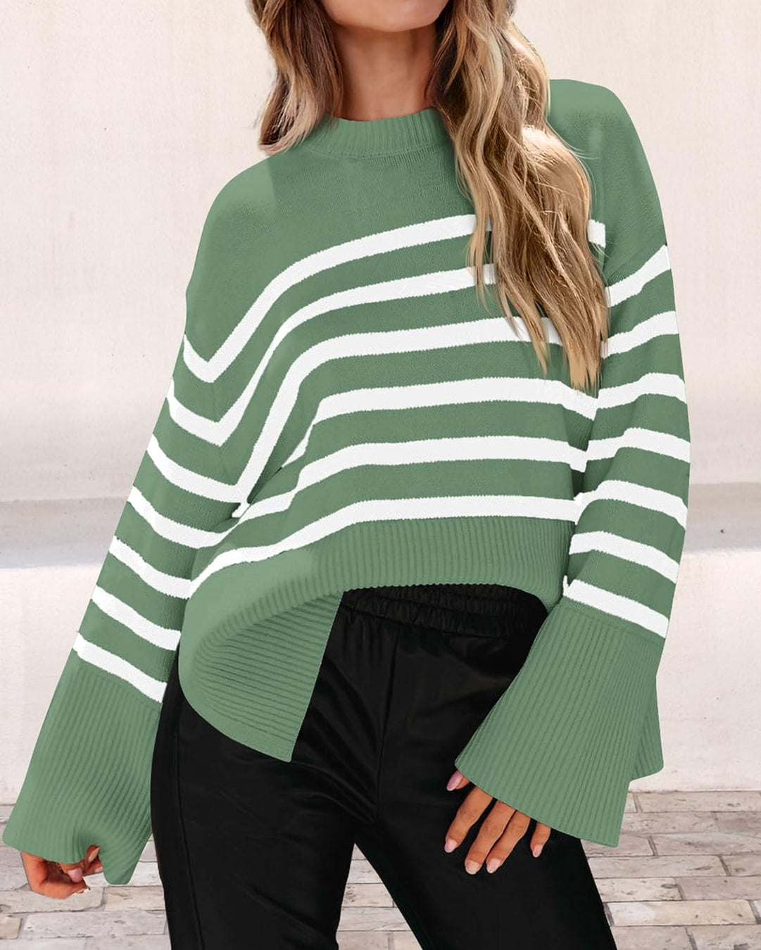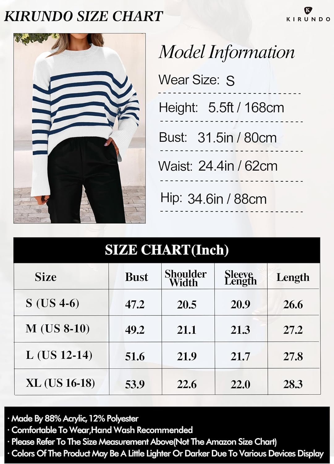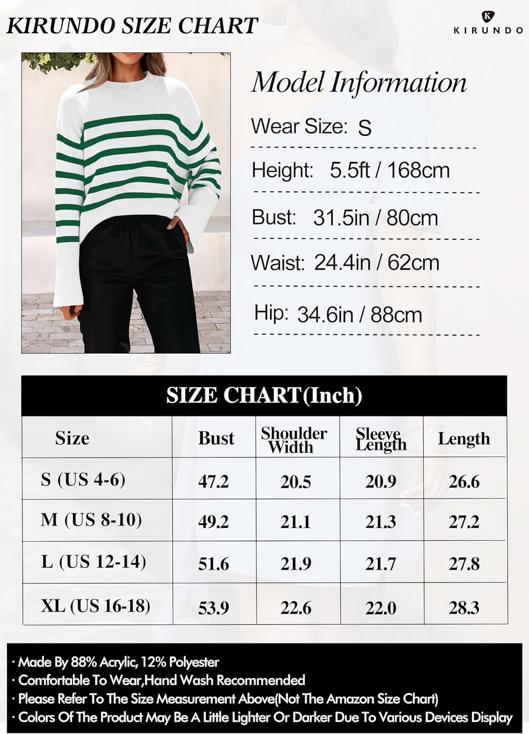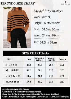 KIRUNDO Womens Fall Sweaters Casual Long Sleeve Striped Oversized Sweater Jumper