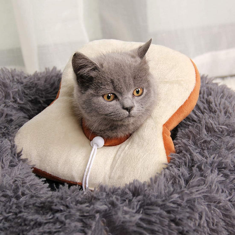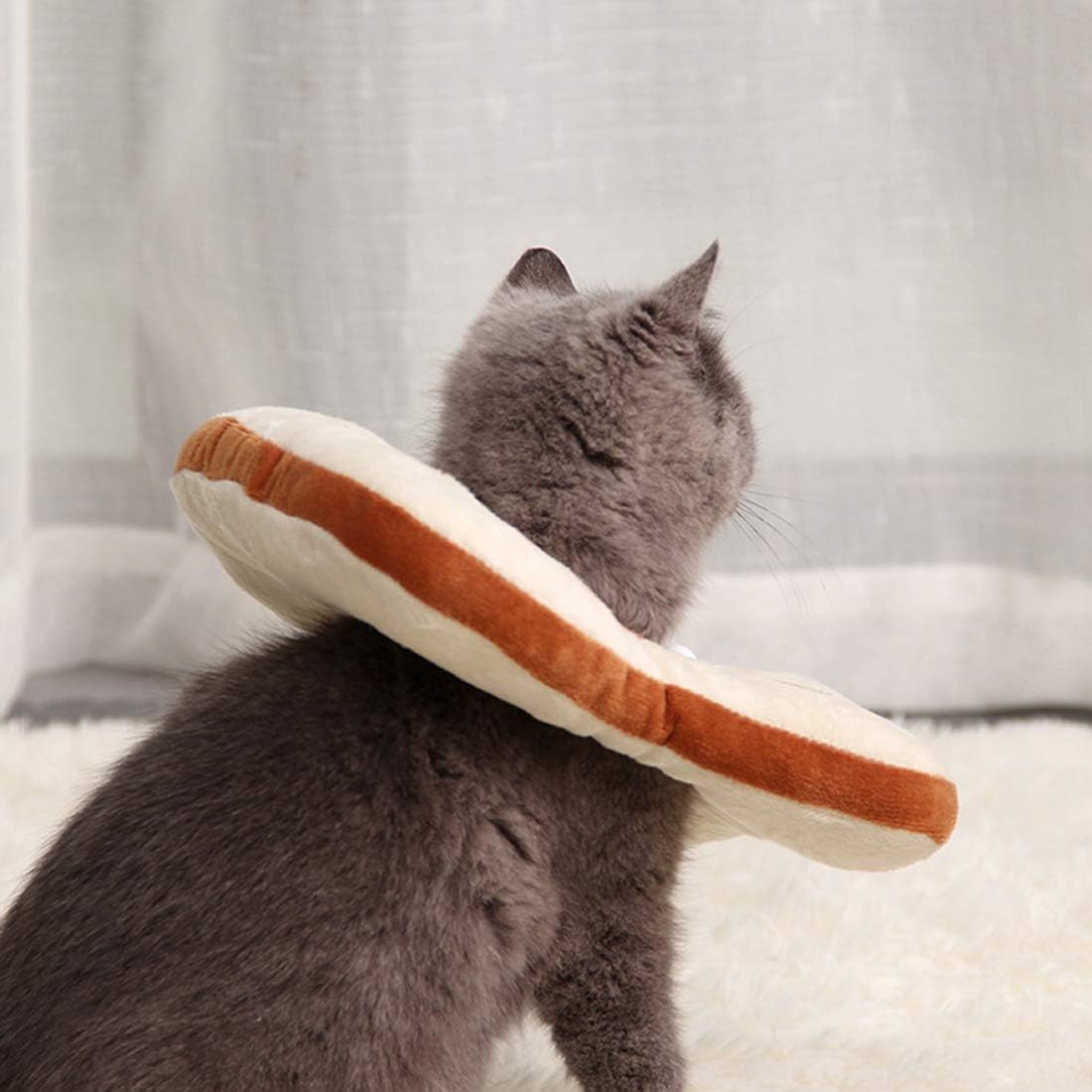 KVV Adjustable Cat Recovery Collar, Cute Toast Neck Cone After Surgery, Wound Healing Protective Cone Bread Surgery Recovery Elizabethan Collars, Soft Edge for Kitten and Cats(Toast)